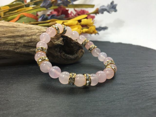 こちらは、8mm玉のローズクォーツを使ったパワーストーンブレスレットです。シンプルなデザインでどんなコーディネートにも合わせやすいデザインに仕上げています。サイズは内周約15cmです。気になる方は是非この機会にどうぞ。