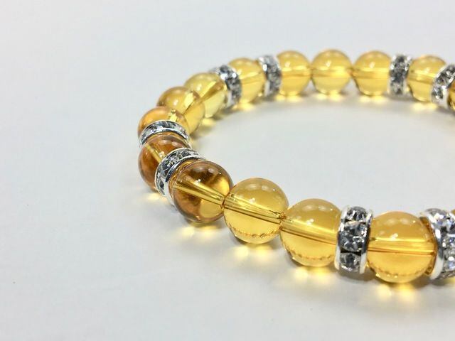 こちらは、8mm玉のシトリンを使ったパワーストーンブレスレットです。シンプルなデザインでどんなコーディネートにも合わせやすいデザインに仕上げています。サイズは内周約15cmです。気になる方は是非この機会にどうぞ。