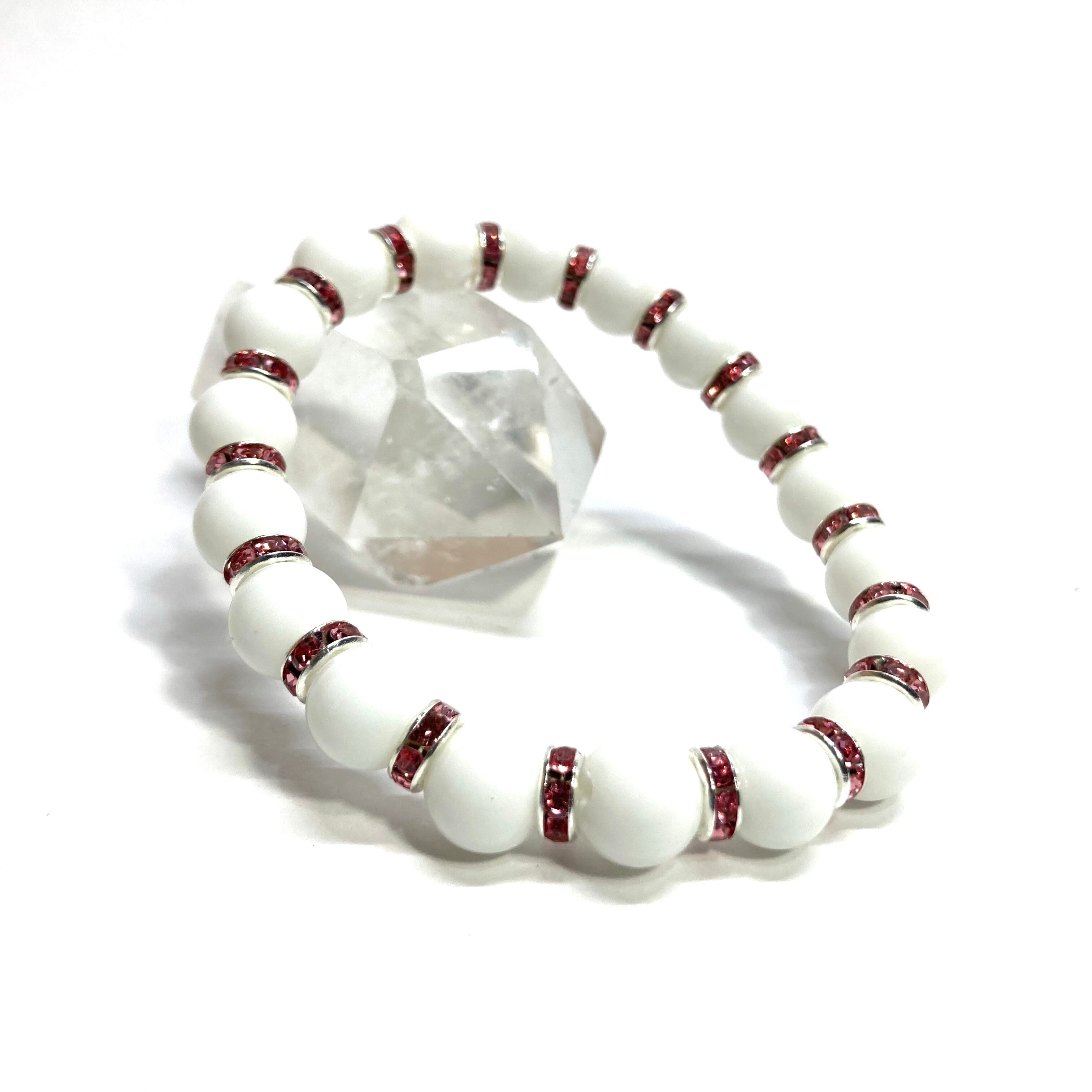 ホワイトオニキス パワーストーン ブレスレット 8mm (ピンク)メンズ・レディース 男性・女性 数珠ブレス 開運