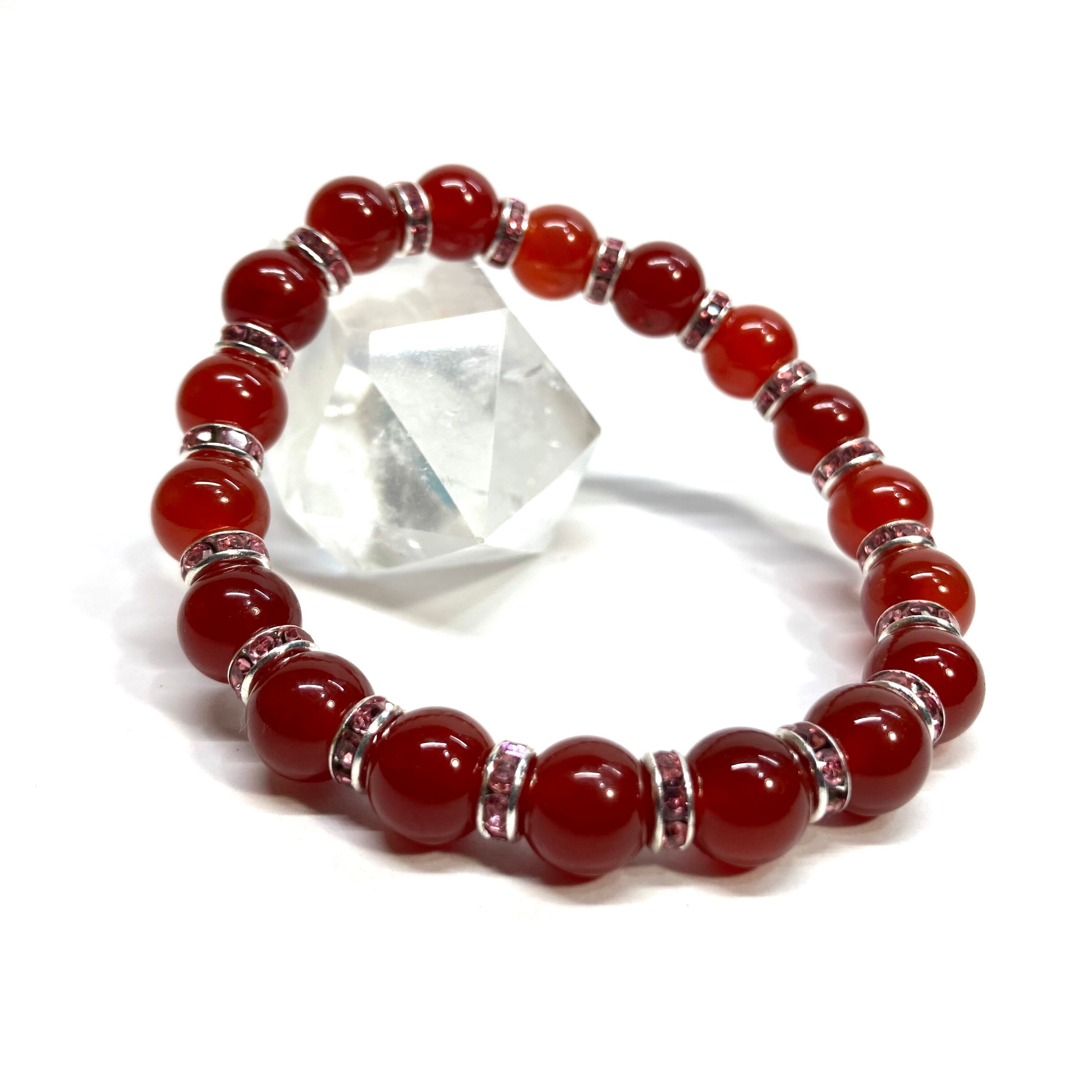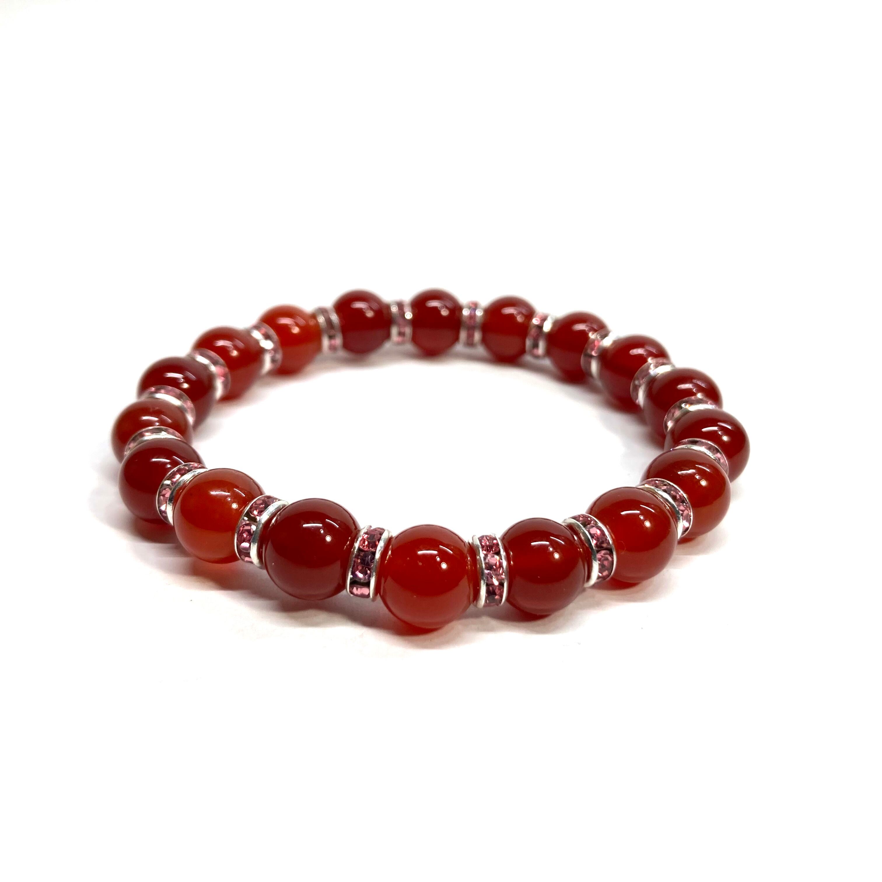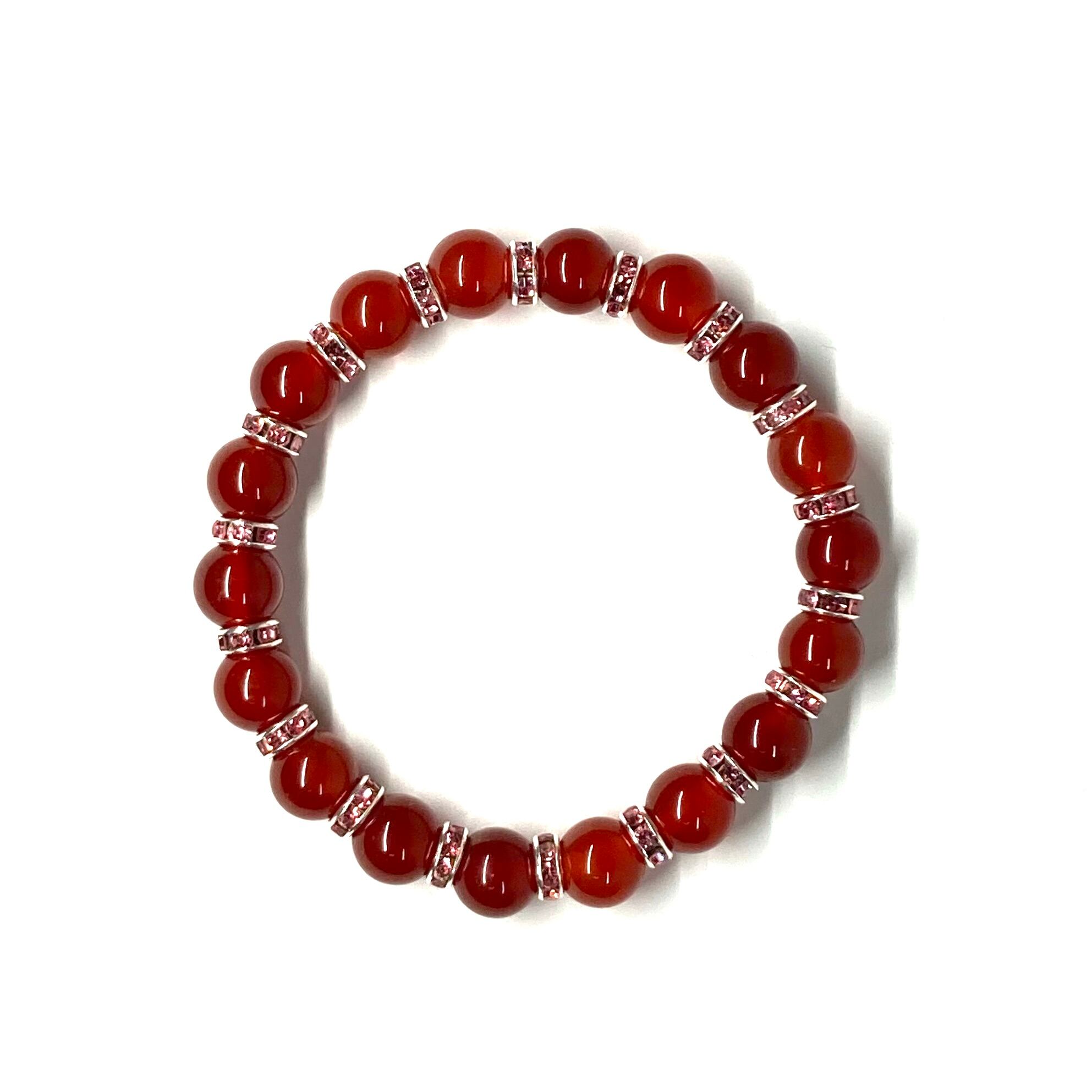 赤瑪瑙 パワーストーン ブレスレット 8mm 7月誕生石 (ピンク)メンズ・レディース 男性・女性 数珠ブレス 開運