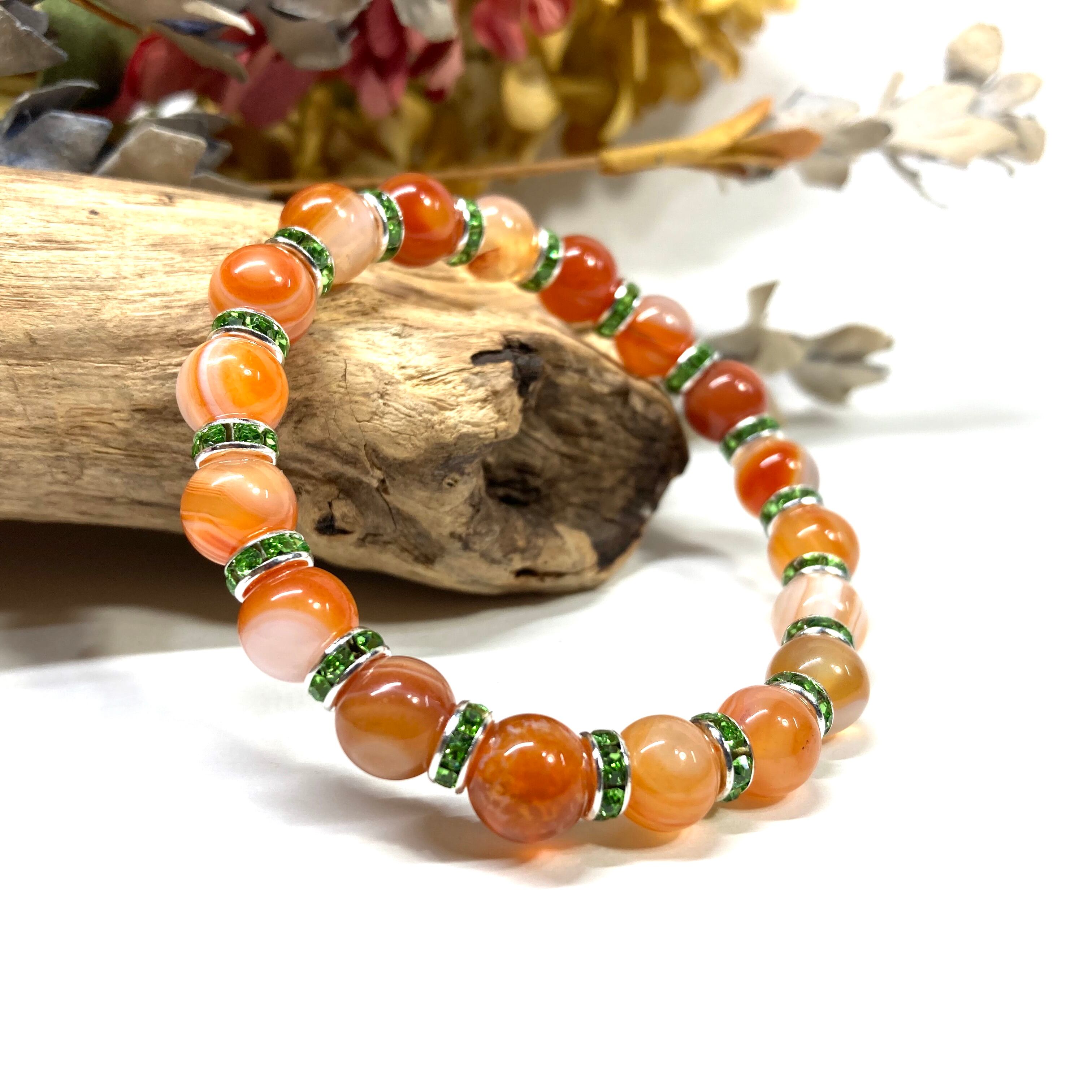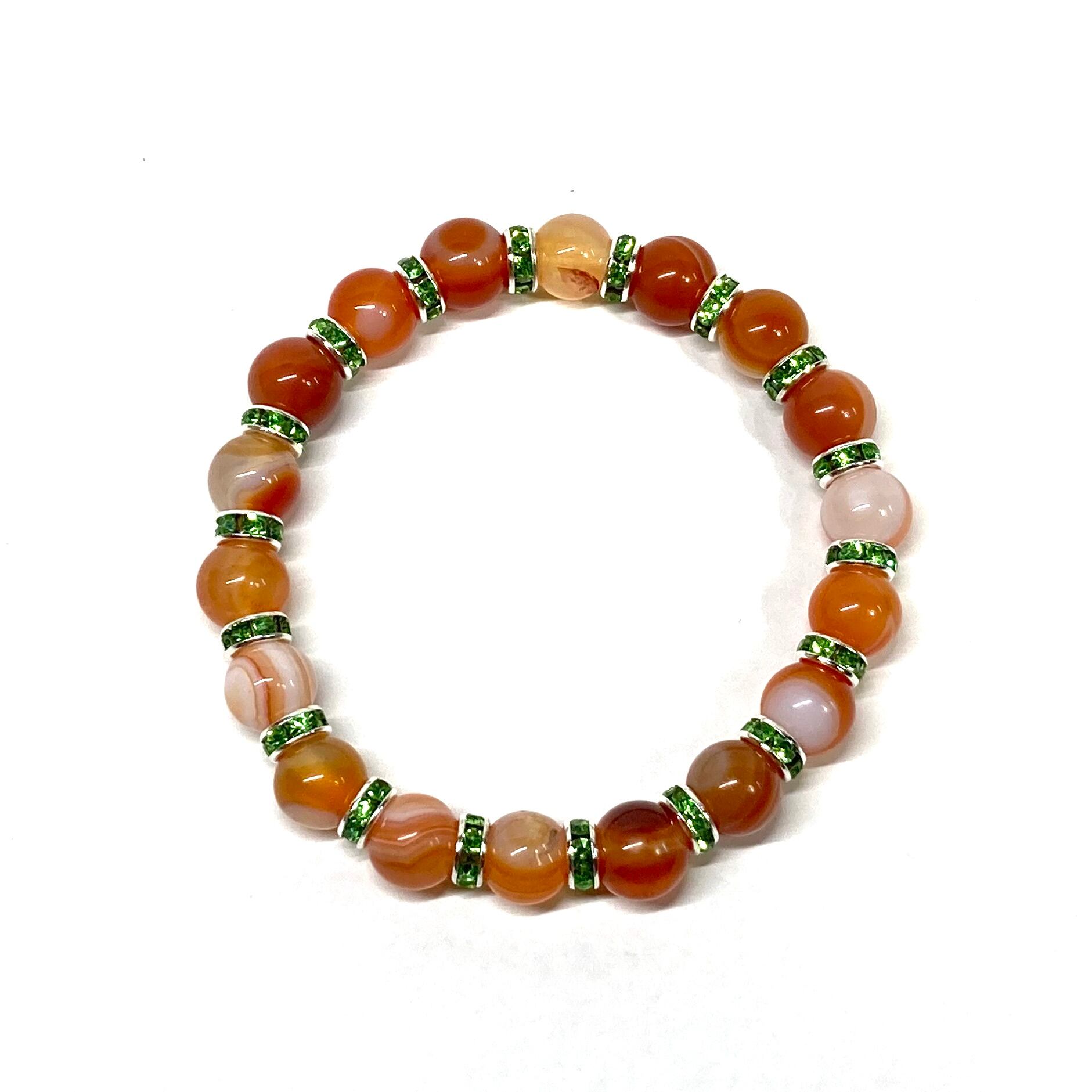 カーネリアン・サードニクス (レッド天眼石) パワーストーン ブレスレット 8mm 天然石 (グリーン)メンズ・レディース 男性・女性 数珠ブレス 開運