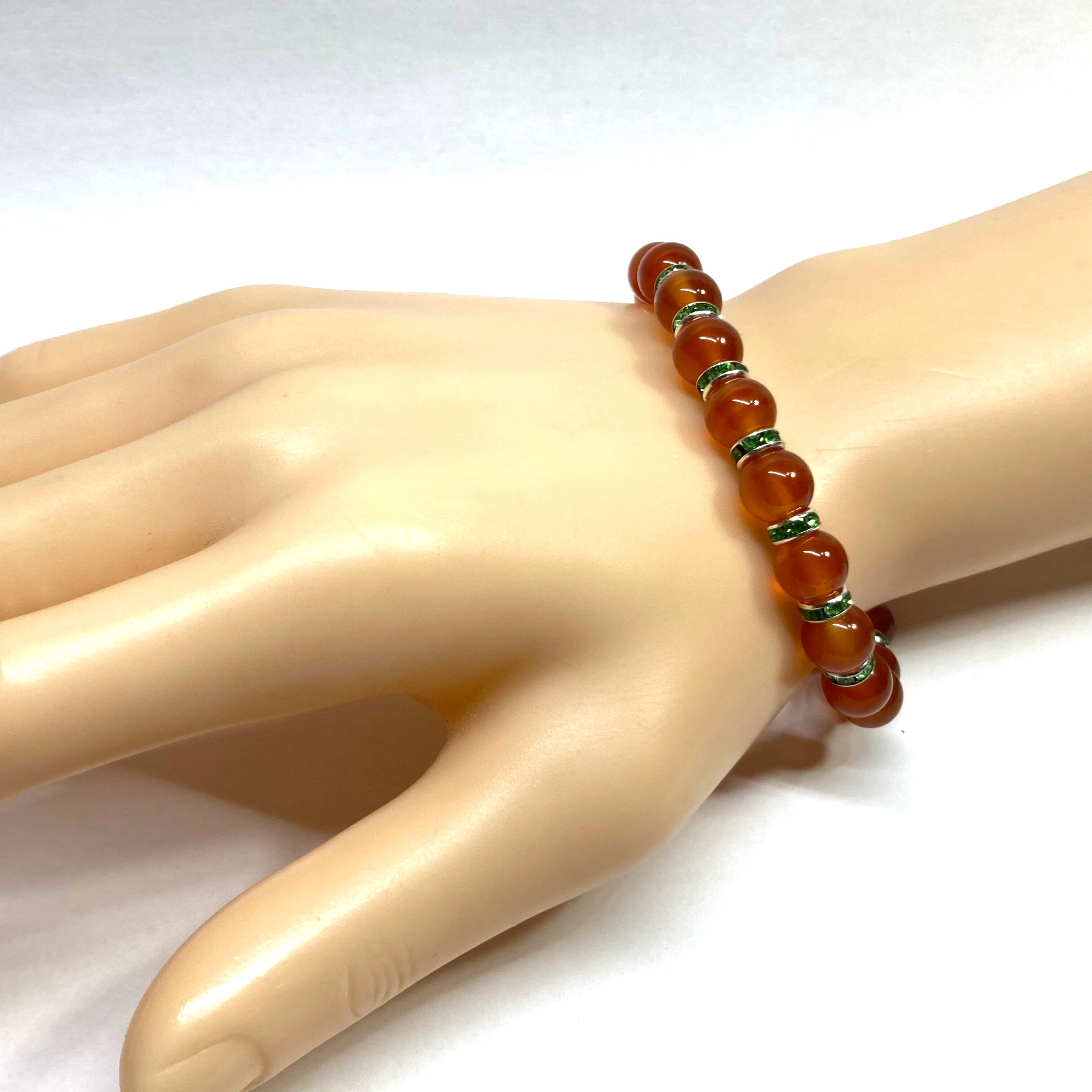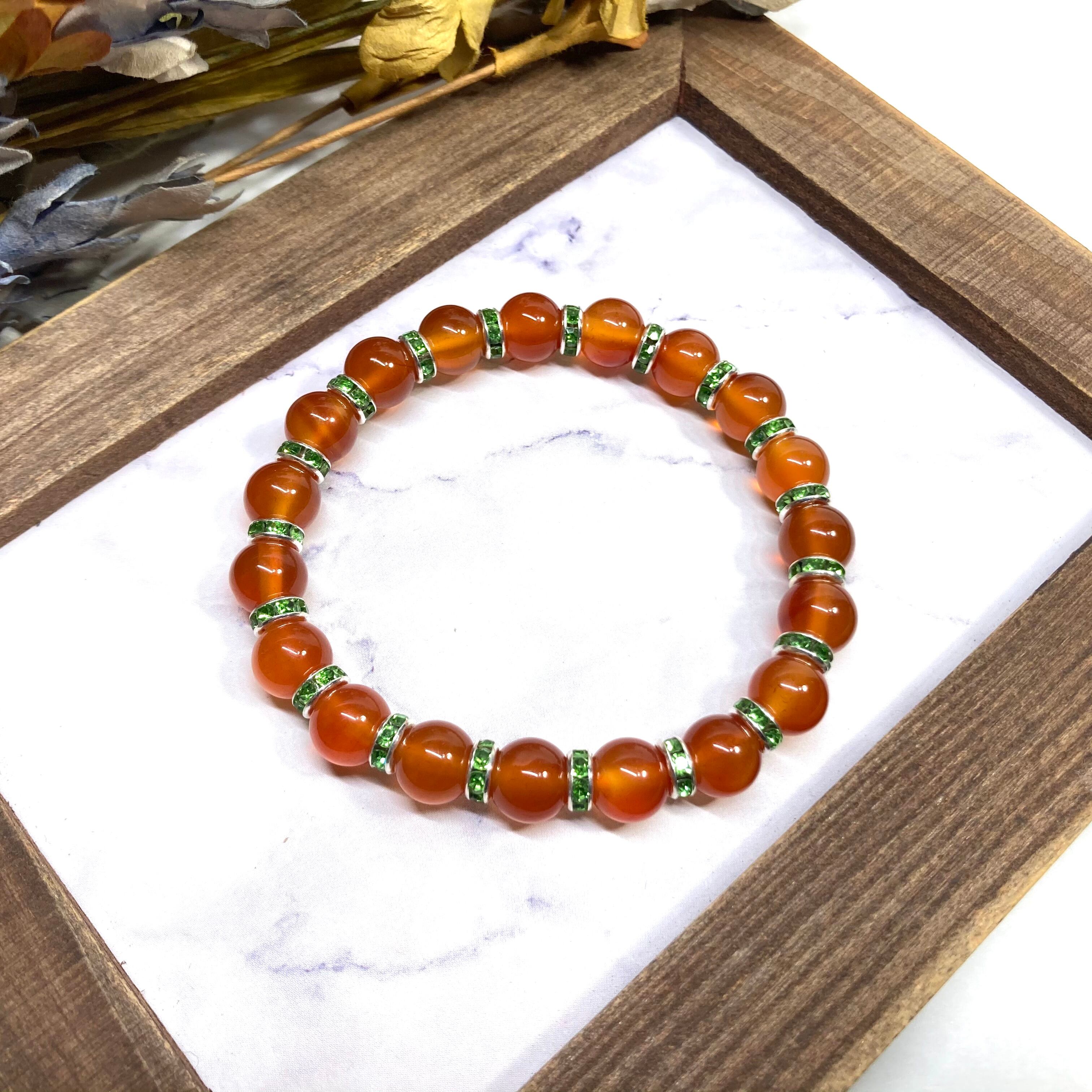 カーネリアン パワーストーン ブレスレット 8mm 7月誕生石 (グリーン)メンズ・レディース 男性・女性 数珠ブレス 開運