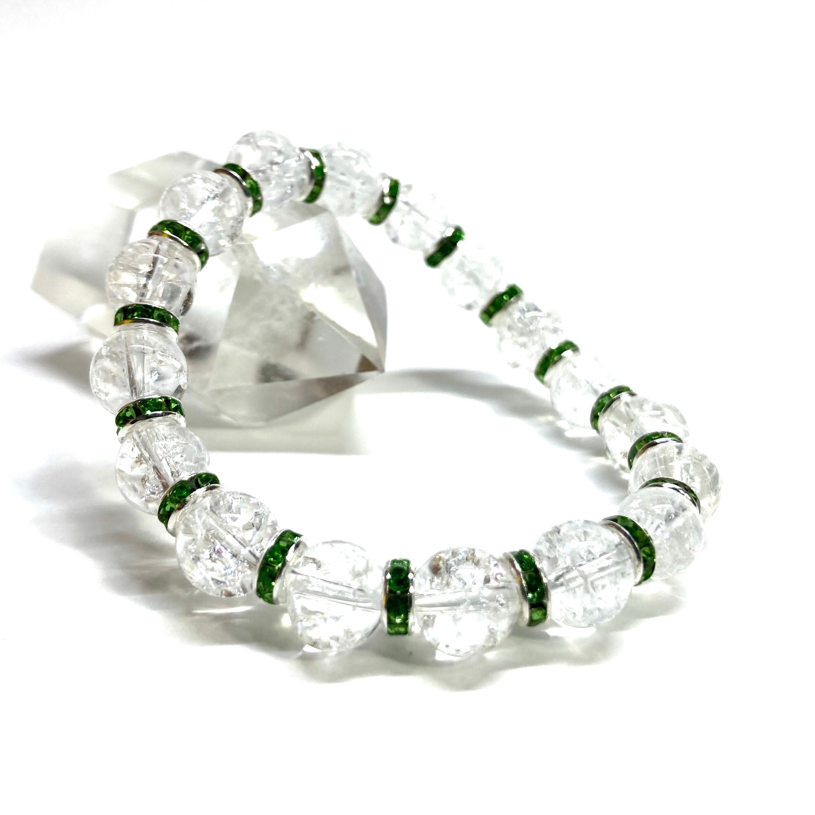 クラック水晶 パワーストーン ブレスレット 8mm (グリーン)メンズ・レディース 男性・女性 数珠ブレス 開運