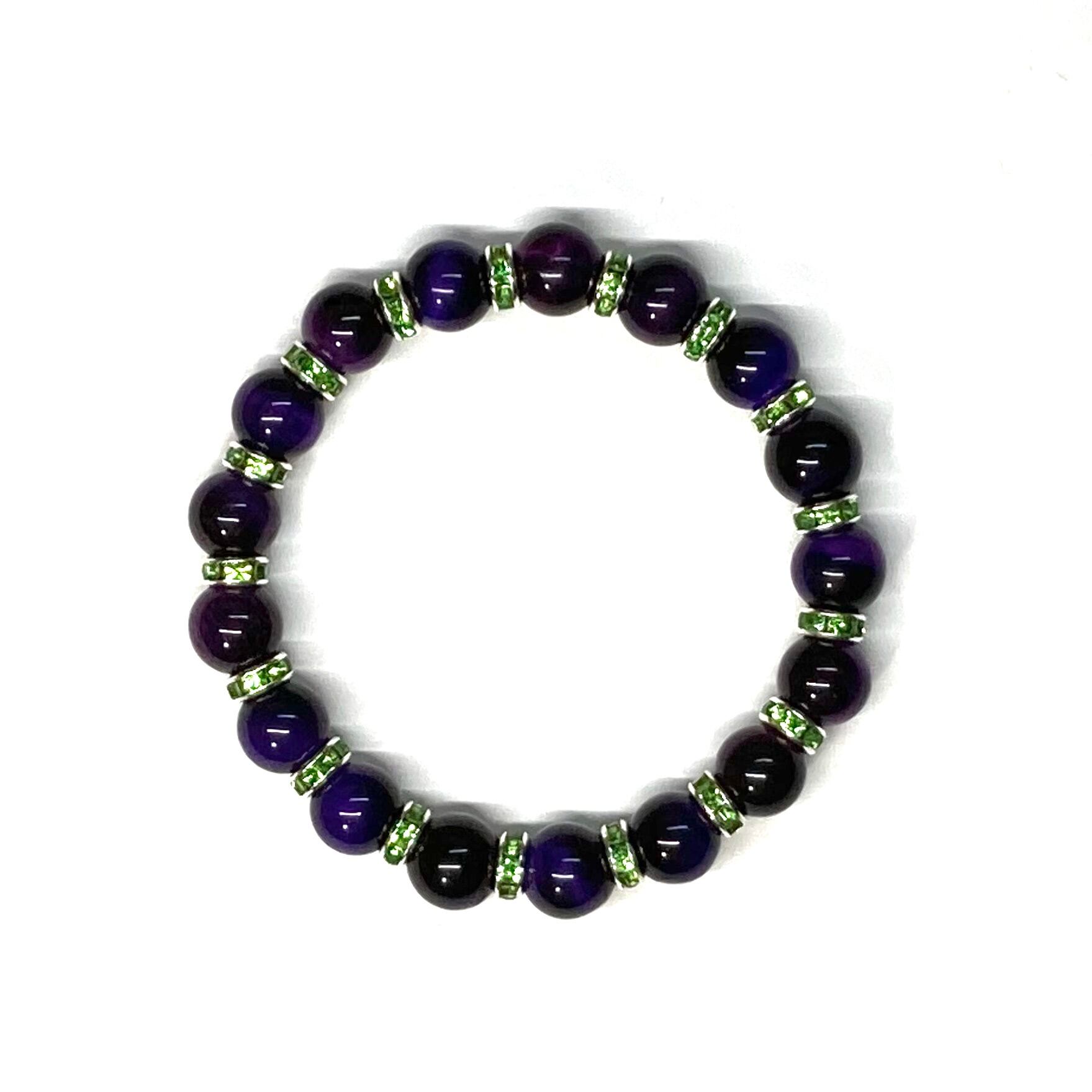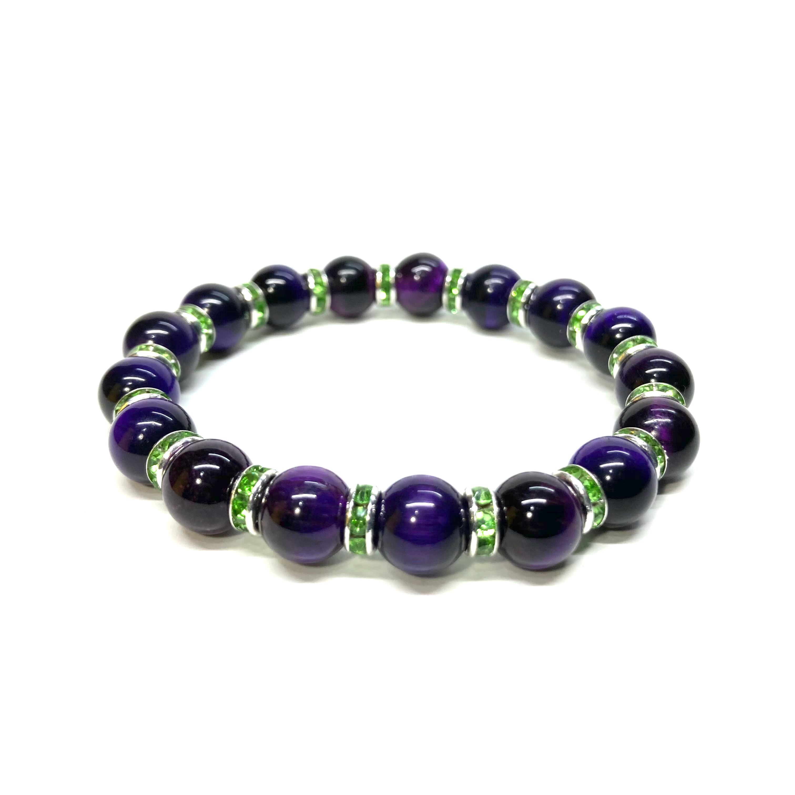パープルタイガーアイ パワーストーン ブレスレット 8mm (グリーン)メンズ・レディース 男性・女性 数珠ブレス 開運