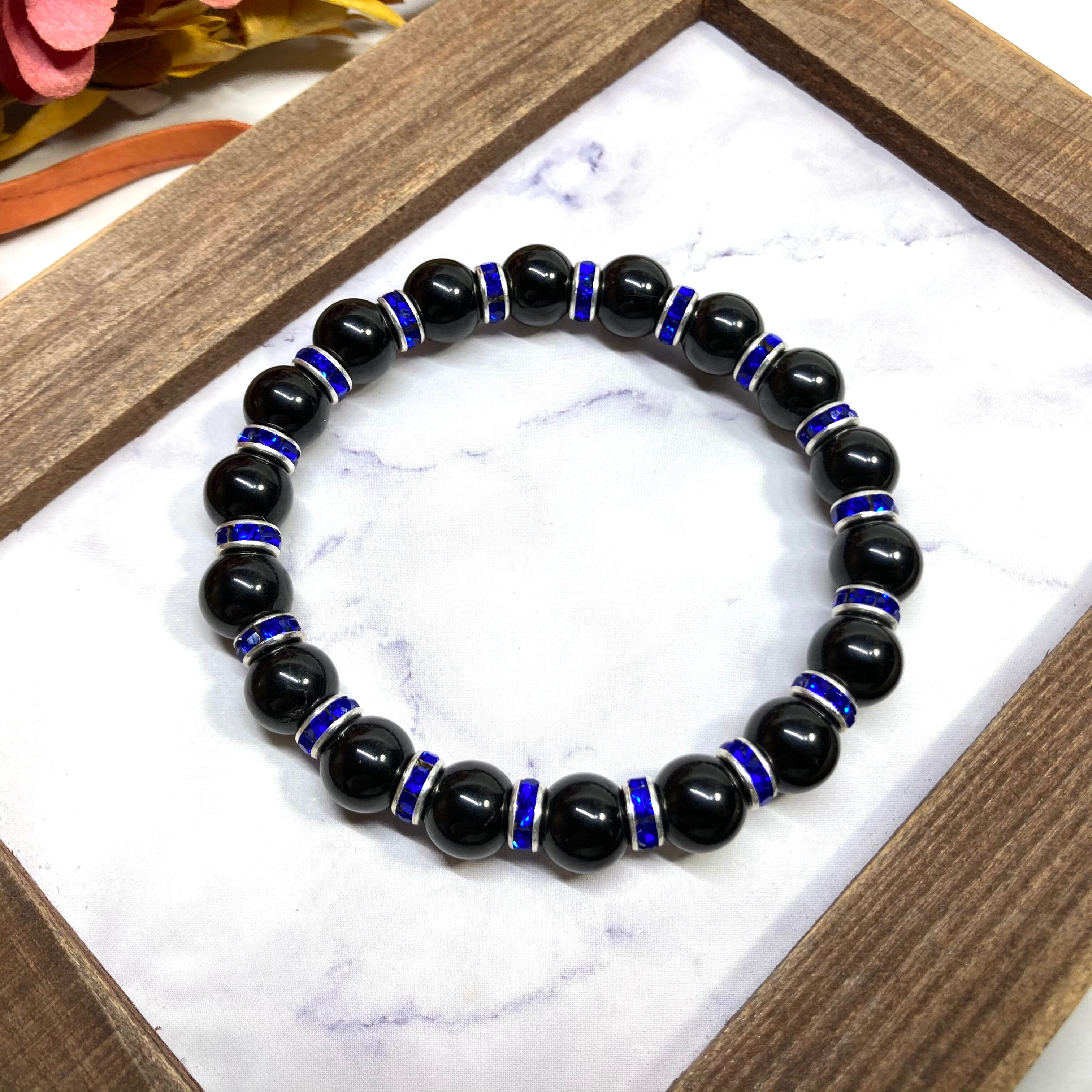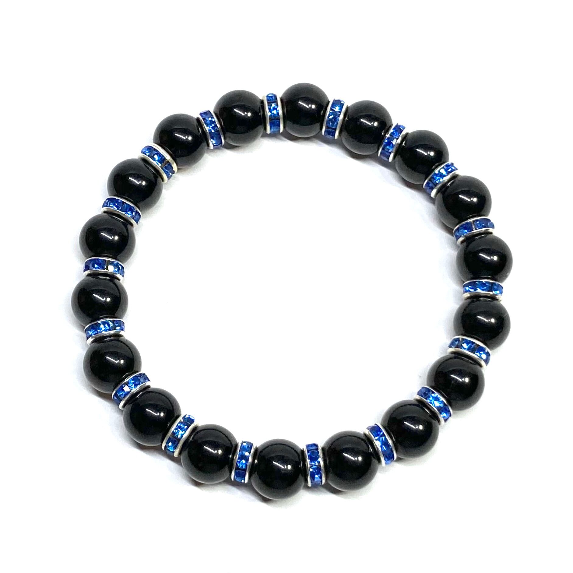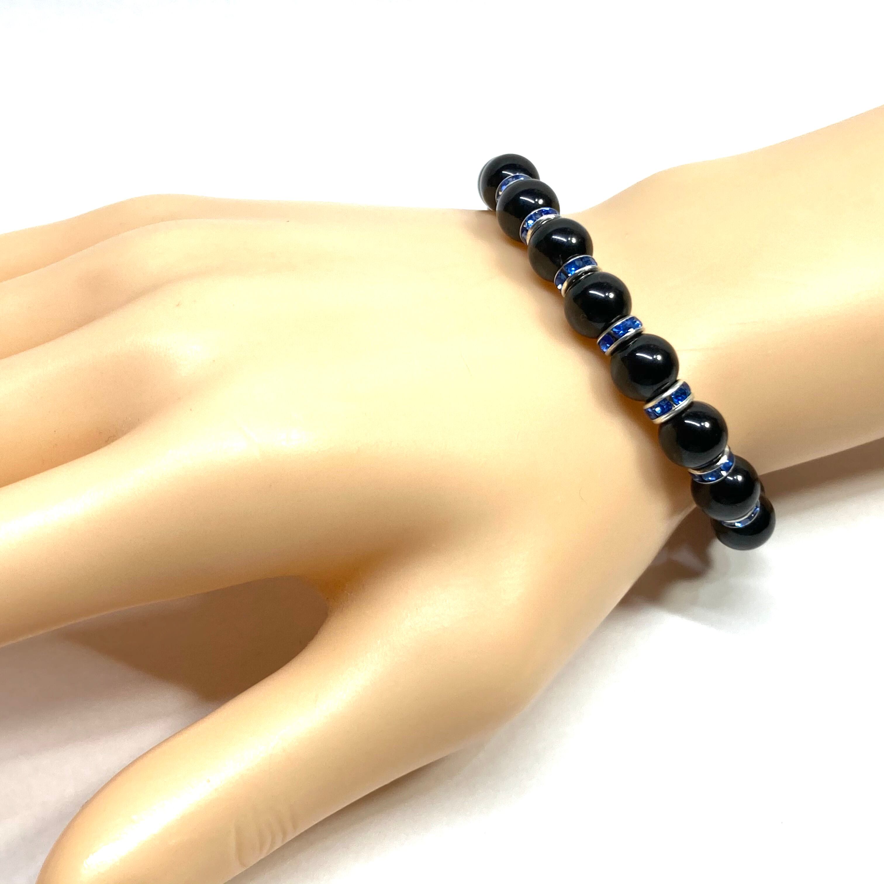 ブラックスピネル パワーストーン ブレスレット 8mm 8月誕生石 (ブルー)メンズ・レディース 男性・女性 数珠ブレス 開運