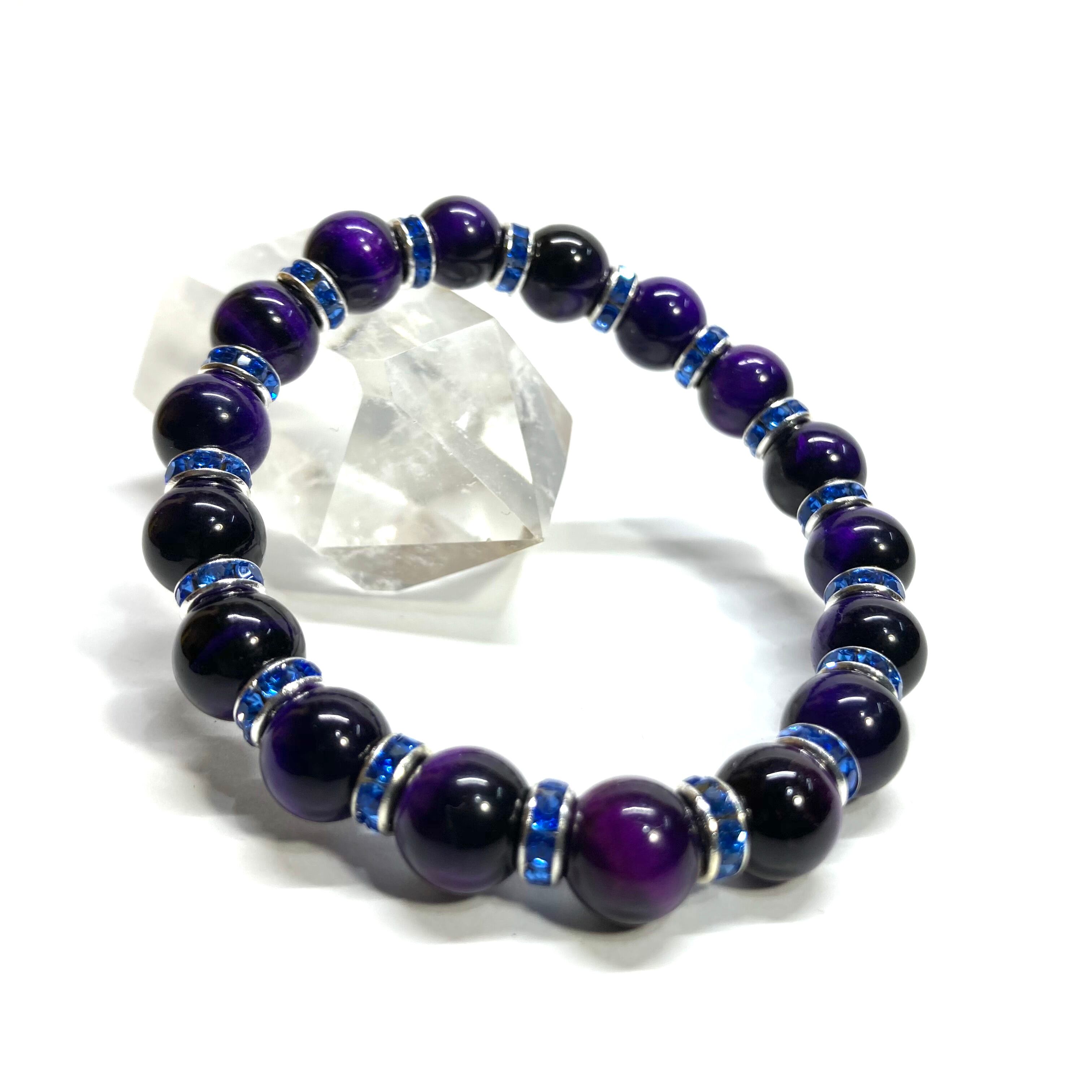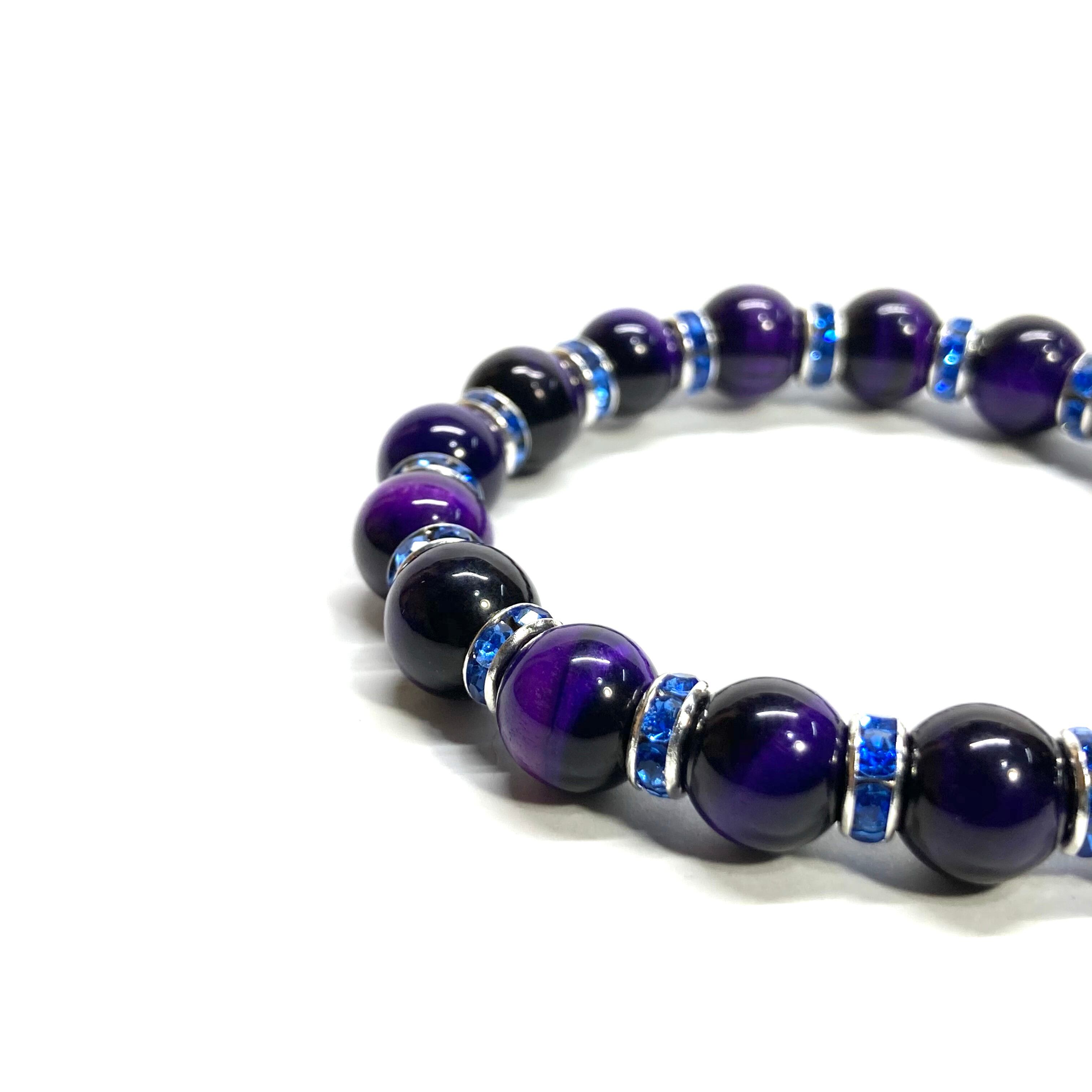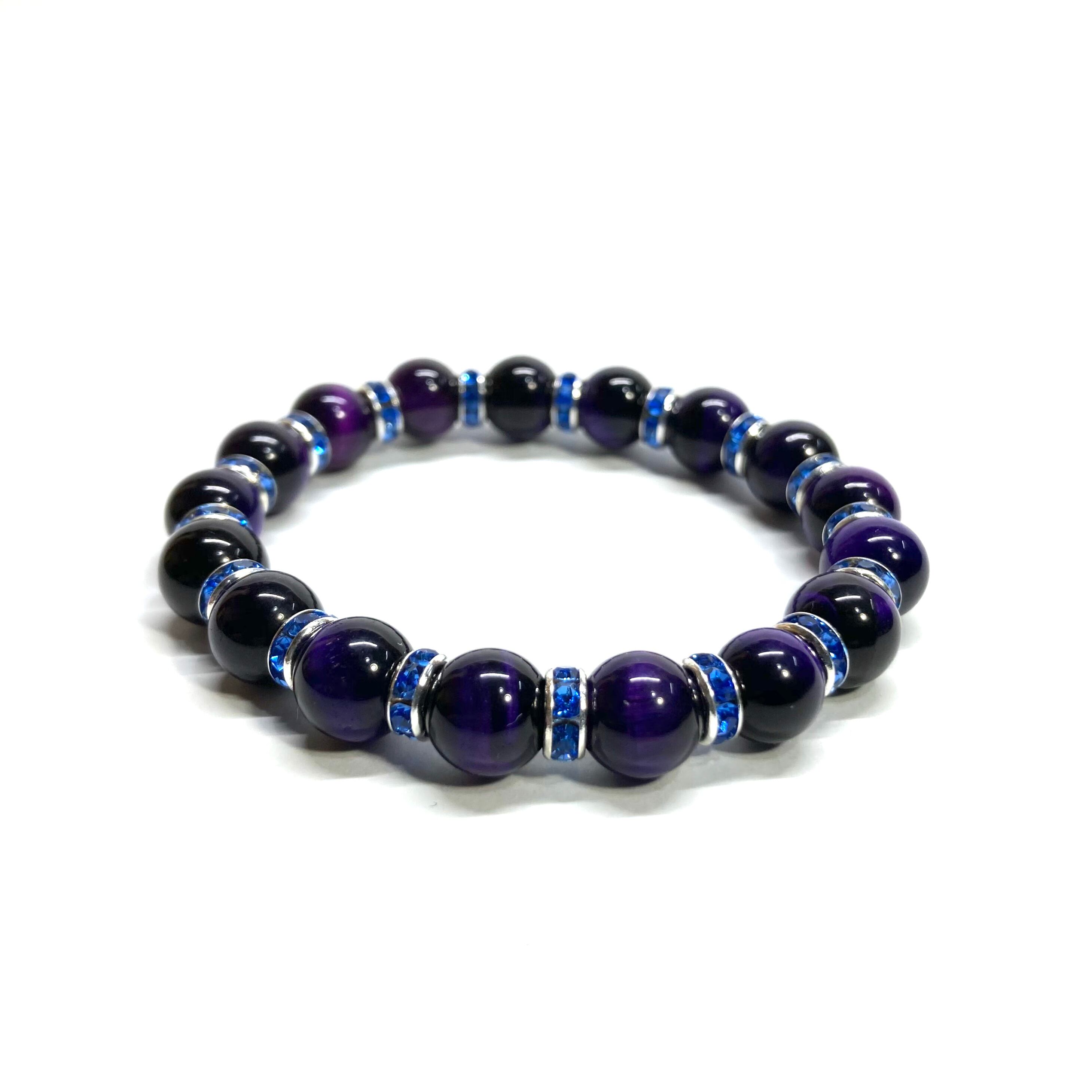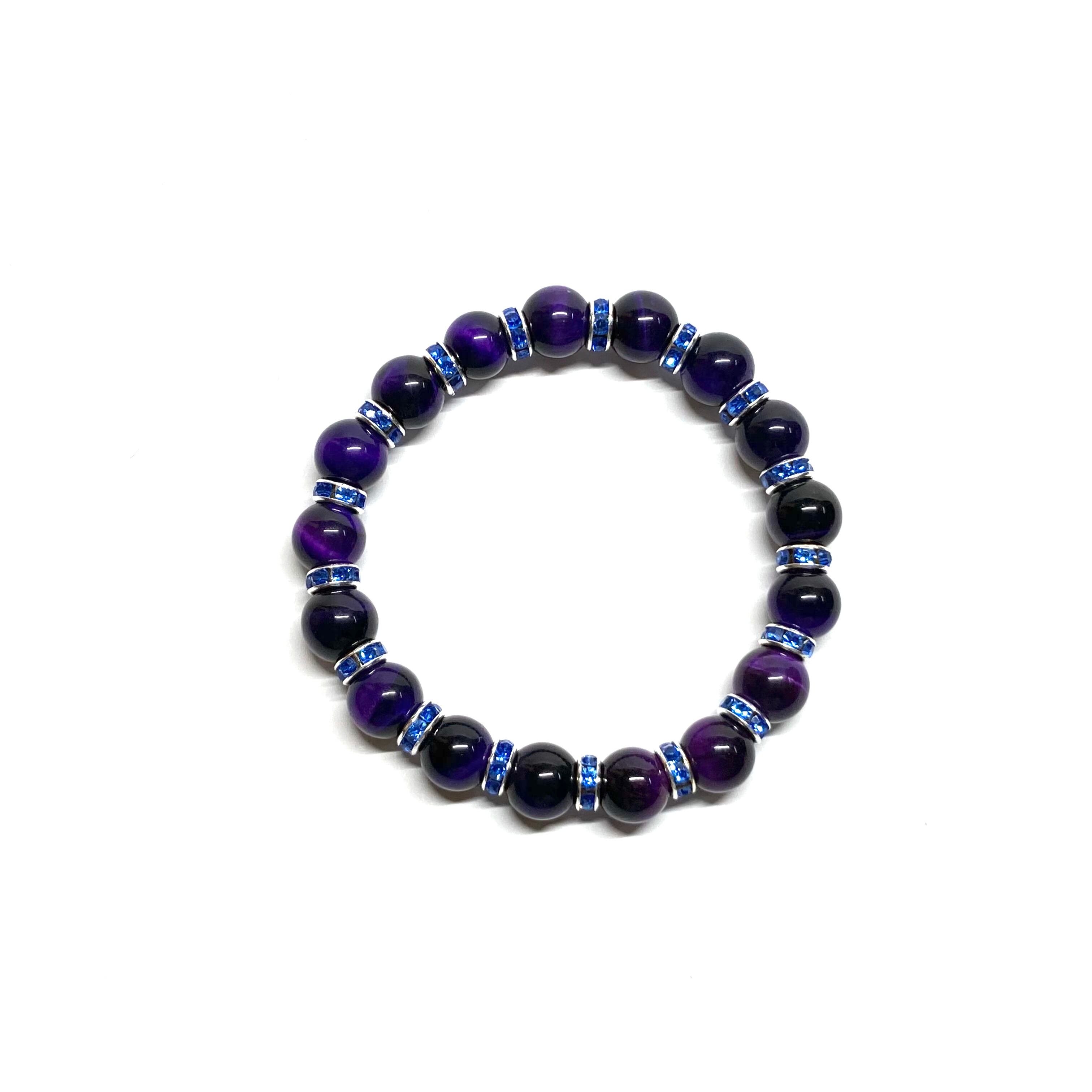 パープルタイガーアイ パワーストーン ブレスレット 8mm (ブルー)メンズ・レディース 男性・女性 数珠ブレス 開運