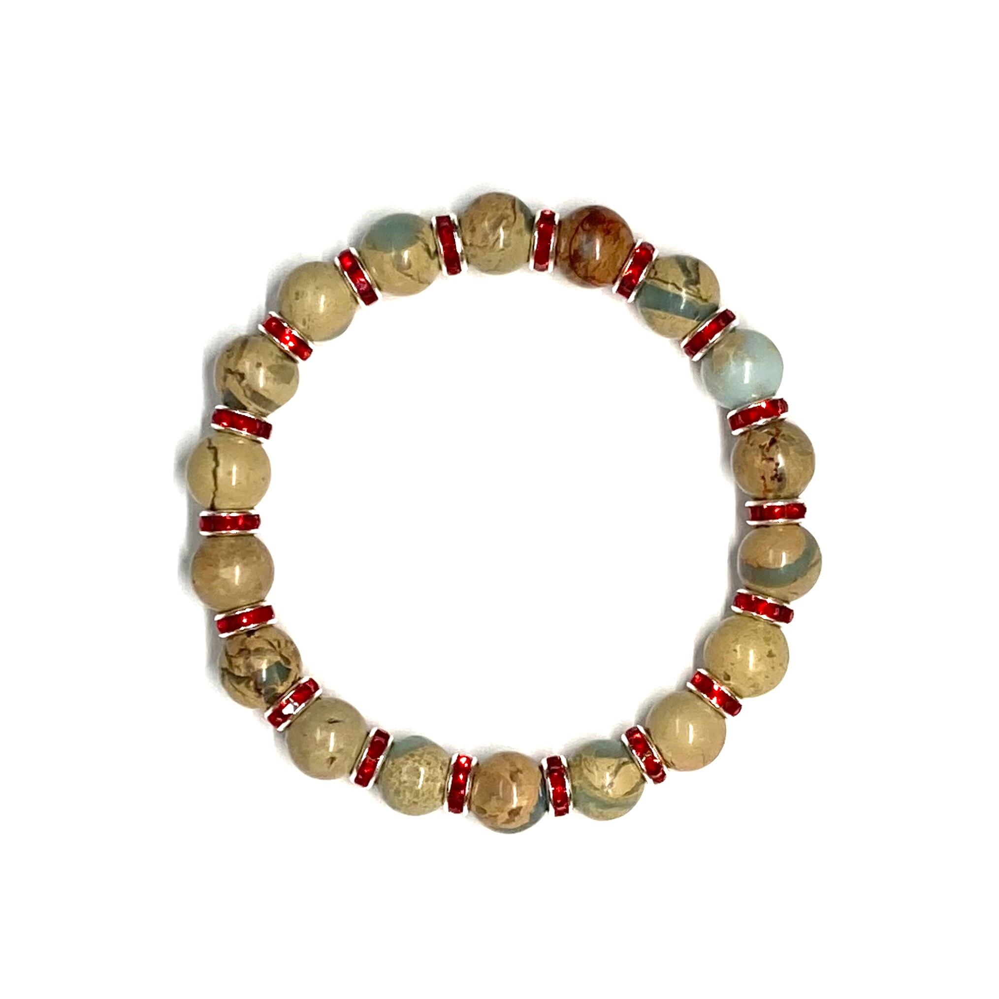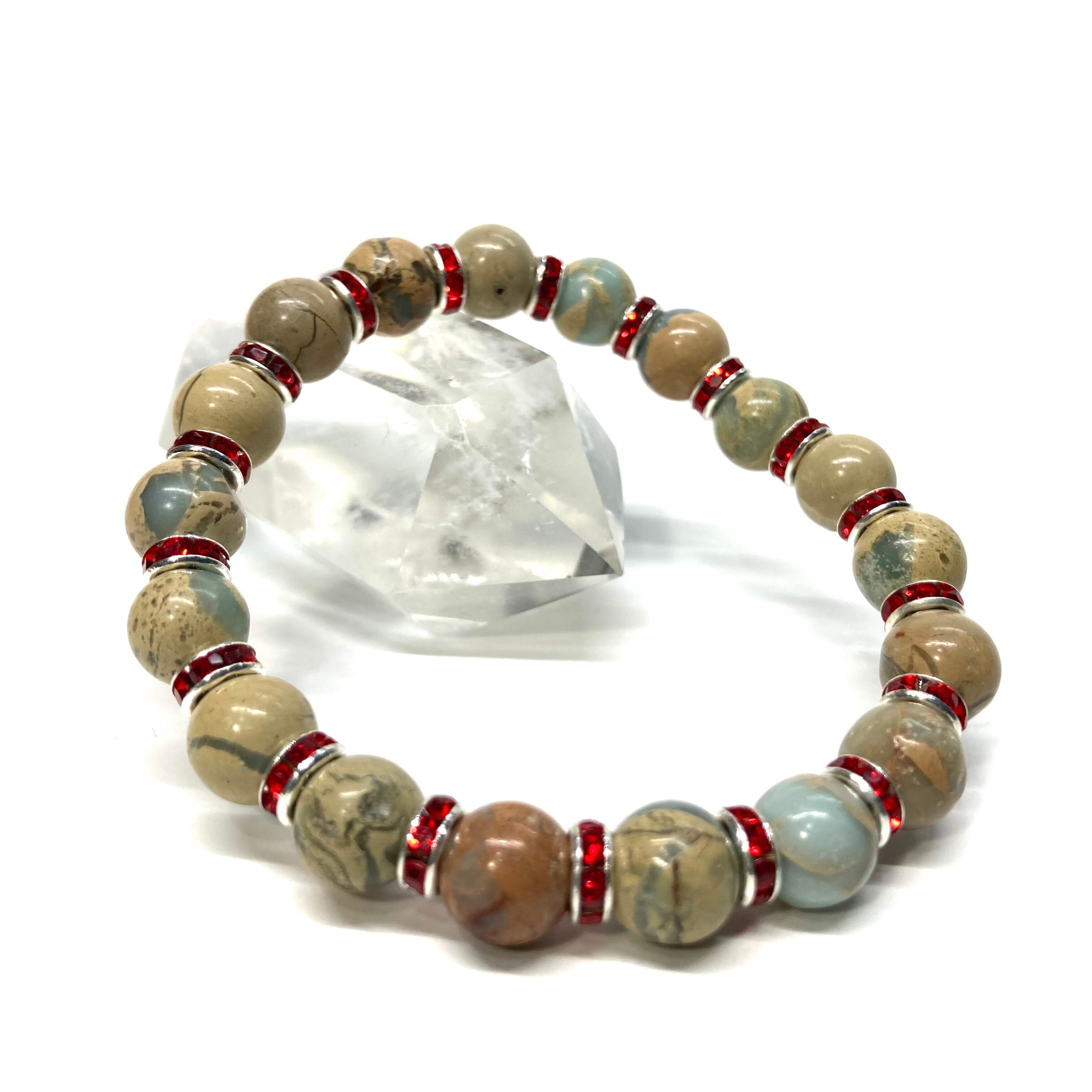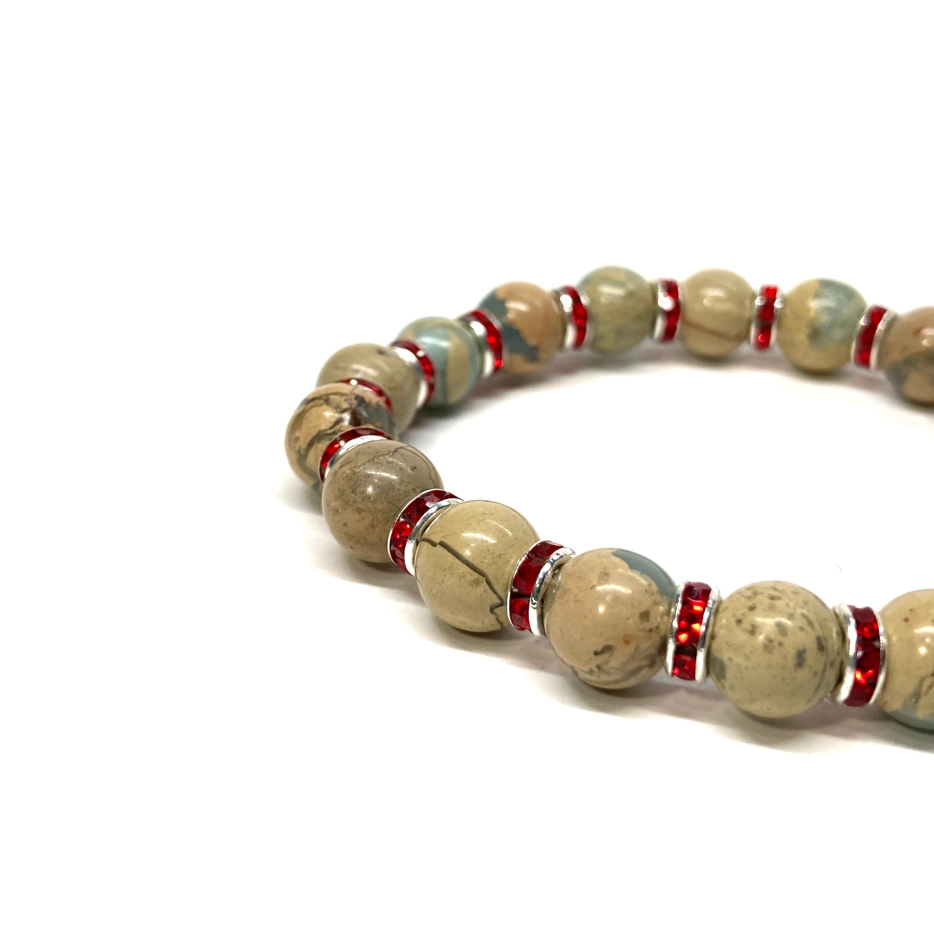 インプレッションストーン パワーストーン ブレスレット 8mm(レッド)メンズ・レディース 男性・女性 数珠ブレス 開運