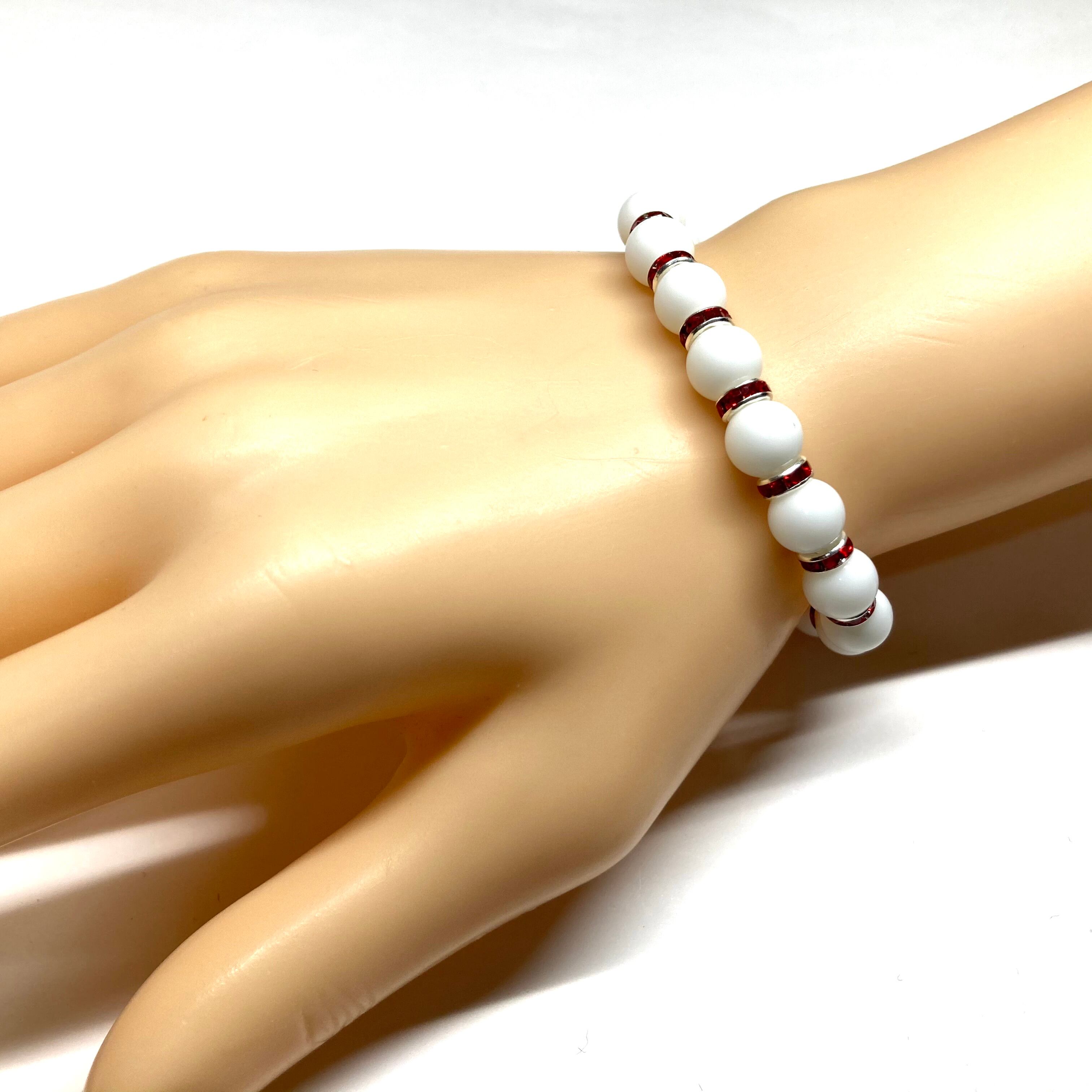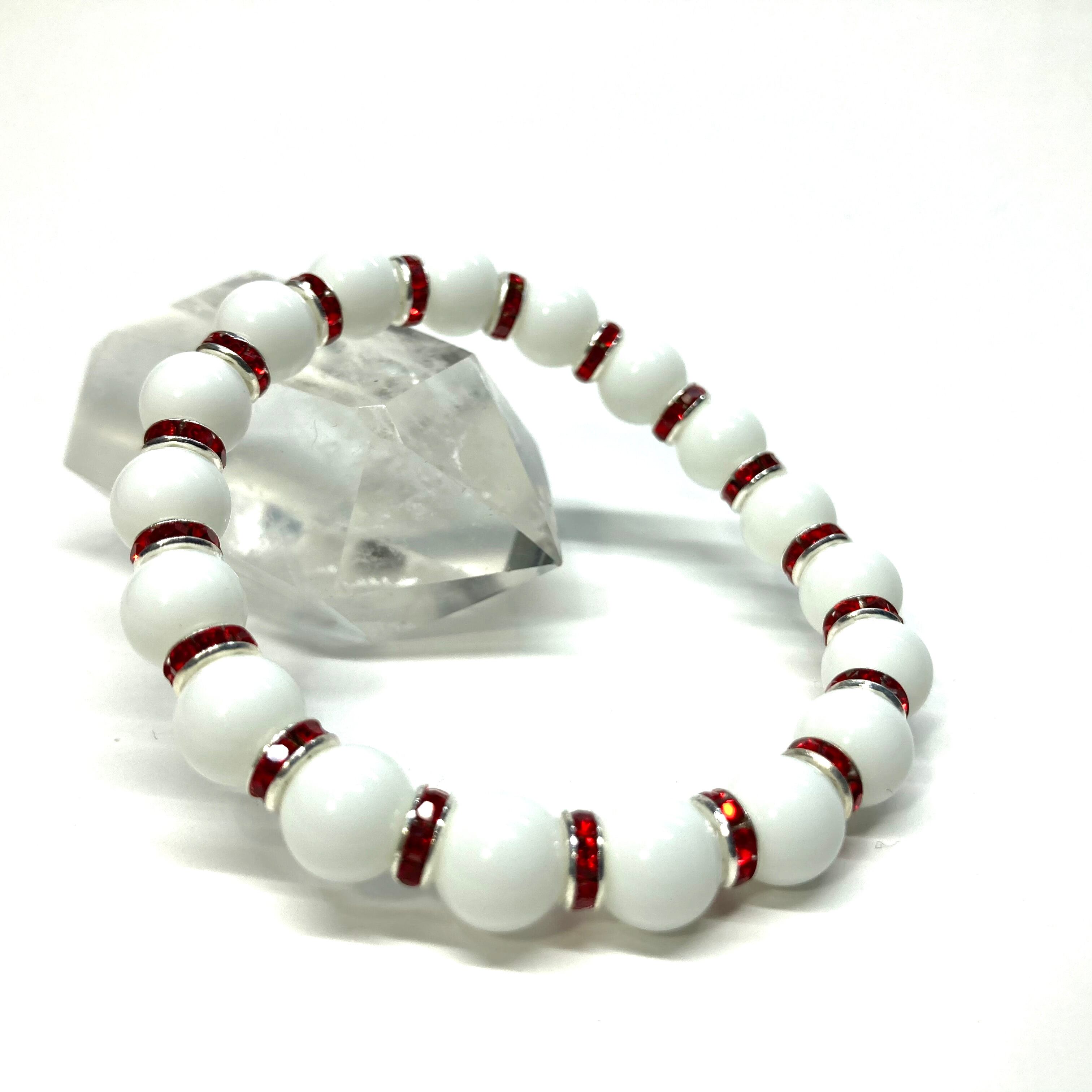 ホワイトオニキス パワーストーン ブレスレット 8mm(レッド)メンズ・レディース 男性・女性 数珠ブレス 開運