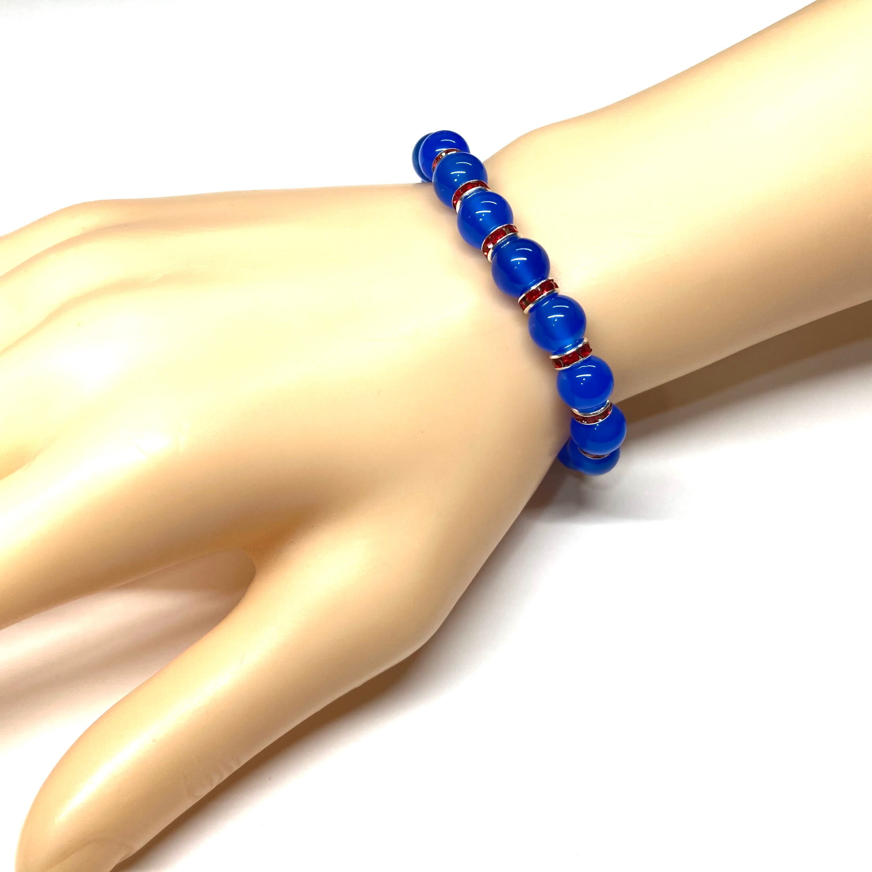 こちらは、ブルーメノウの8mm玉を使用したパワーストーンブレスレットです。石との間にはロンデルを挟み高級感を演出しております。シンプルなデザインは、シーン問わずどんなコーディネートとも合わせ易いブレスレットです。サイズは内周約15cm (手首周りを測り少し余裕をもってお買い求めくださいませ。)です。当社の中でも一番人気の実績があるデザインとなっております。気になる方はお早めにどうぞ。