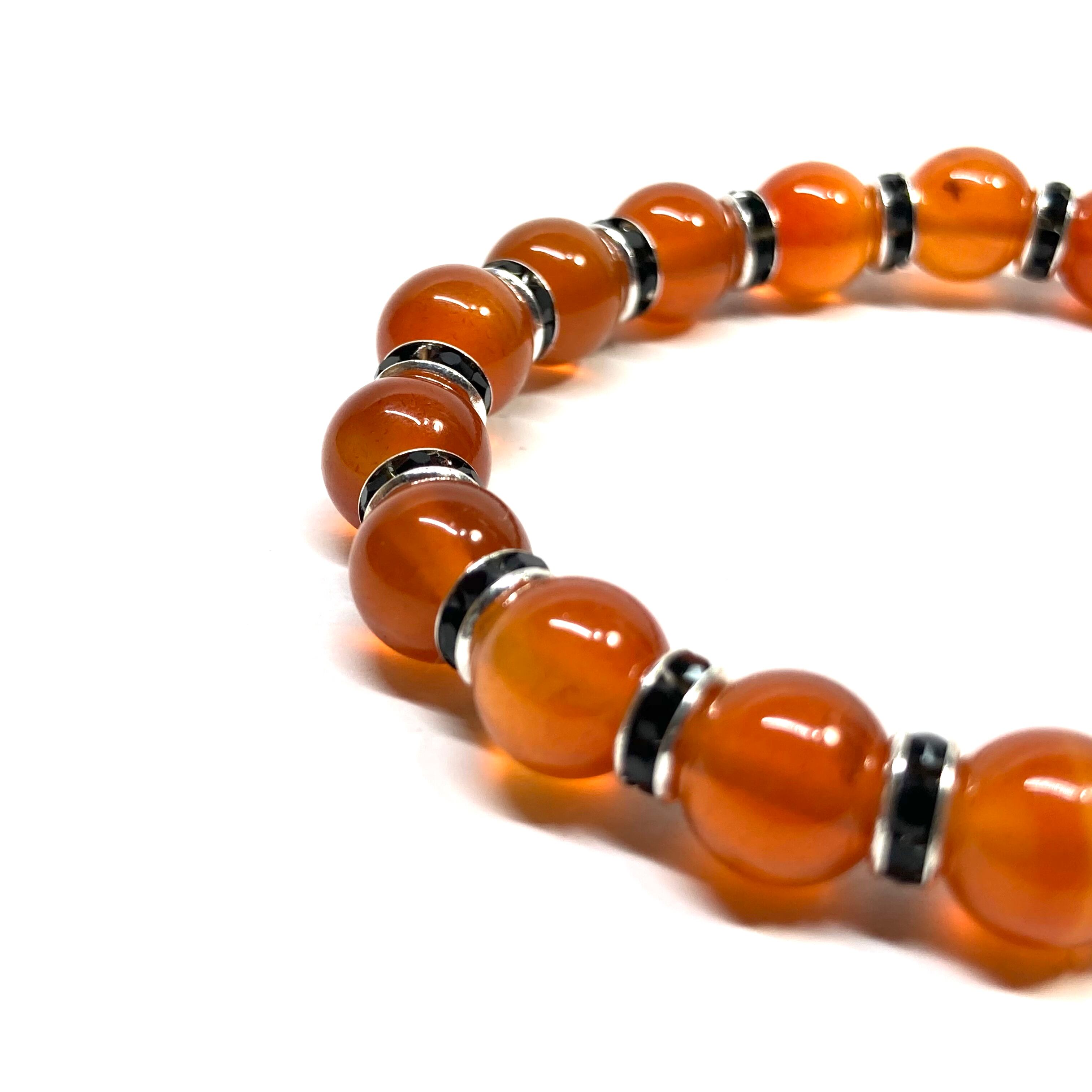 カーネリアン パワーストーン ブレスレット 8mm 7月誕生石 (ブラック)メンズ・レディース 男性・女性 数珠ブレス 開運
