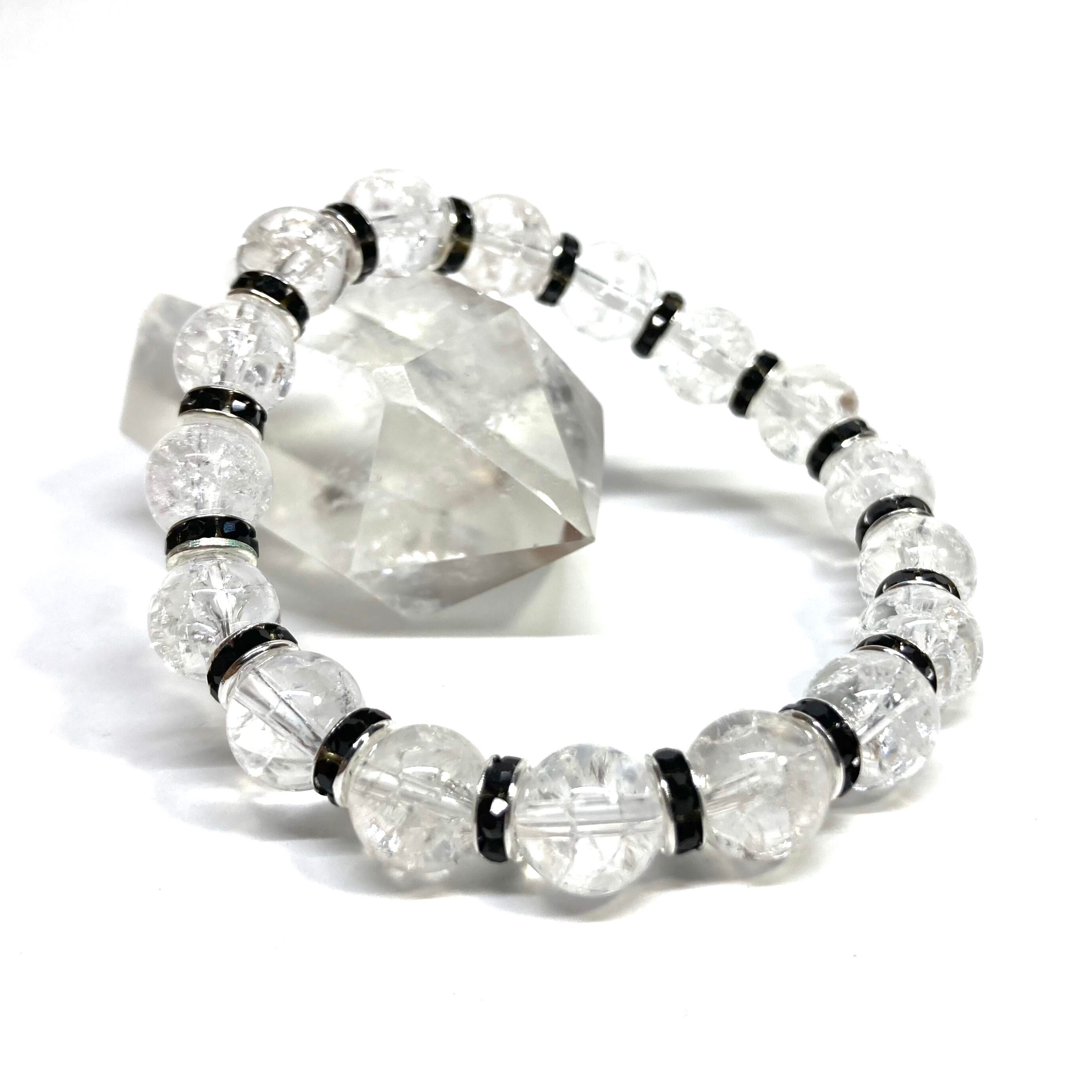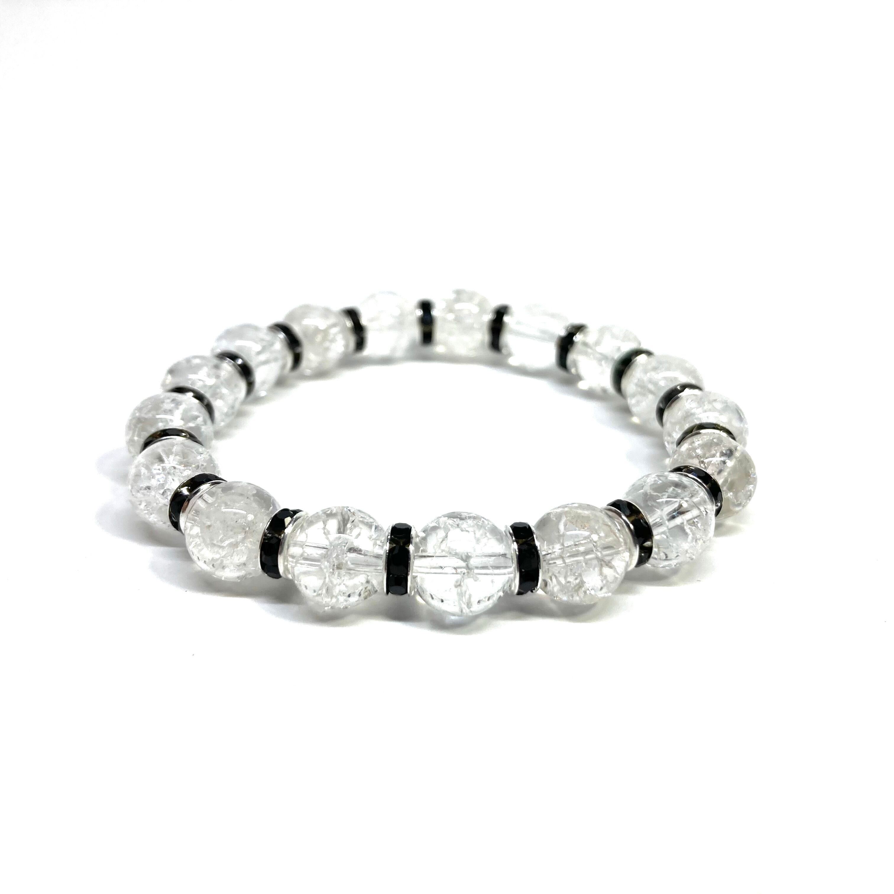 クラック水晶 パワーストーン ブレスレット 8mm (ブラック)メンズ・レディース 男性・女性 数珠ブレス 開運
