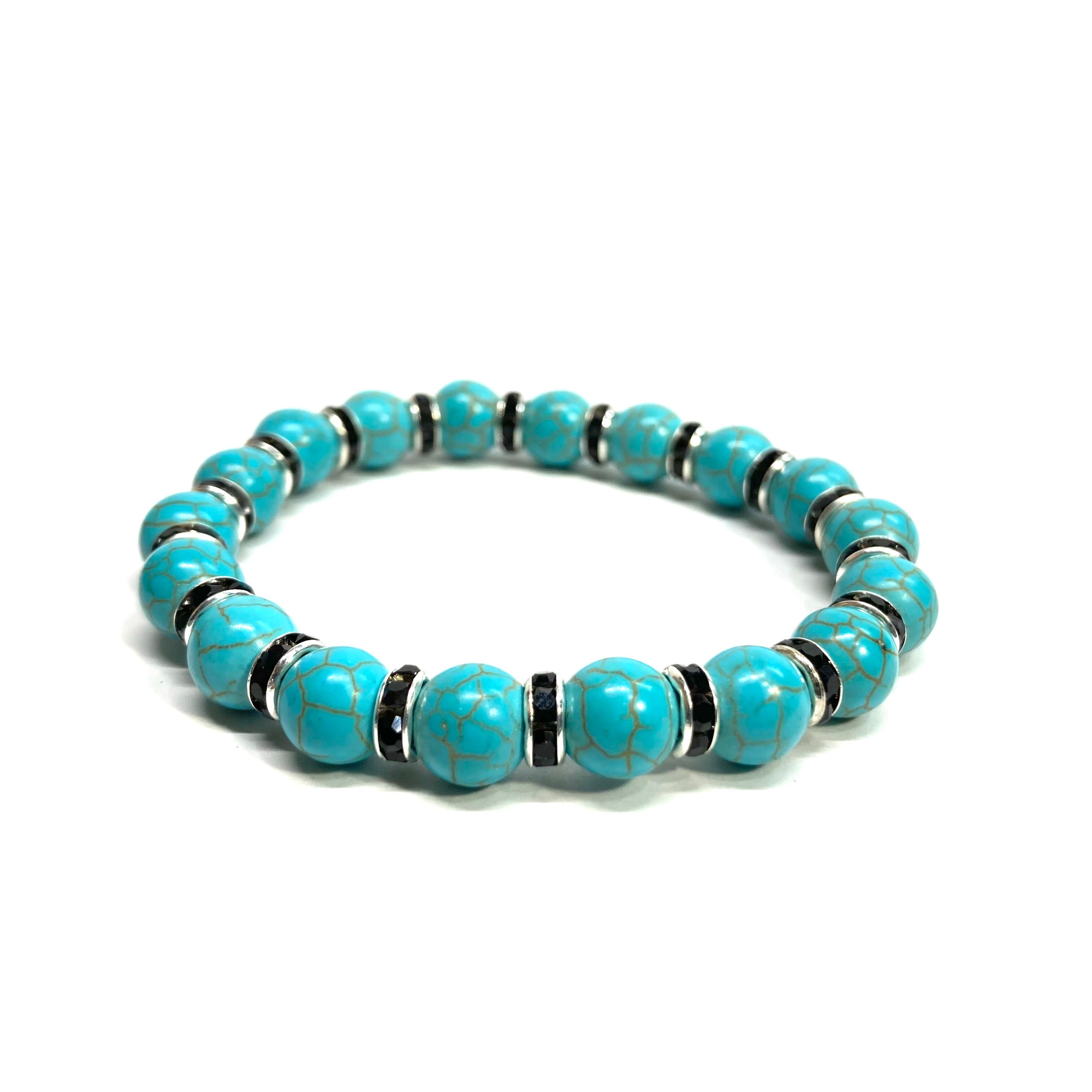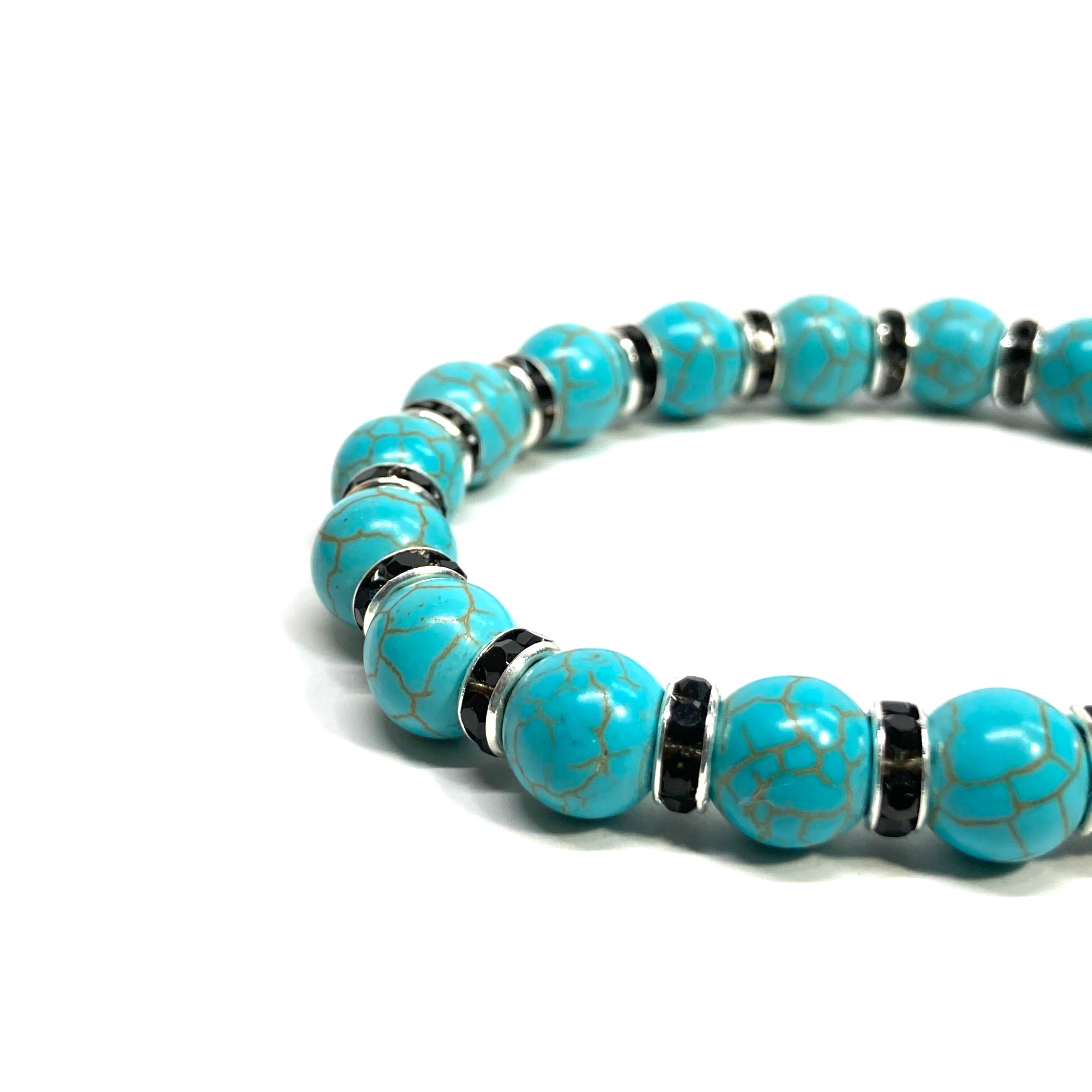 ターコイズ パワーストーン ブレスレット 8mm #2 (ブラック)メンズ・レディース 男性・女性 数珠ブレス 開運