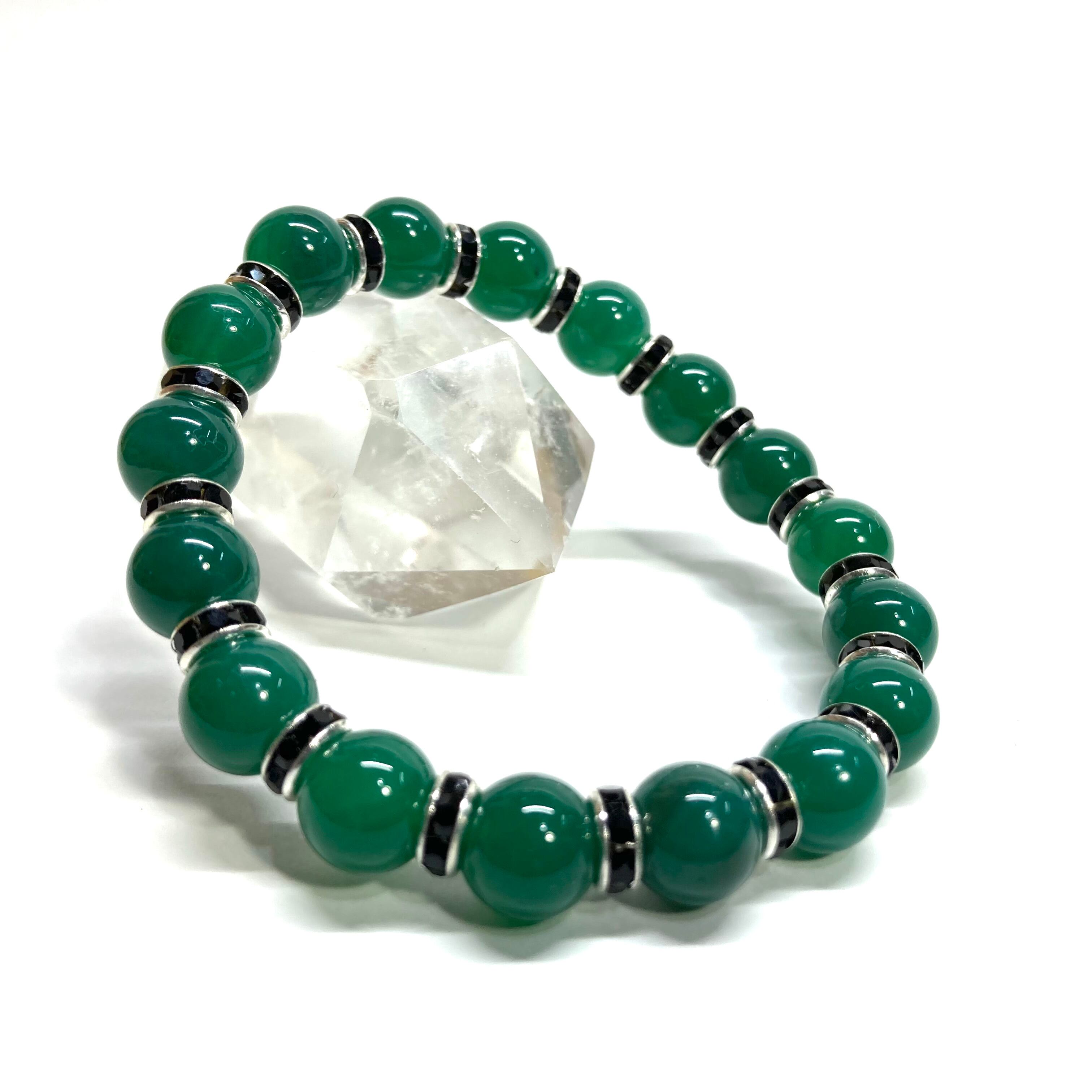 緑瑪瑙 パワーストーン ブレスレット 8mm 天然石 (ブラック)メンズ・レディース 男性・女性 数珠ブレス 開運