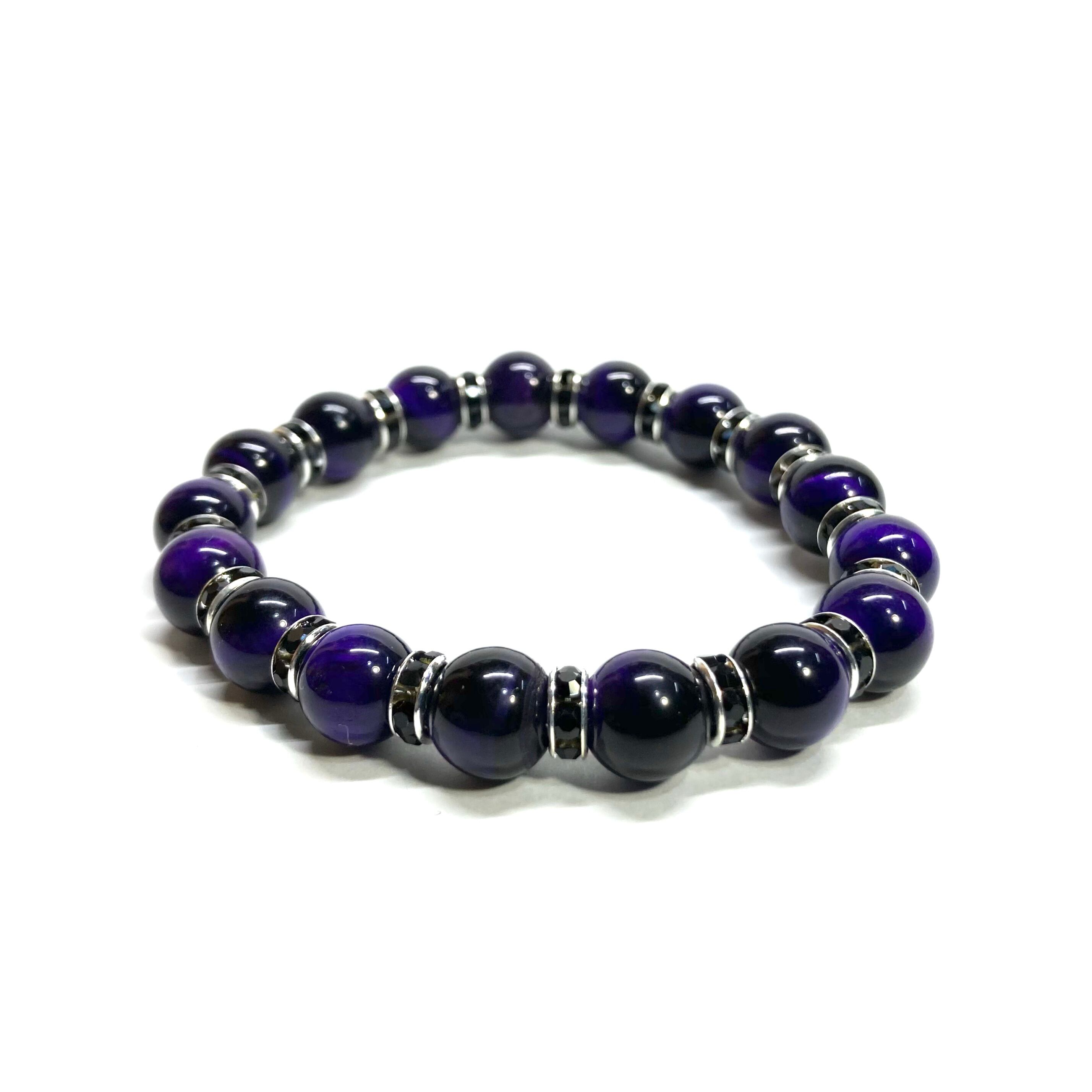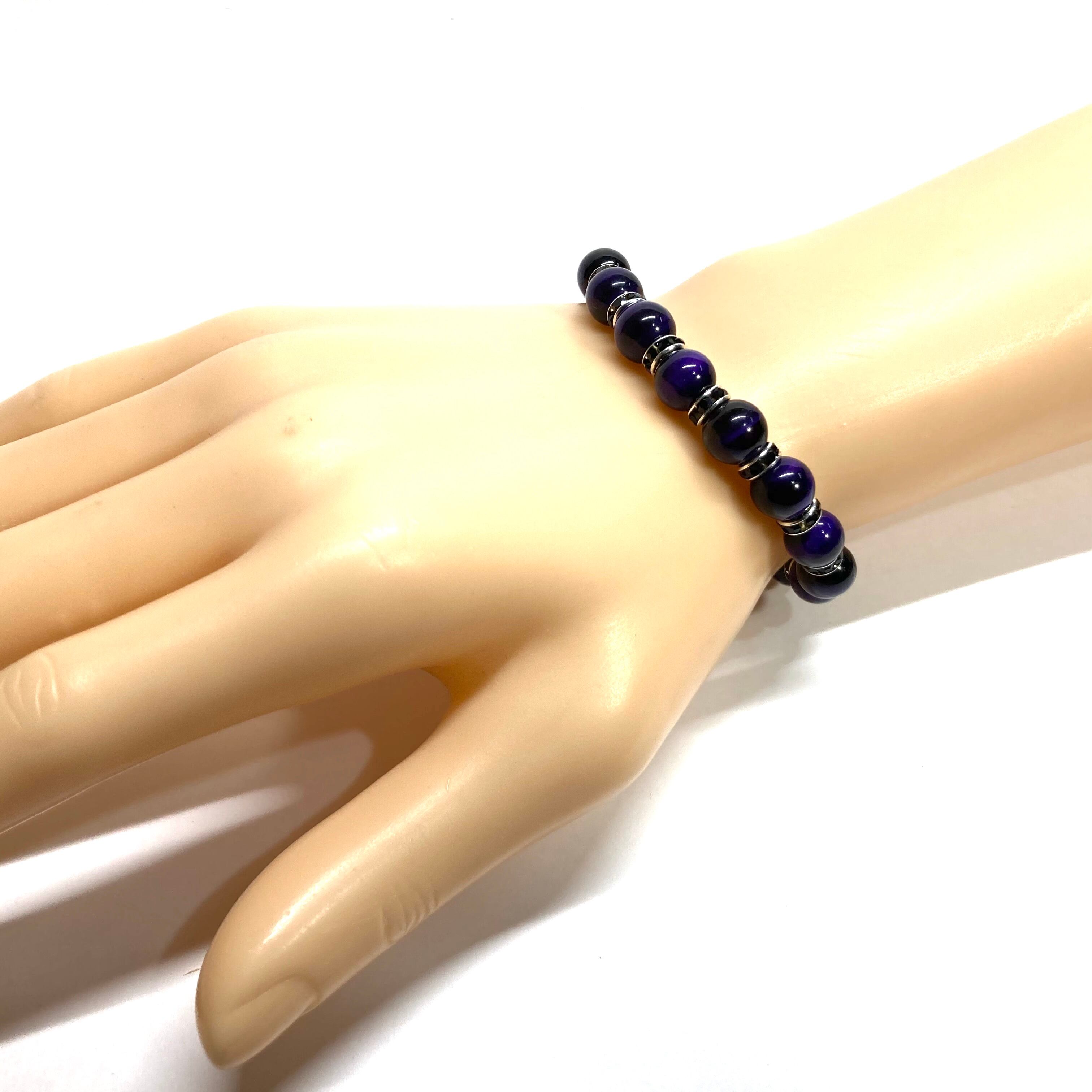 パープルタイガーアイ パワーストーン ブレスレット 8mm (ブラック)メンズ・レディース 男性・女性 数珠ブレス 開運