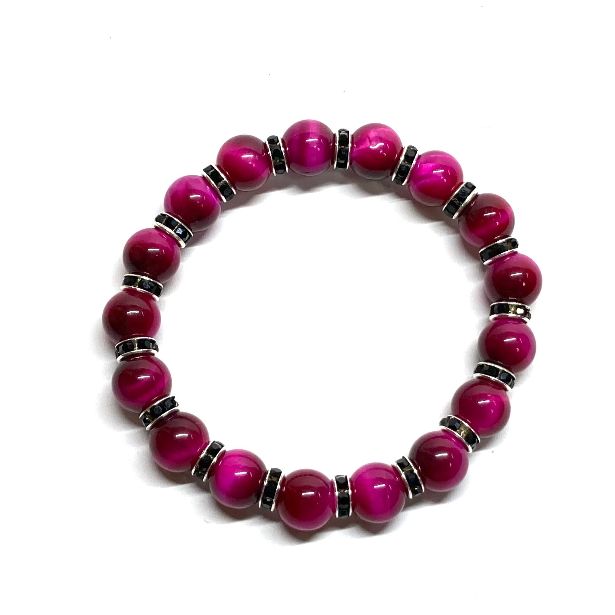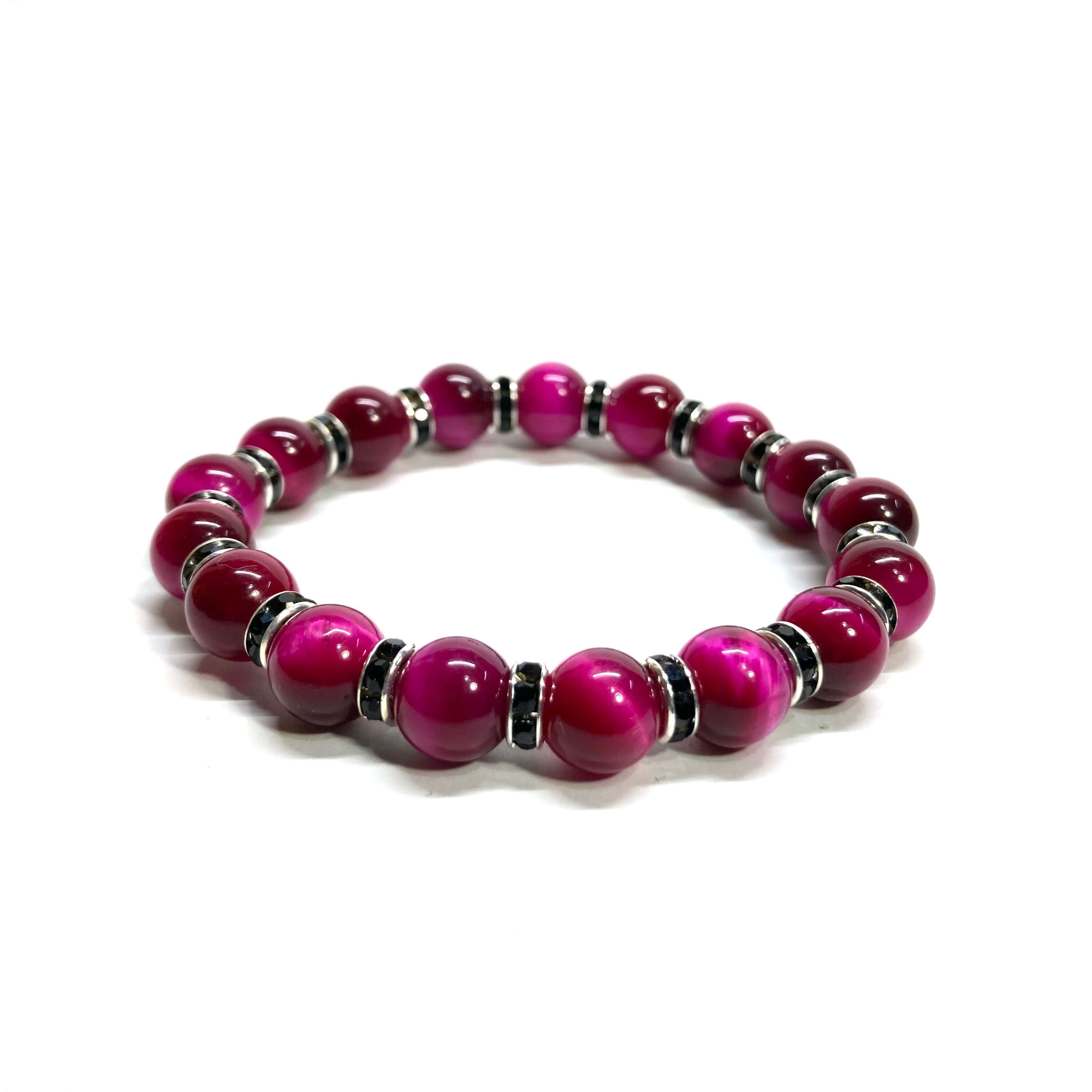 ピンクタイガーアイ パワーストーン ブレスレット 8mm (ブラック)メンズ・レディース 男性・女性 数珠ブレス 開運