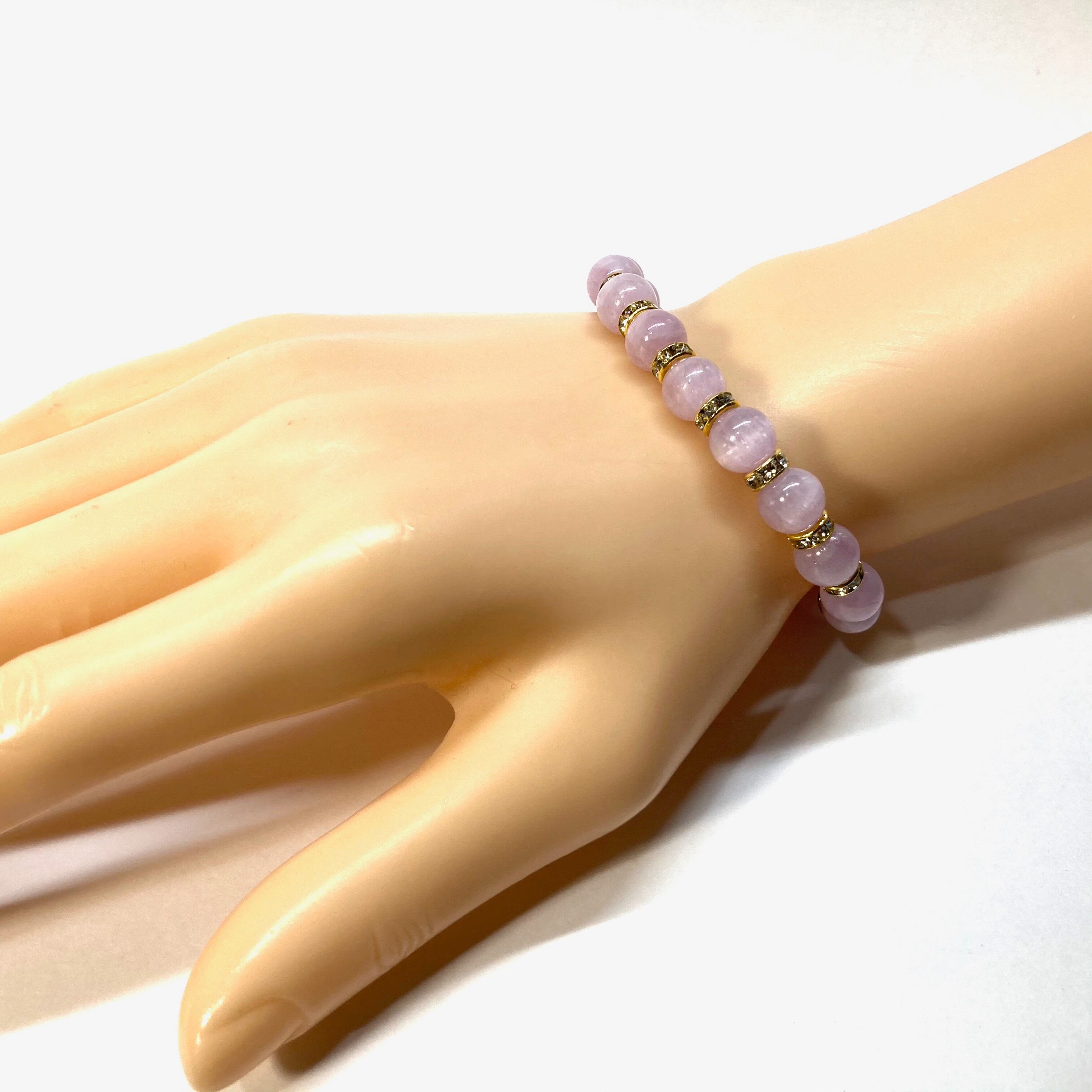 クンツァイト パワーストーン ブレスレット 8mm GD (ゴールド)メンズ・レディース 男性・女性 数珠ブレス 開運 天然石