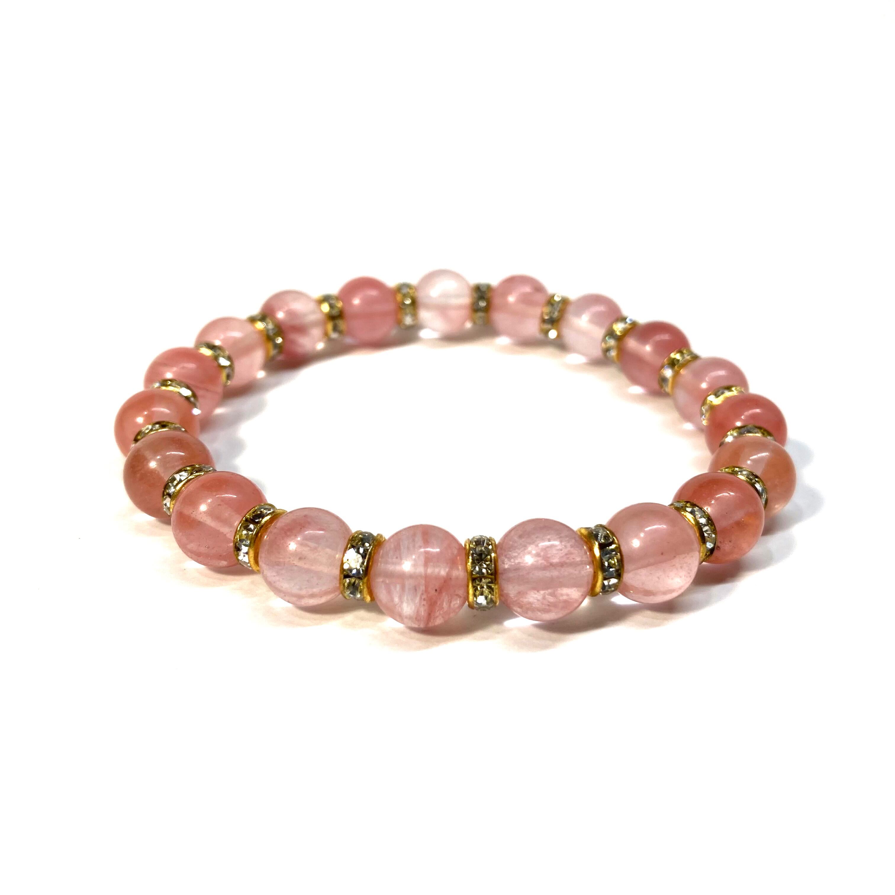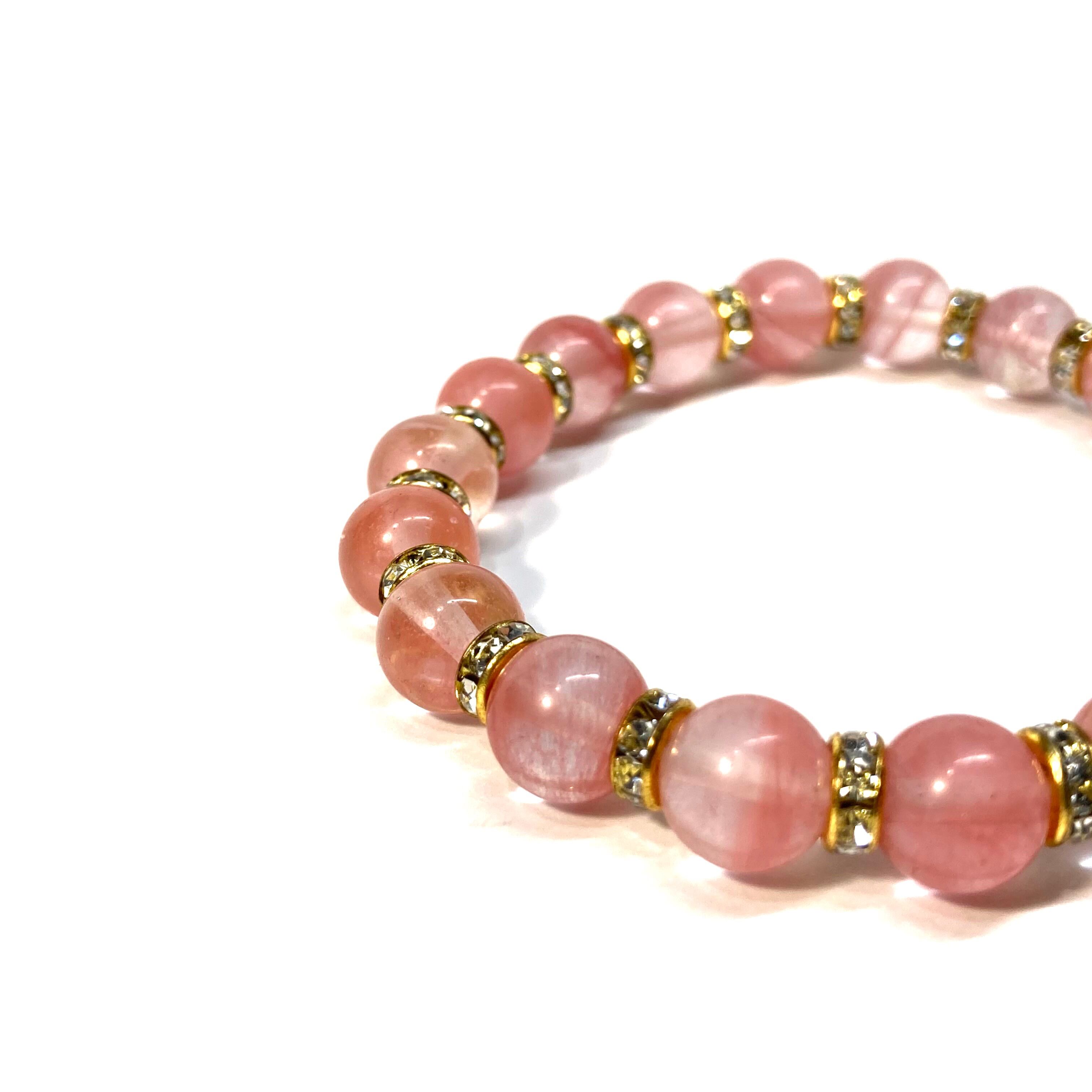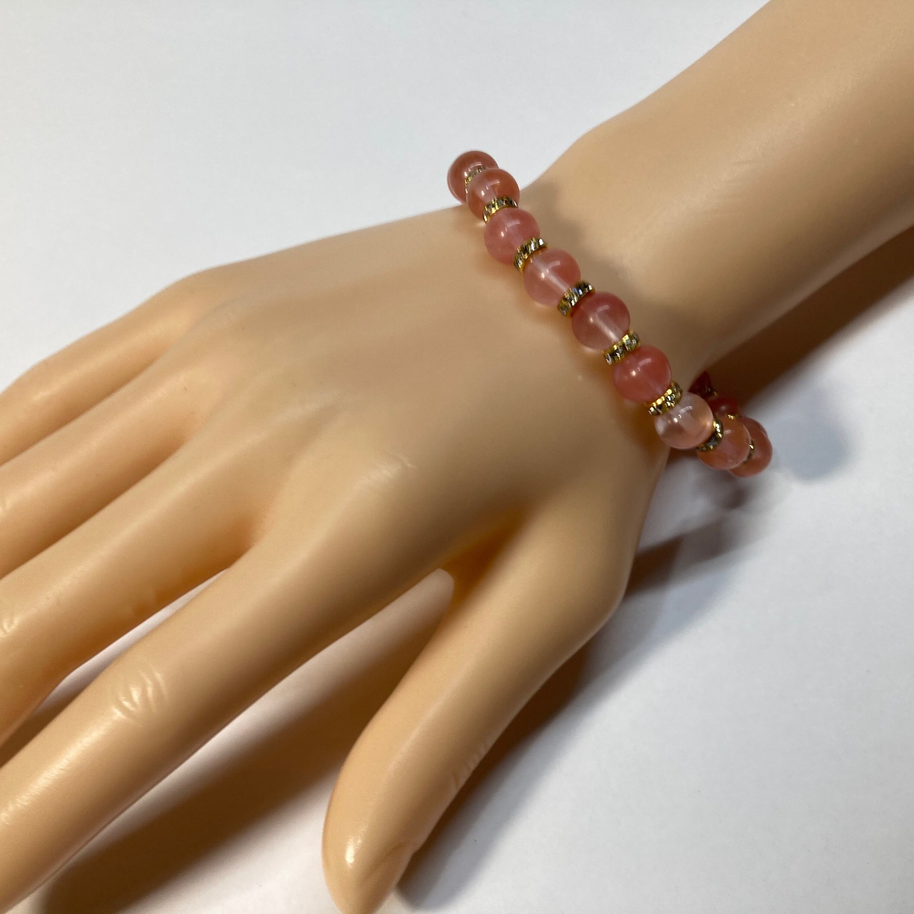 チェリークォーツ パワーストーン ブレスレット 8mm (ゴールド)メンズ・レディース 男性・女性 数珠ブレス 開運