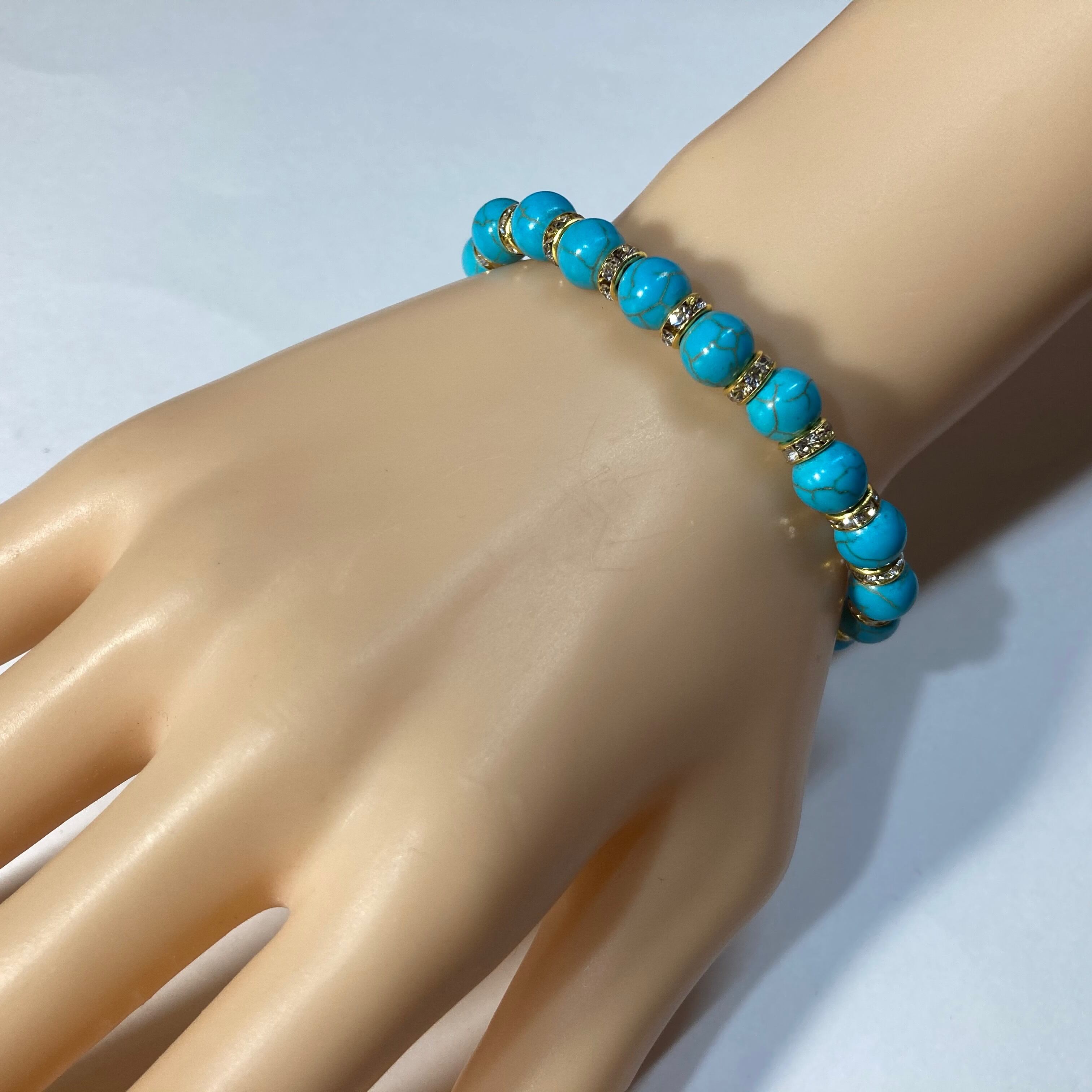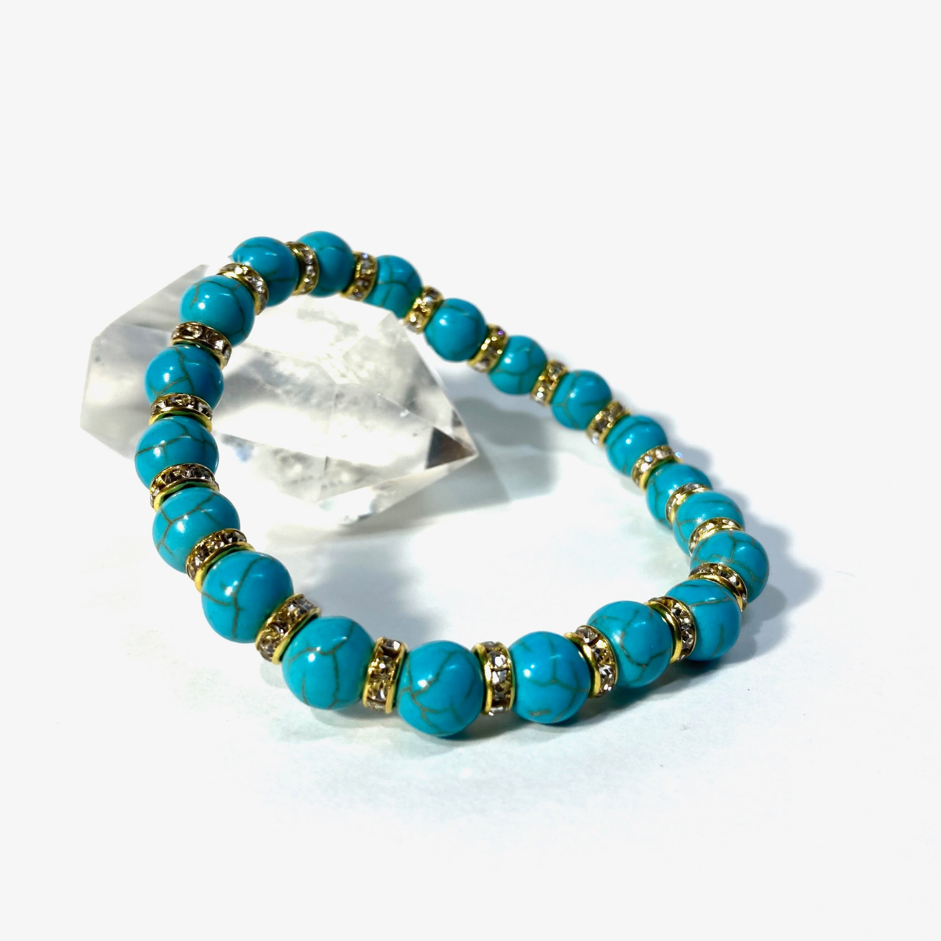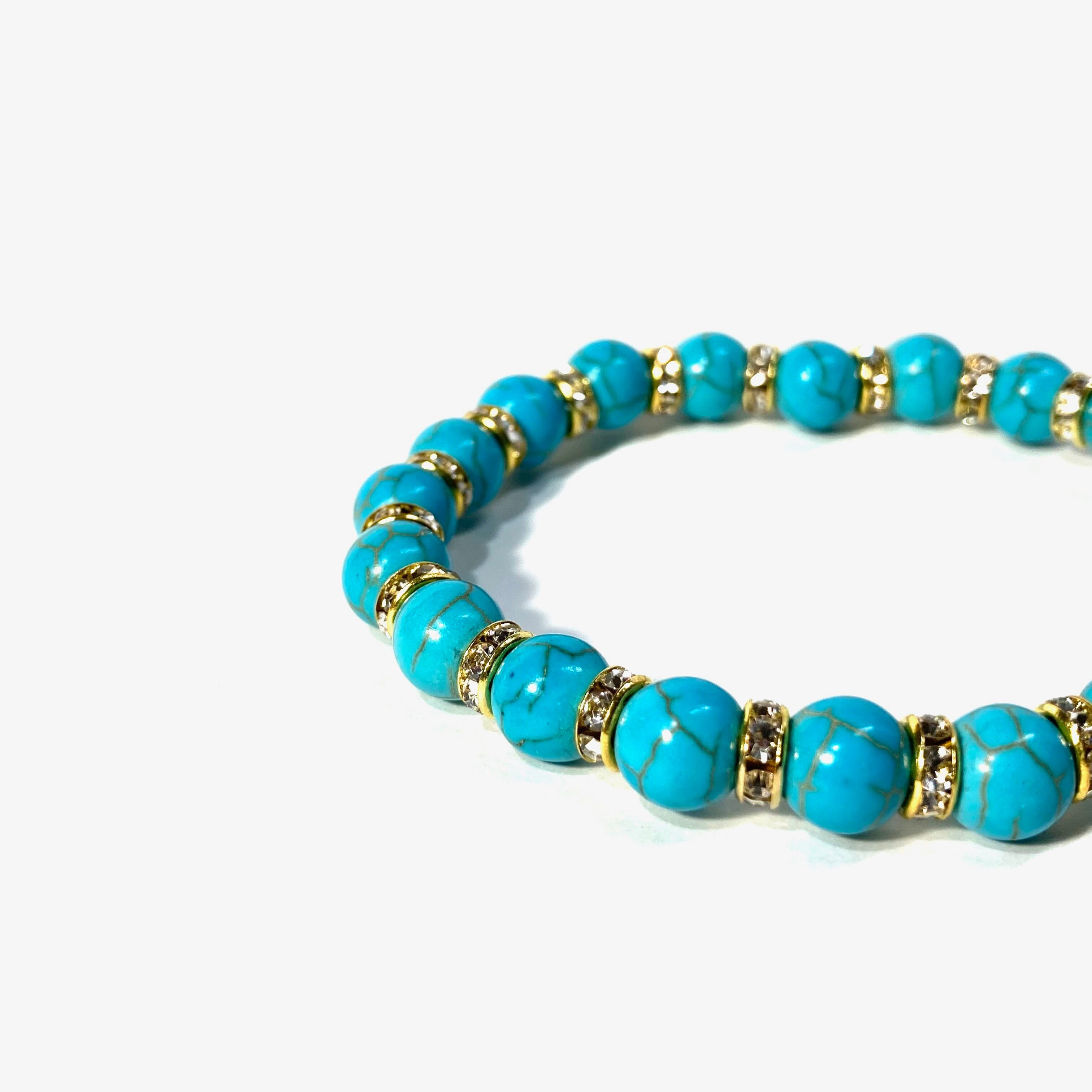 ターコイズ パワーストーン ブレスレット 8mm #2 (ゴールド)メンズ・レディース 男性・女性 数珠ブレス 開運