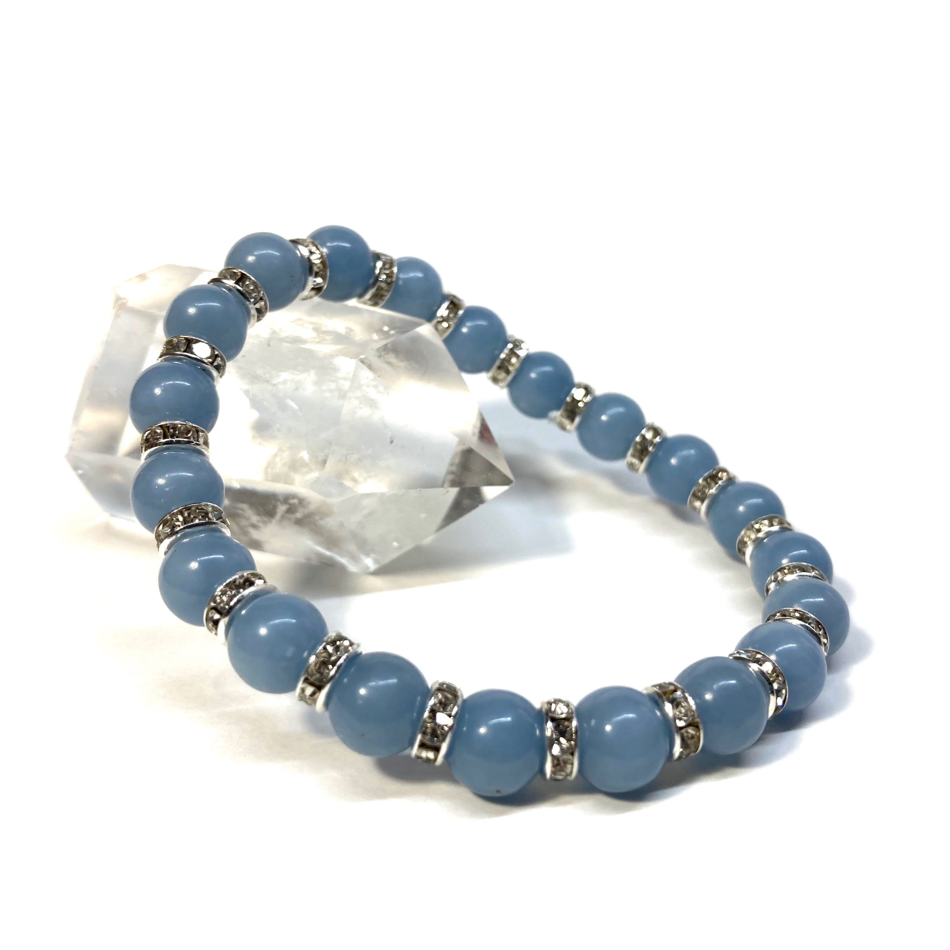 エンジェライト パワーストーン ブレスレット 8mm 天然石 (シルバー)メンズ・レディース 男性・女性 数珠ブレス 開運
