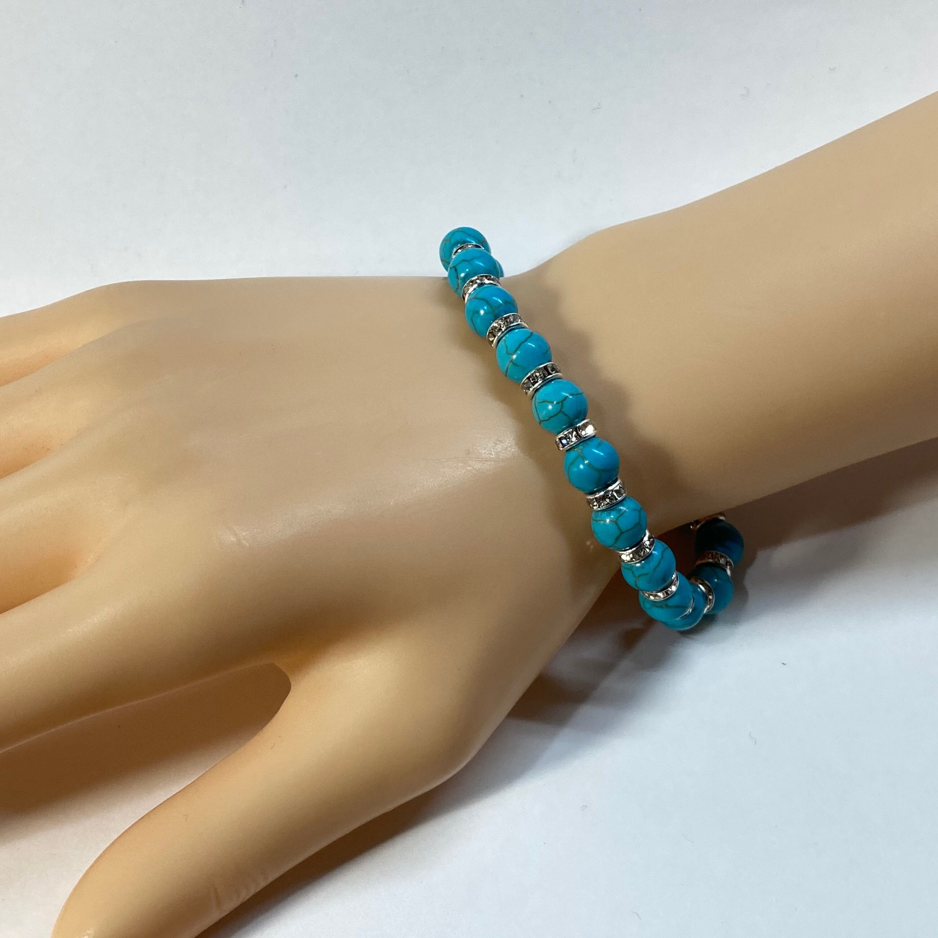 ターコイズ パワーストーン ブレスレット 8mm #2 (シルバー)メンズ・レディース 男性・女性 数珠ブレス 開運