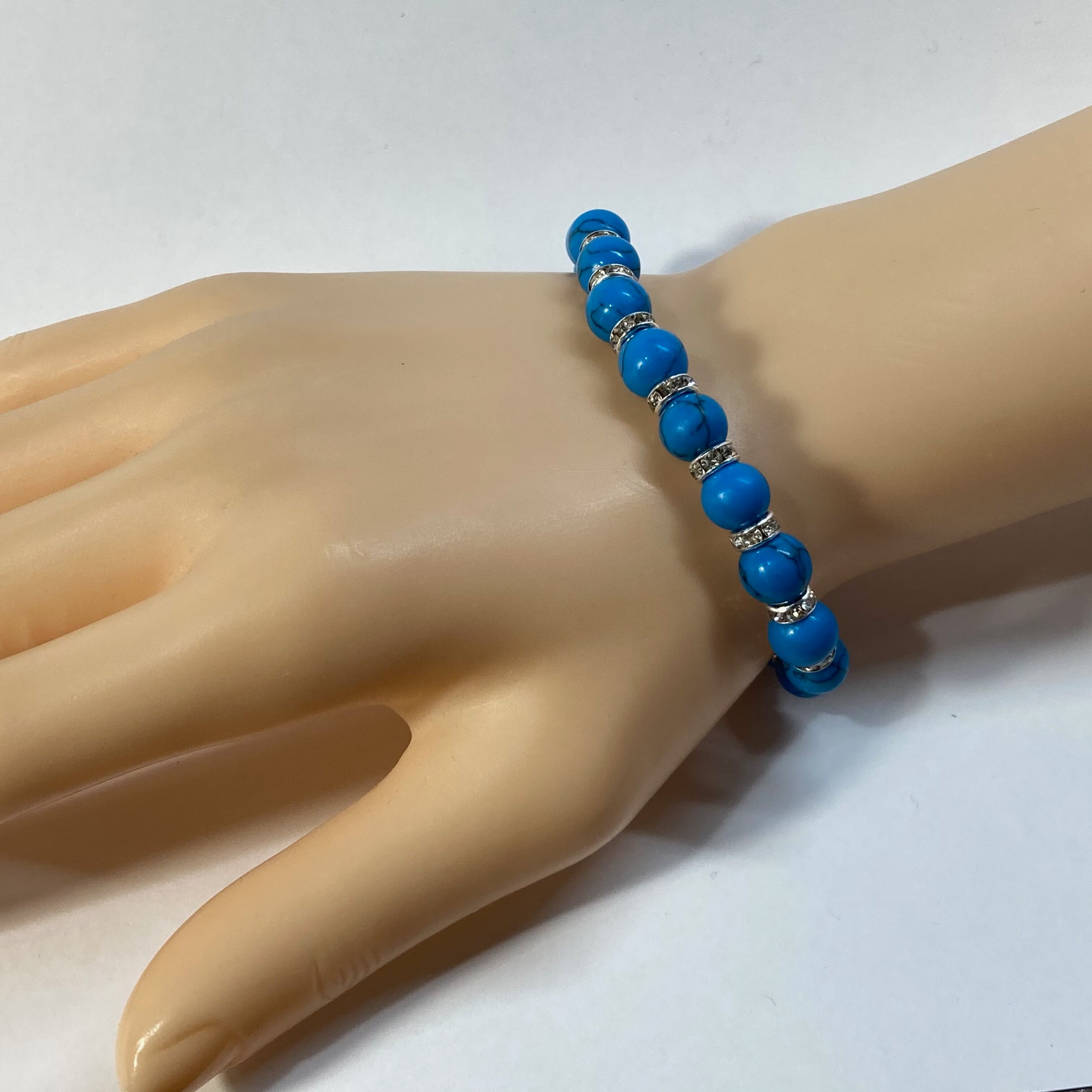 ターコイズ パワーストーン ブレスレット 8mm #1 (シルバー)メンズ・レディース 男性・女性 数珠ブレス 開運