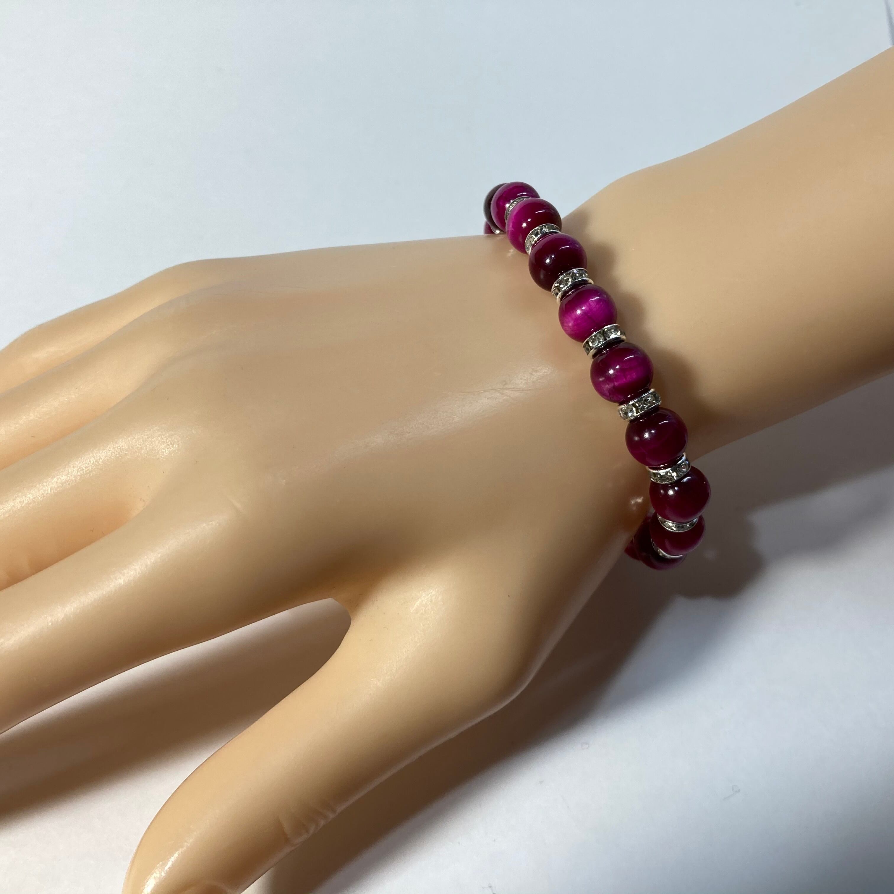 ピンクタイガーアイ パワーストーン ブレスレット 8mm (シルバー)メンズ・レディース 男性・女性 数珠ブレス 開運