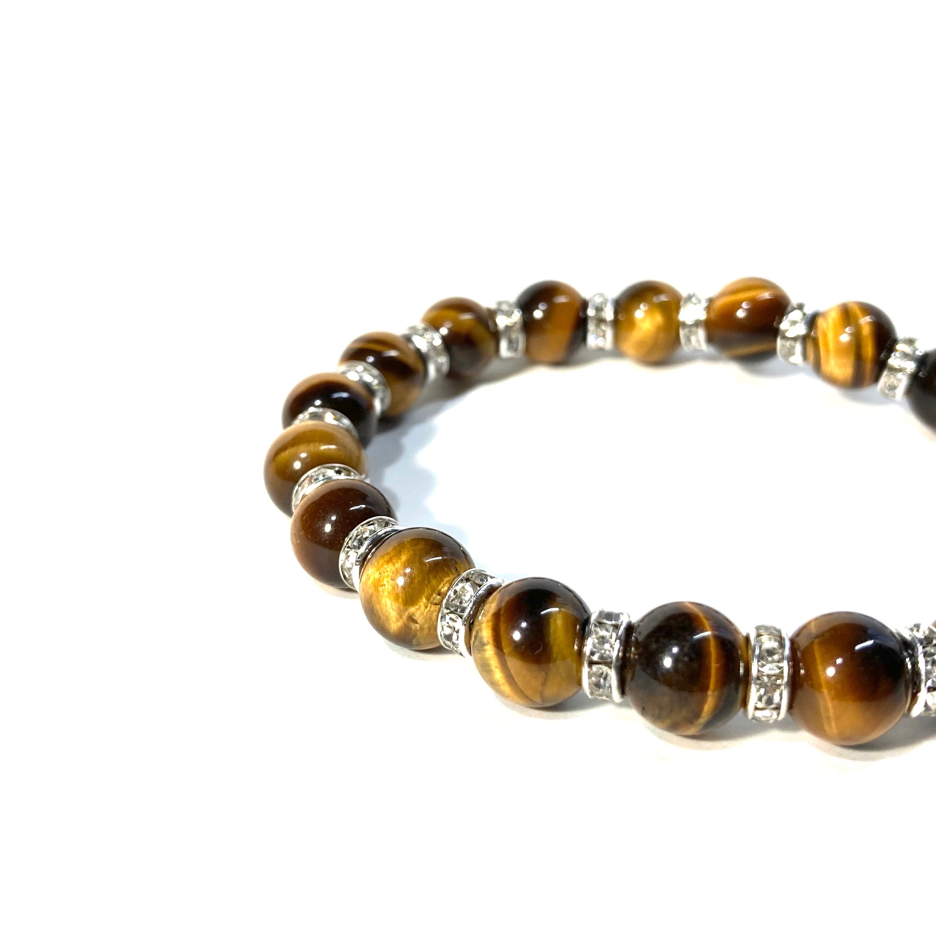 こちらは、タイガーアイの8mm玉を使用したパワーストーンブレスレットです。石との間にはロンデルを挟み高級感を演出しております。シンプルなデザインは、シーン問わずどんなコーディネートとも合わせ易いブレスレットです。サイズは内周約15cm (手首周りを測り少し余裕をもってお買い求めくださいませ。)です。当社の中でも一番人気の実績があるデザインとなっております。気になる方はお早めにどうぞ。