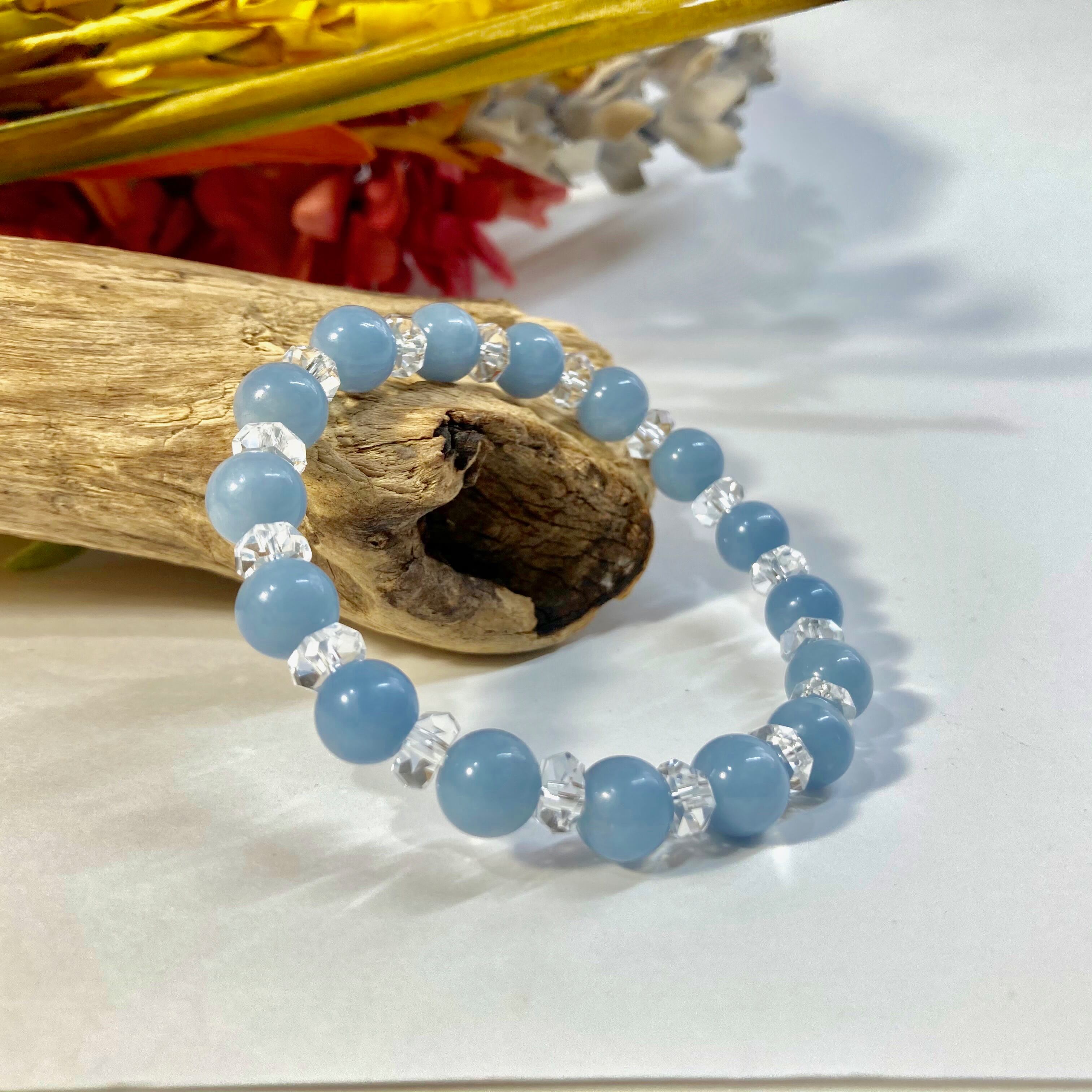 エンジェライト パワーストーン ブレスレット 天然石ブレスレット 8mm (カット水晶) メンズ・レディース 男性・女性 数珠ブレス 開運