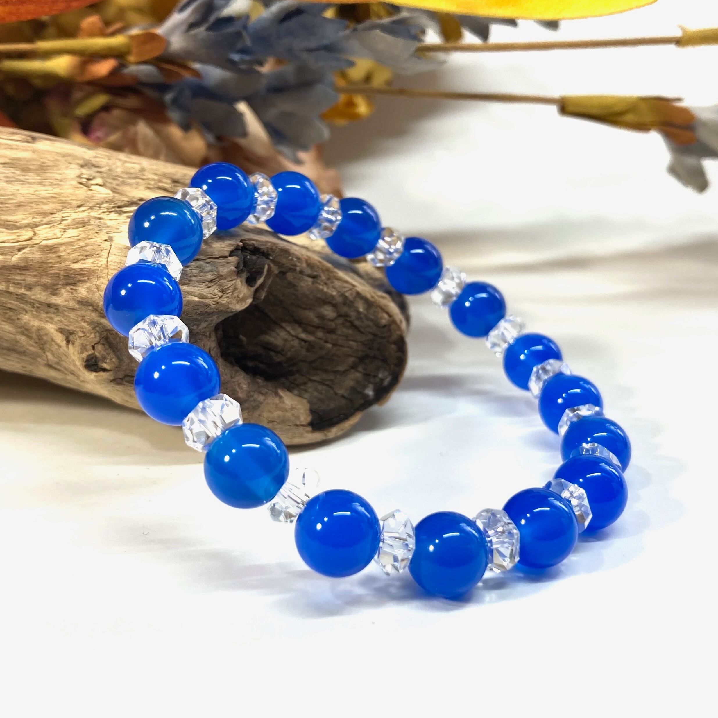 こちらは、ブルーメノウ の8mm玉を使用したパワーストーンブレスレットです。今回は石との間にキラキラと輝きを見せるカットボタン水晶を使い、いつものブレスレットとはまた違った印象に仕上げています。内周15cmです。(サイズ変更は1cmあたり100円で承っております。サイズ変更の場合は金額変更しますのでメッセージにてご連絡くださいませ。)気になる方はお早めにどうぞ。