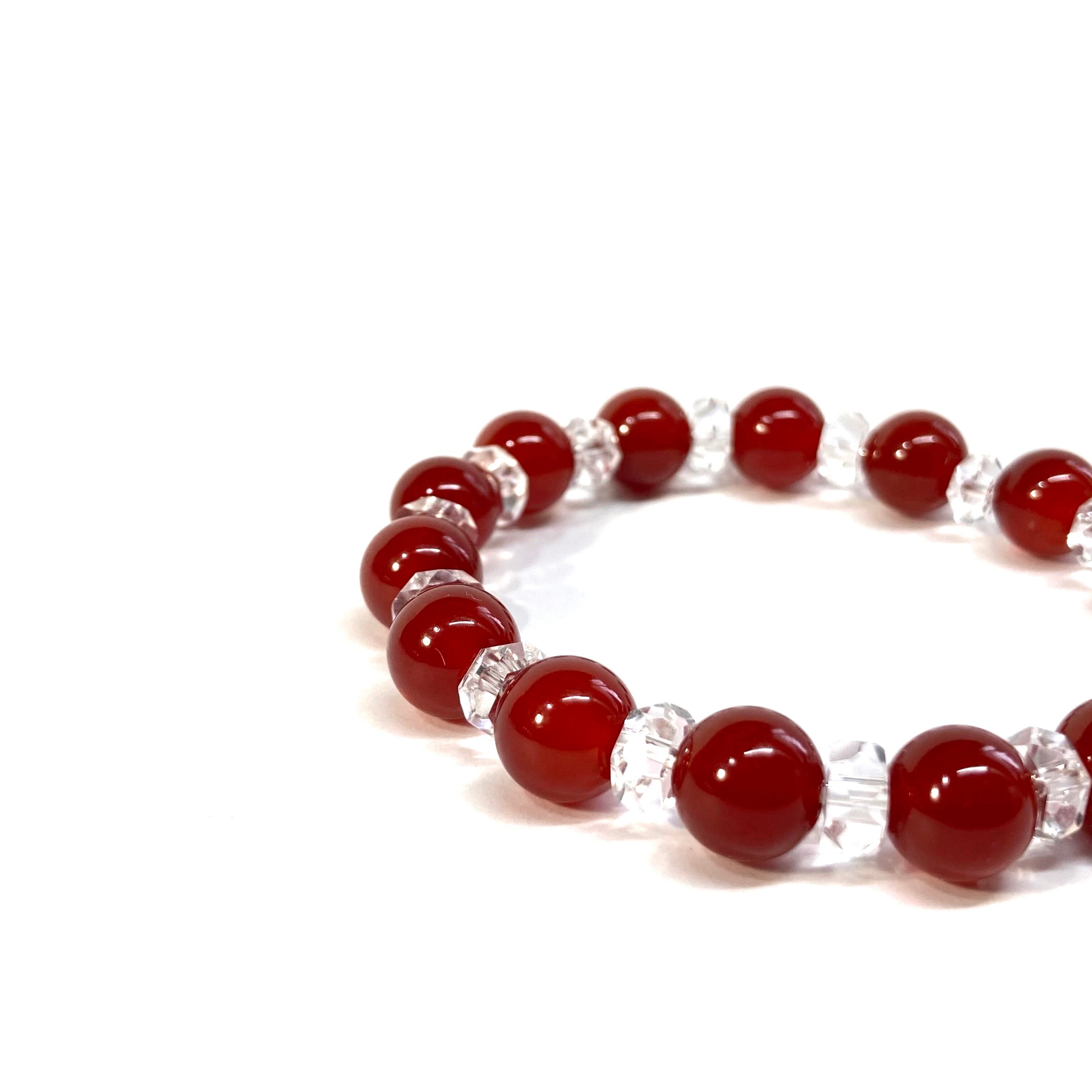 赤瑪瑙 パワーストーン ブレスレット 天然石ブレスレット 8mm (カット水晶) メンズ・レディース 男性・女性 数珠ブレス 開運