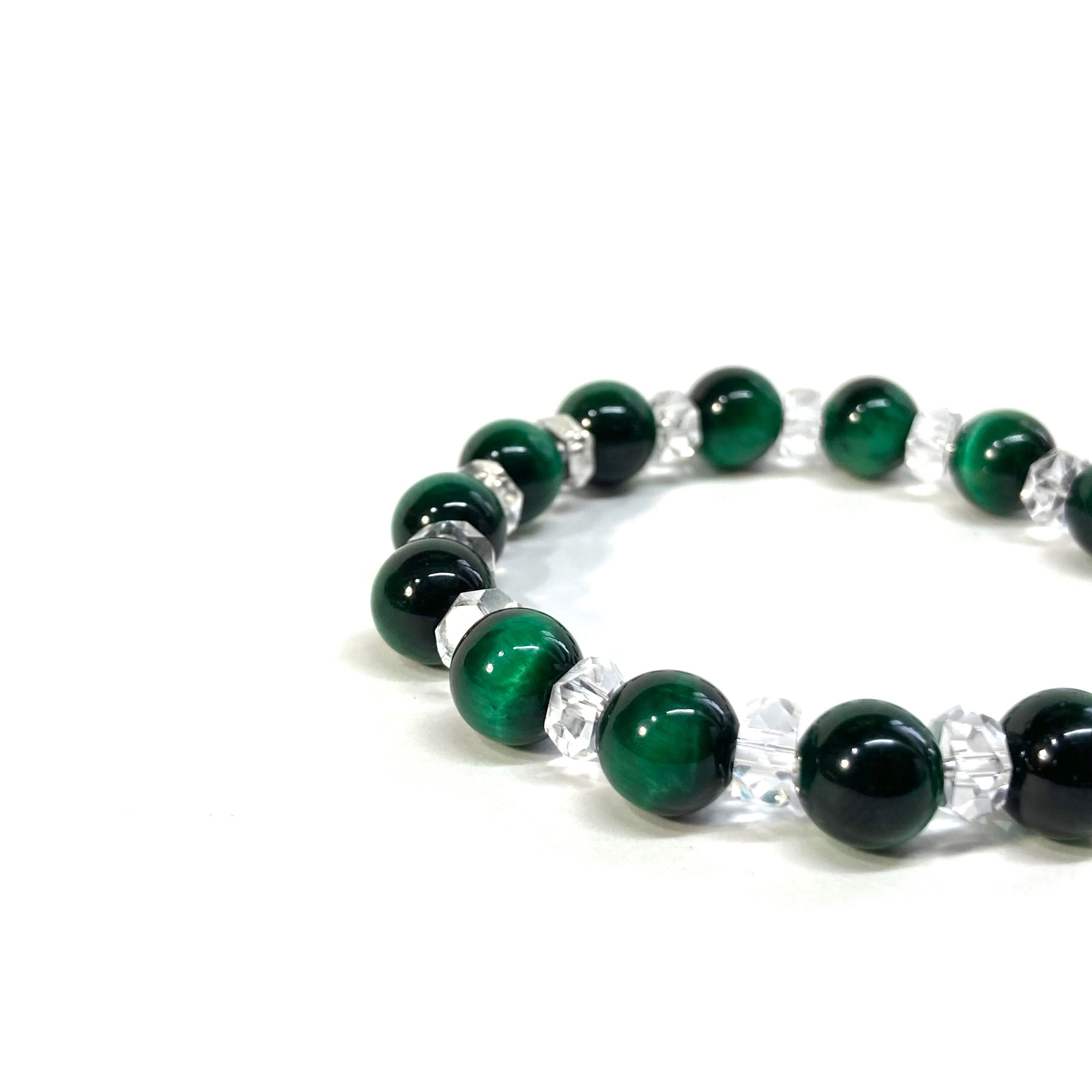 グリーンタイガーアイ パワーストーン ブレスレット 天然石 8mm (カット水晶) メンズ・レディース 男性・女性 数珠ブレス 開運