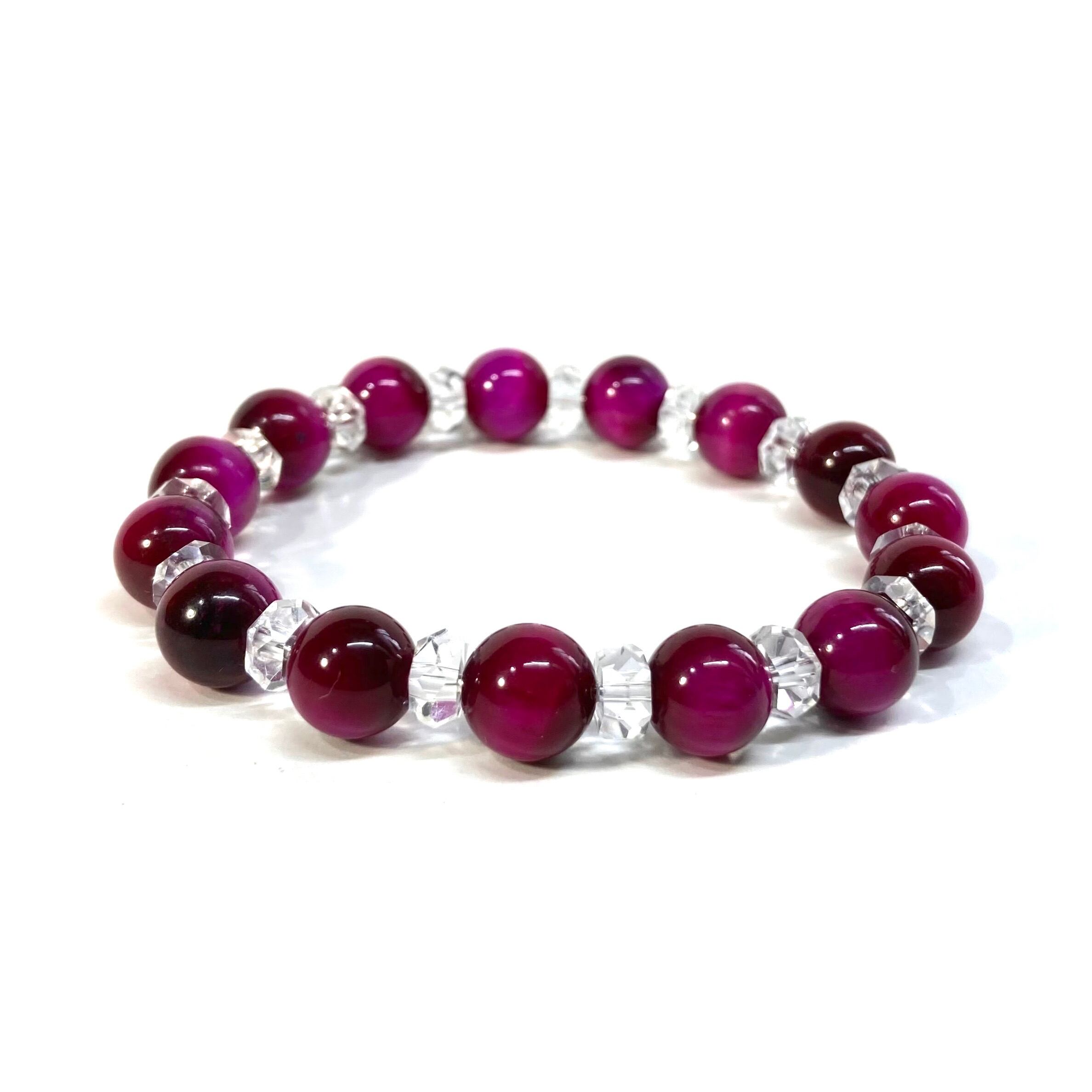 ピンクタイガーアイ パワーストーン ブレスレット 天然石 8mm (カット水晶) メンズ・レディース 男性・女性 数珠ブレス 開運