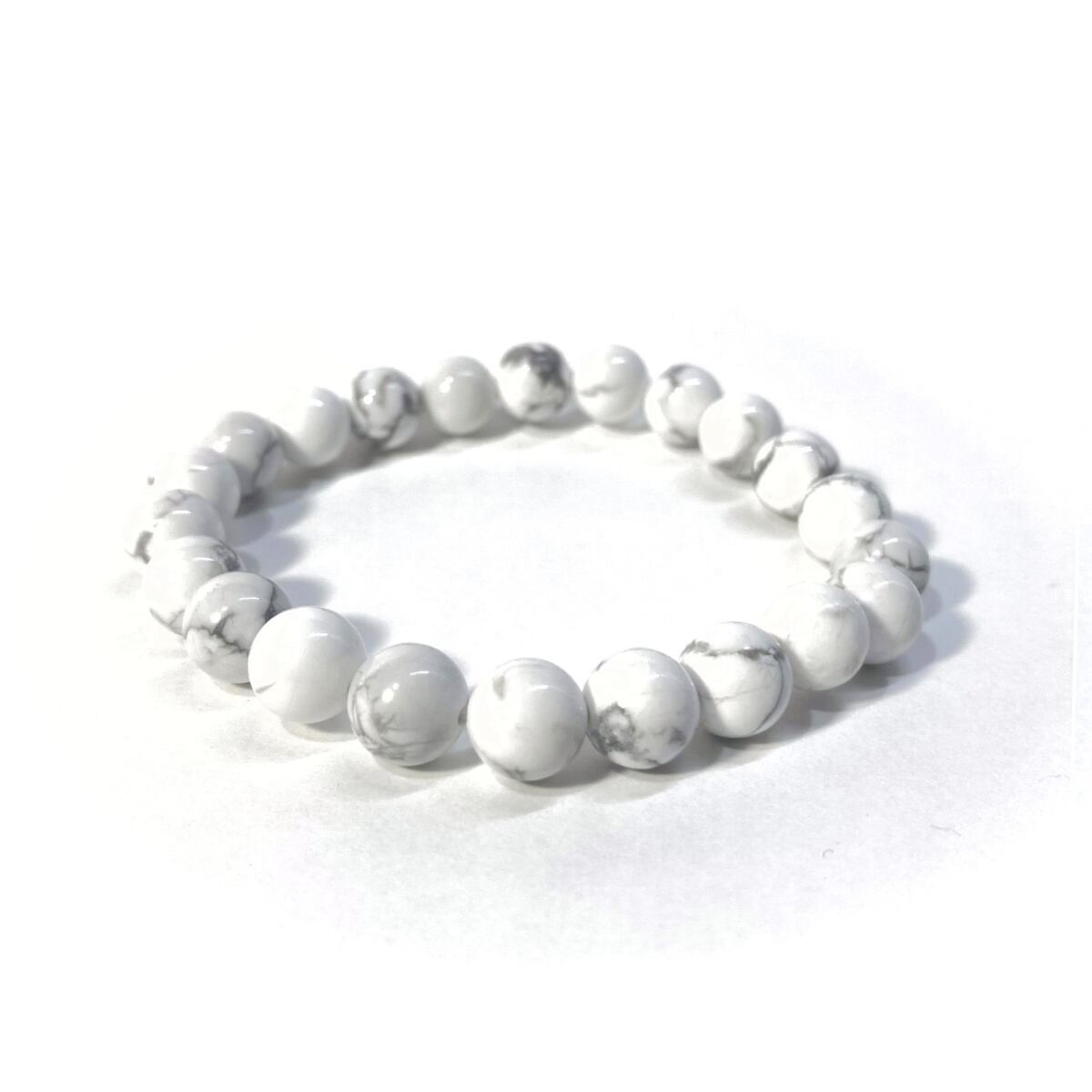 こちらは、ハウライトの8mm玉を使用したパワーストーンブレスレットです。シンプルなデザインは、シーン問わずどんなコーディネートとも合わせ易いブレスレットです。内周15cmです。(サイズ変更は1cmあたり100円で承っております。サイズ変更の場合は金額変更しますのでメッセージにてご連絡くださいませ。)気になる方はお早めにどうぞ。