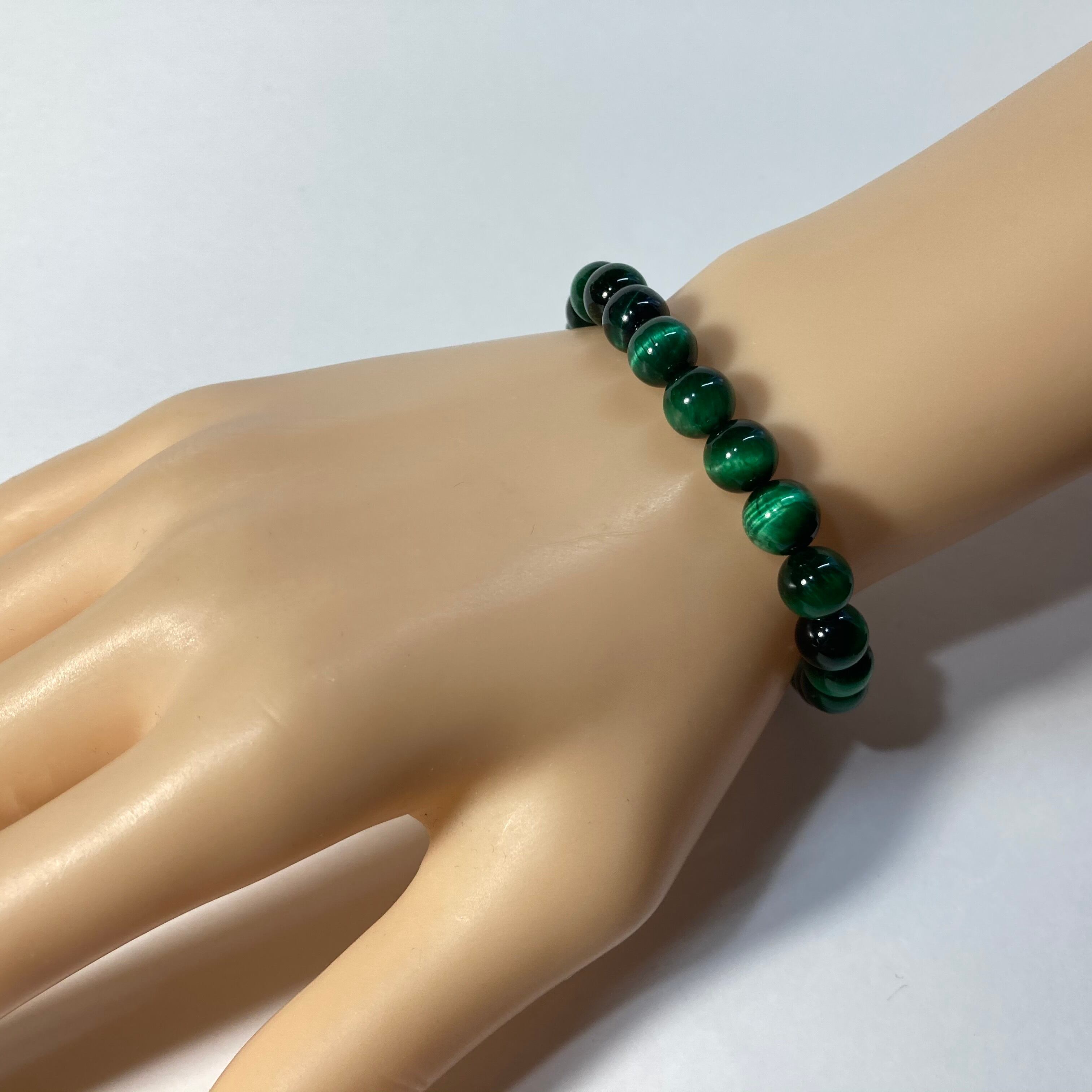 こちらは、グリーンタイガーアイの8mm玉を使用したパワーストーンブレスレットです。シンプルなデザインは、シーン問わずどんなコーディネートとも合わせ易いブレスレットです。内周15cmです。(サイズ変更は1cmあたり100円で承っております。サイズ変更の場合は金額変更しますのでメッセージにてご連絡くださいませ。)気になる方はお早めにどうぞ。