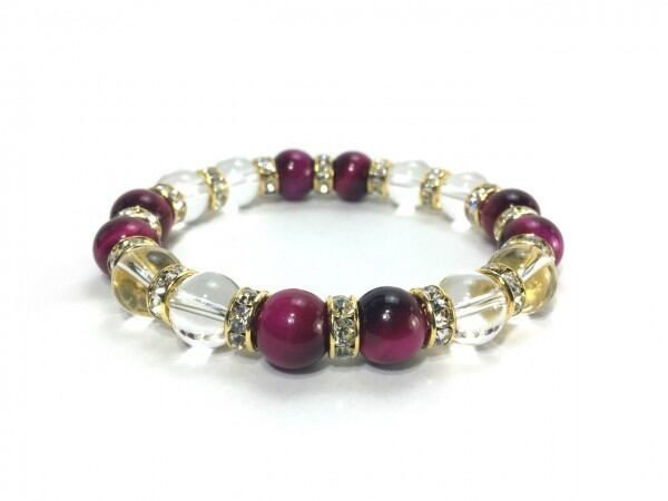 ピンクタイガーアイ&水晶 パワーストーン ブレスレット 天然石 10mm (ゴールド)メンズ・レディース 男性・女性 数珠ブレス 開運 ☆
