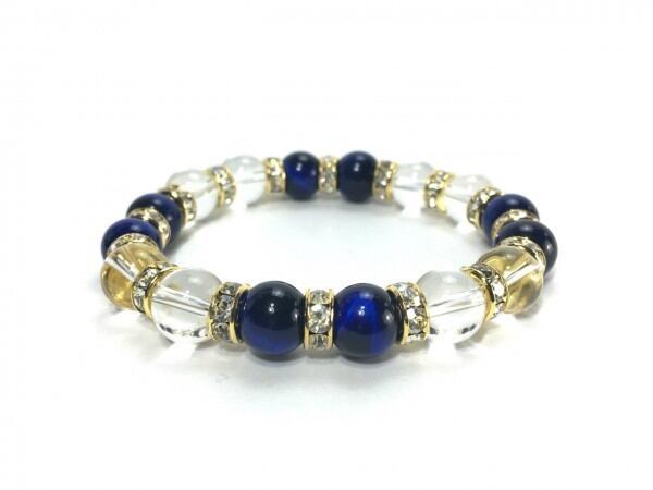 ブルータイガーアイ&水晶 パワーストーン ブレスレット 天然石 10mm (ゴールド)メンズ・レディース 男性・女性 数珠ブレス 開運 ☆