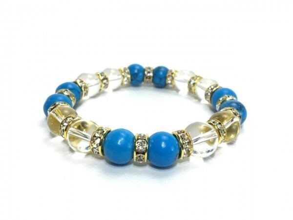 ターコイズ&水晶 パワーストーン ブレスレット 10mm (ゴールド)メンズ・レディース 男性・女性 数珠ブレス 開運 ☆