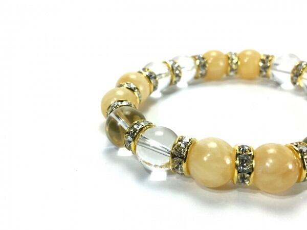 アラゴナイト&水晶 パワーストーン ブレスレット 天然石 10mm (ゴールド)メンズ・レディース 男性・女性 数珠ブレス 開運 ☆