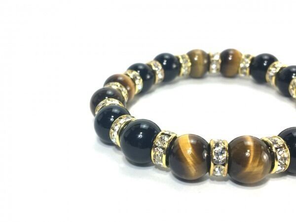 タイガーアイ&オニキス パワーストーン ブレスレット 天然石10mm (ゴールド)メンズ・レディース 男性・女性 数珠ブレス 開運 ☆