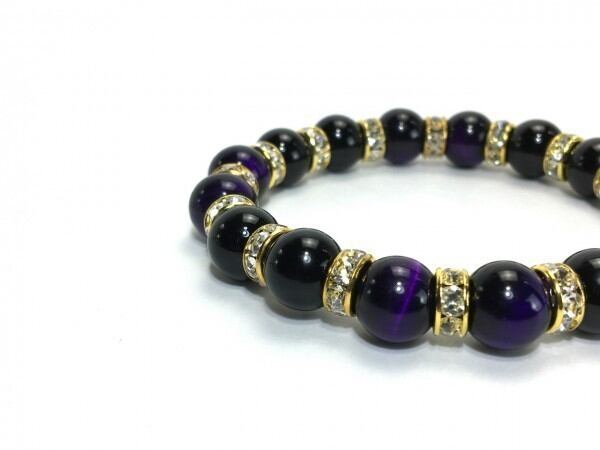 パープルタイガーアイ&オニキス パワーストーン ブレスレット 10mm (ゴールド)メンズ・レディース 男性・女性 数珠ブレス 開運 ☆