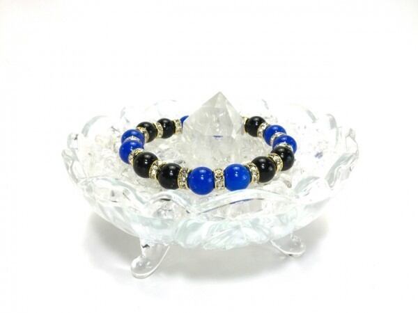 ブルーメノウ&オニキス パワーストーン ブレスレット 天然石 10mm (ゴールド)メンズ・レディース 男性・女性 数珠ブレス 開運 ☆