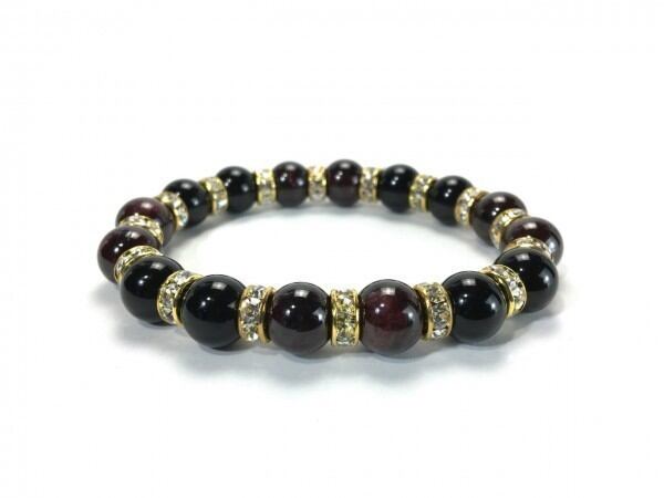 こちらは、ガーネットとオニキスを組み合わせたブレスレットです。間にはロンデルを挟み高級感あるデザインに仕上がっています。石大きさは腕にも馴染みやすいように10mm玉で内周約16cm(伸可能)です。数に限りがございますので気になる方はお早めにどうぞ。