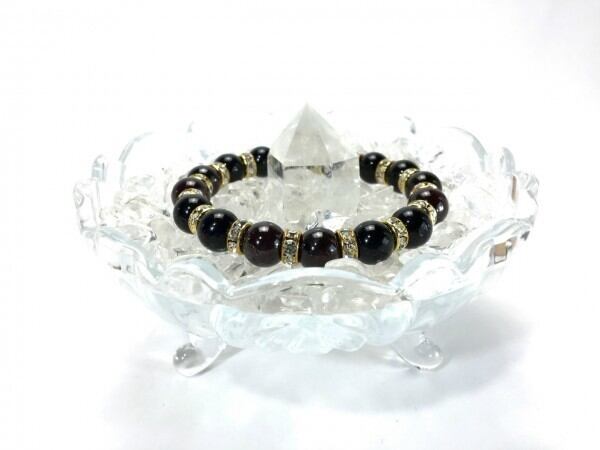 ガーネット&オニキス パワーストーン ブレスレット 天然石 10mm (ゴールド)メンズ・レディース 男性・女性 数珠ブレス 開運 ☆