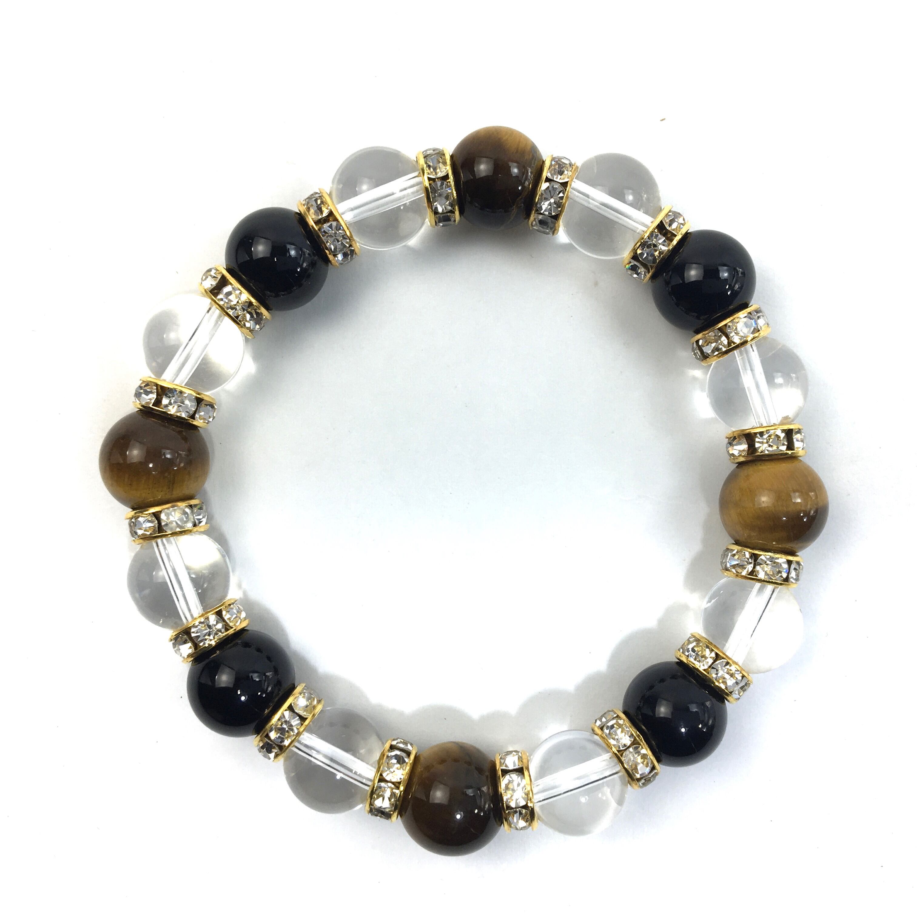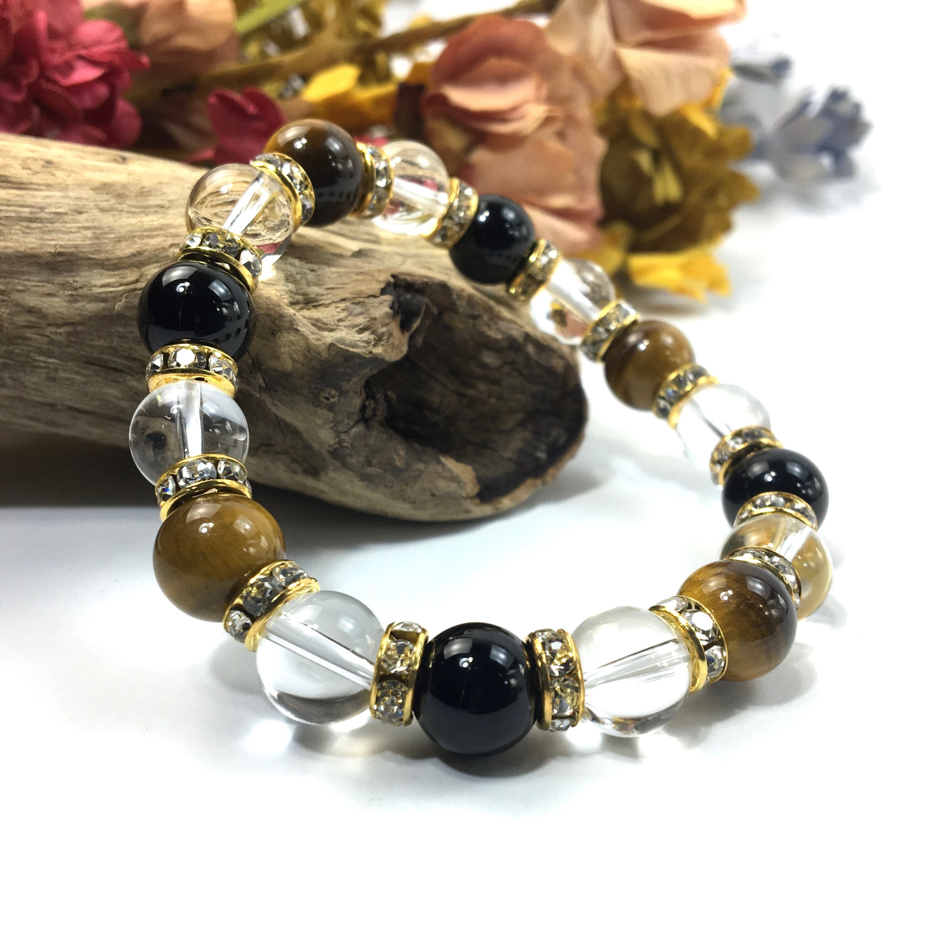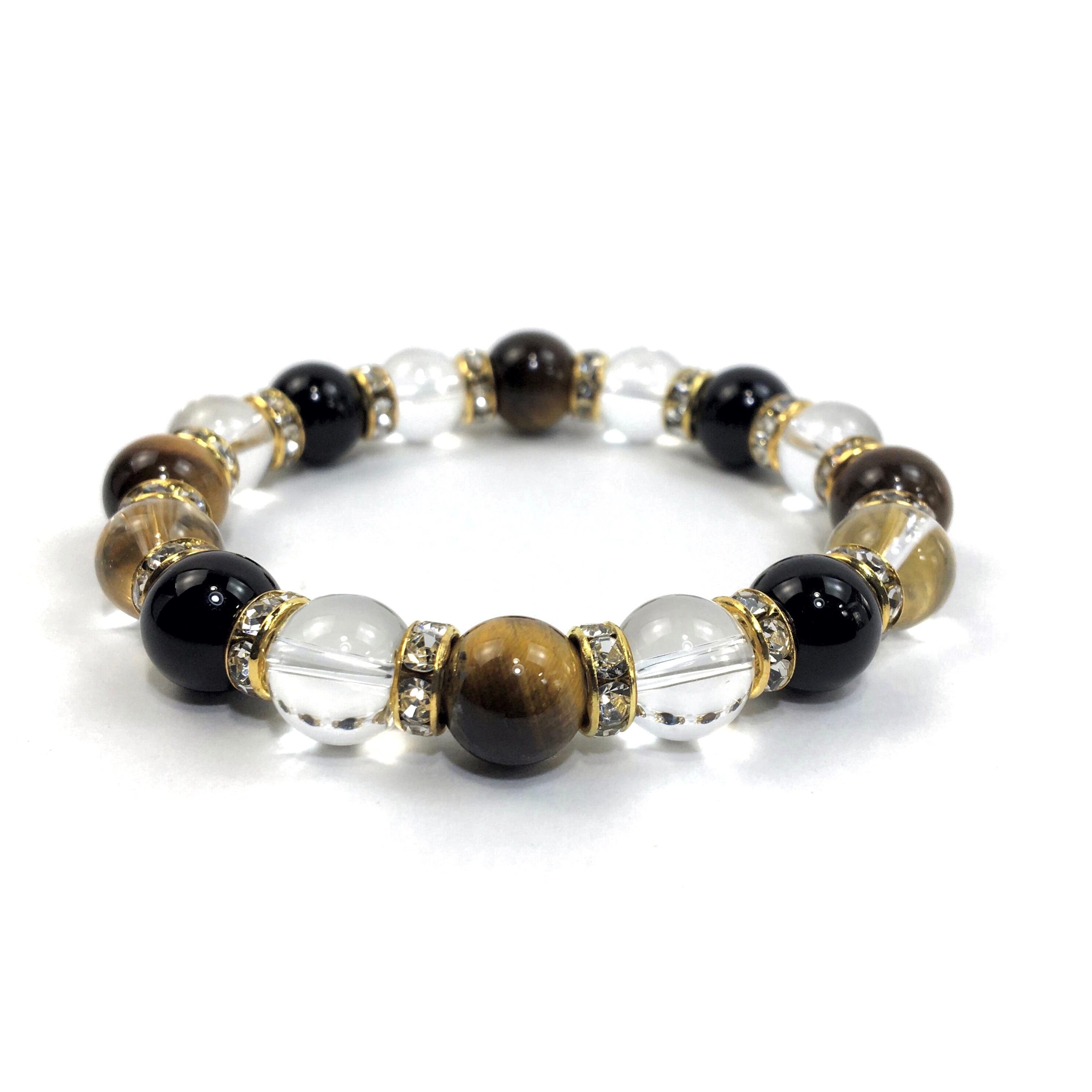 タイガーアイ×水晶×オニキス パワーストーン ブレスレット 10mm(ゴールド)メンズ・レディース 男性・女性 数珠ブレス 開運 ☆