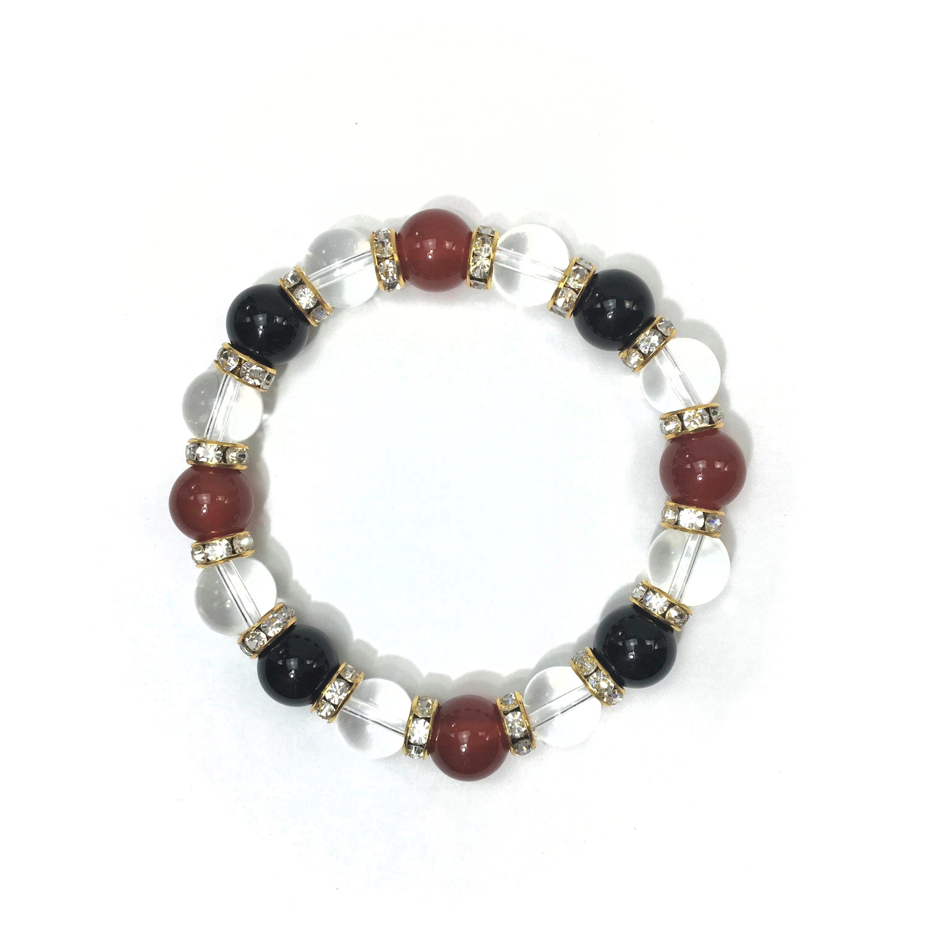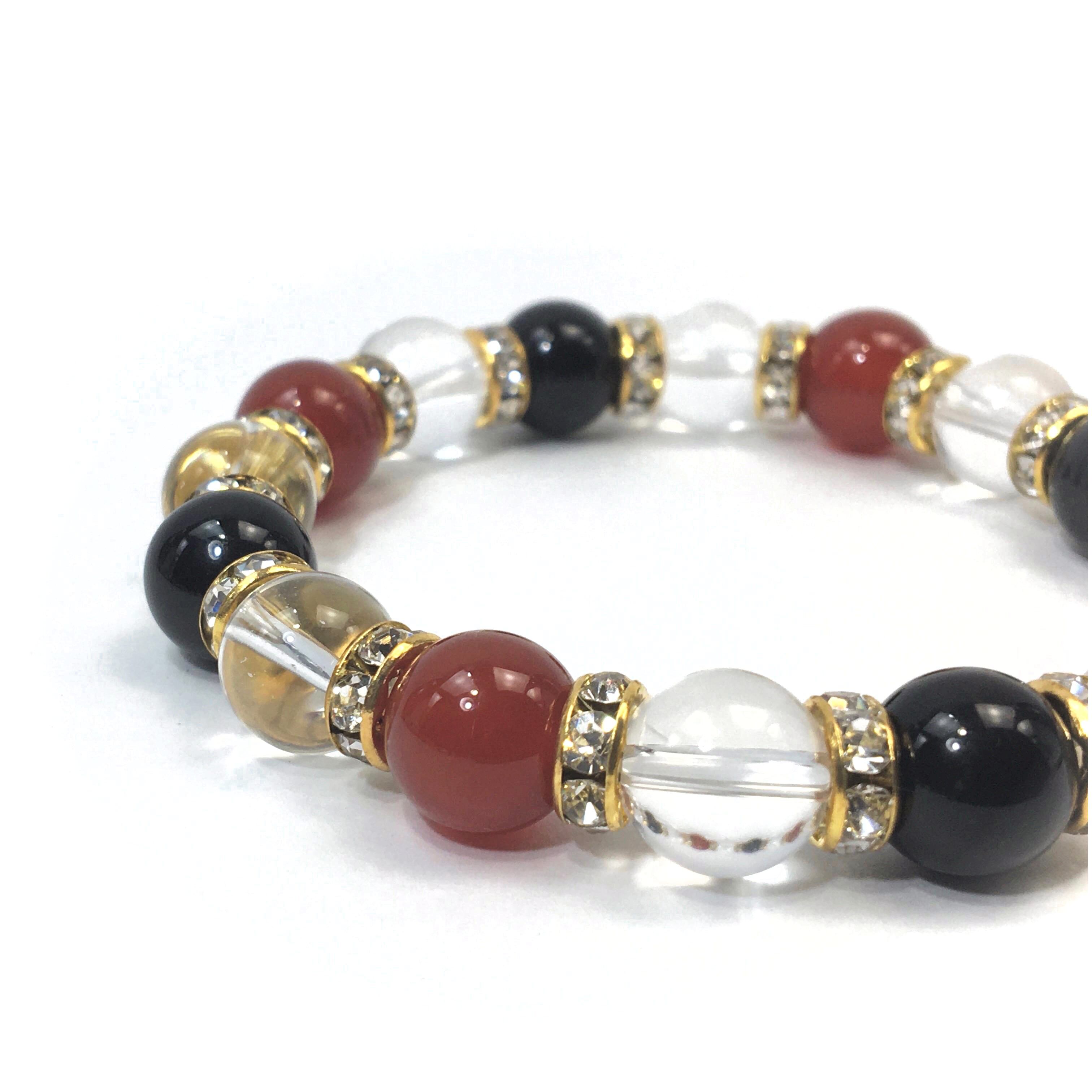 赤瑪瑙×水晶×オニキス パワーストーン ブレスレット 10mm(ゴールド)メンズ・レディース 男性・女性 数珠ブレス 開運 ☆