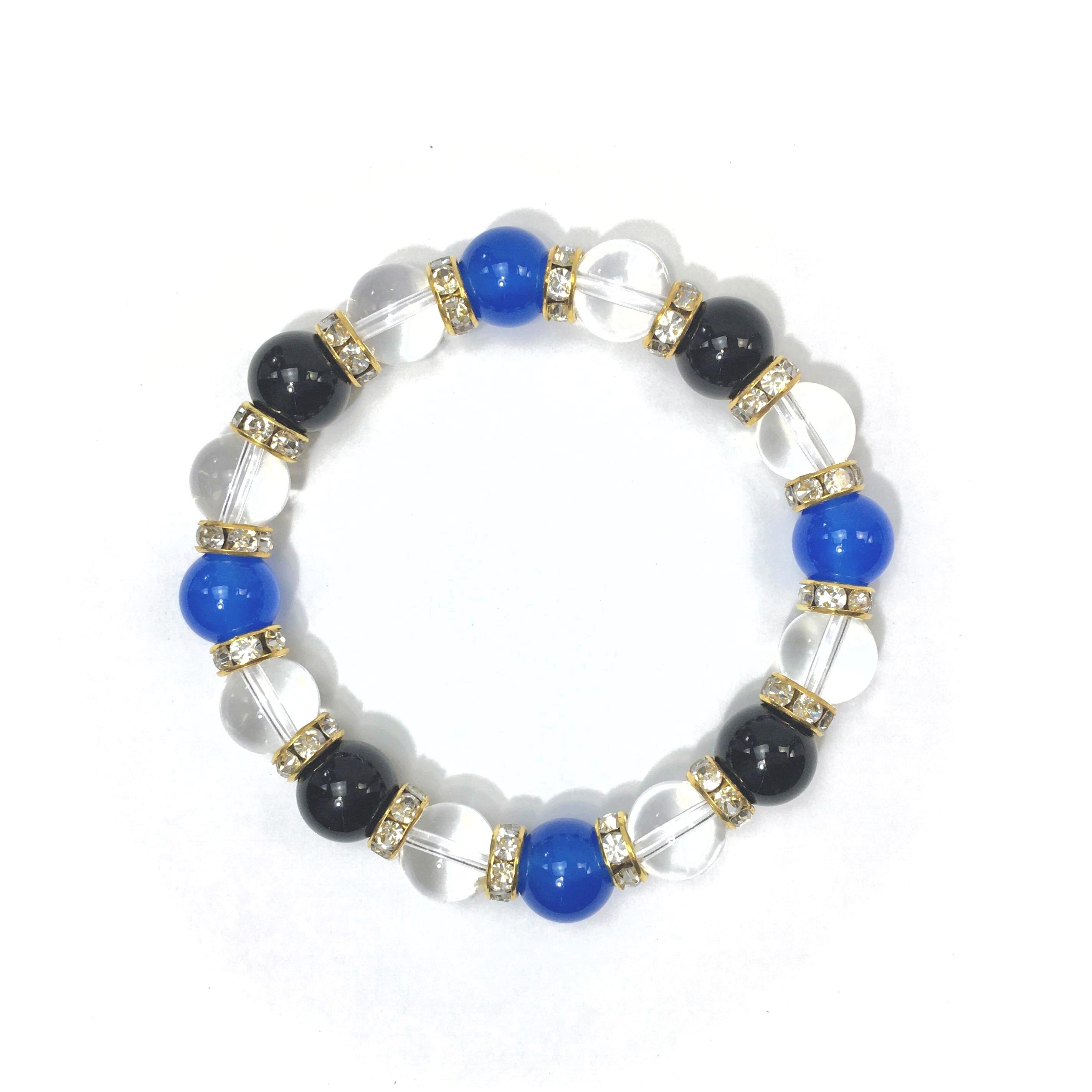 ブルーメノウ×水晶×オニキス パワーストーン ブレスレット 10mm(ゴールド)メンズ・レディース 男性・女性 数珠ブレス 開運 ☆