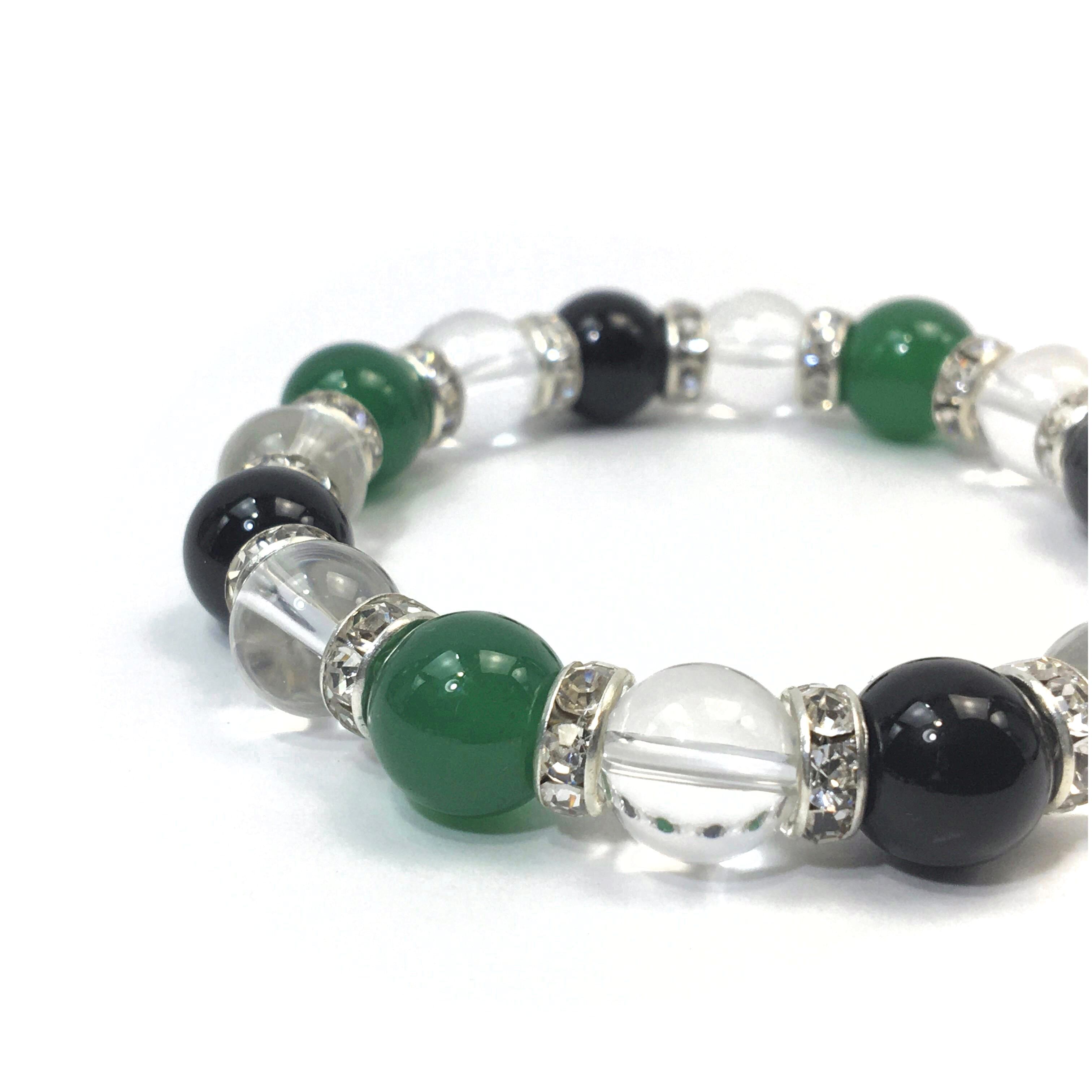 緑瑪瑙×水晶×オニキス パワーストーン ブレスレット 10mm(シルバー)メンズ・レディース 男性・女性 数珠ブレス 開運 ☆