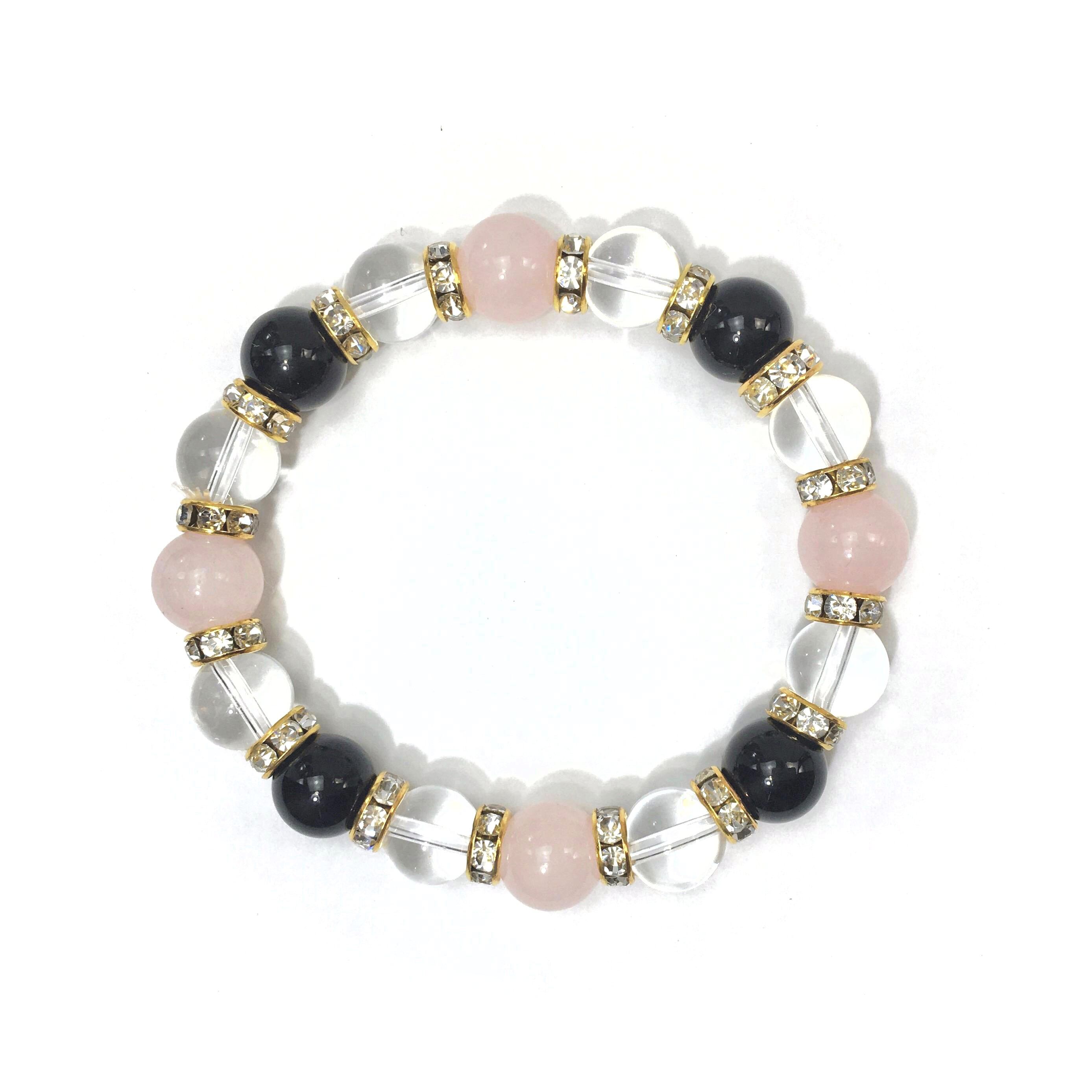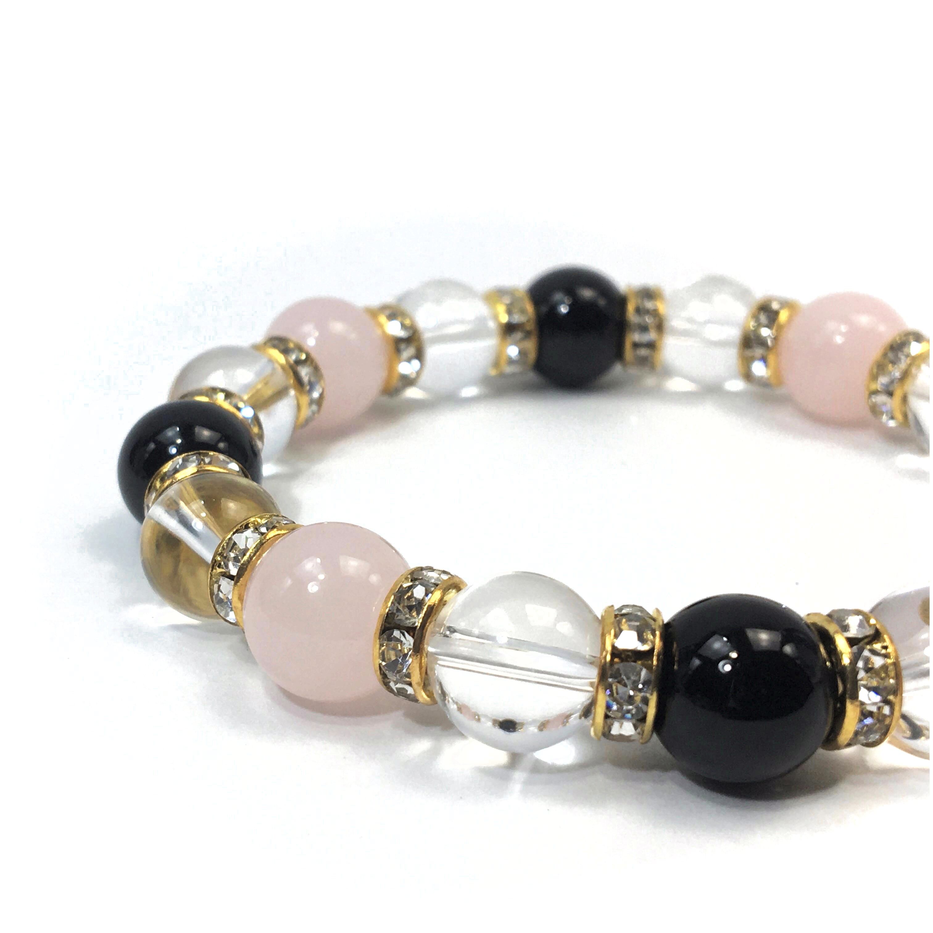 ローズクォーツ×水晶×オニキス パワーストーン ブレスレット 10mm(ゴールド)メンズ・レディース 男性・女性 数珠ブレス 開運 ☆