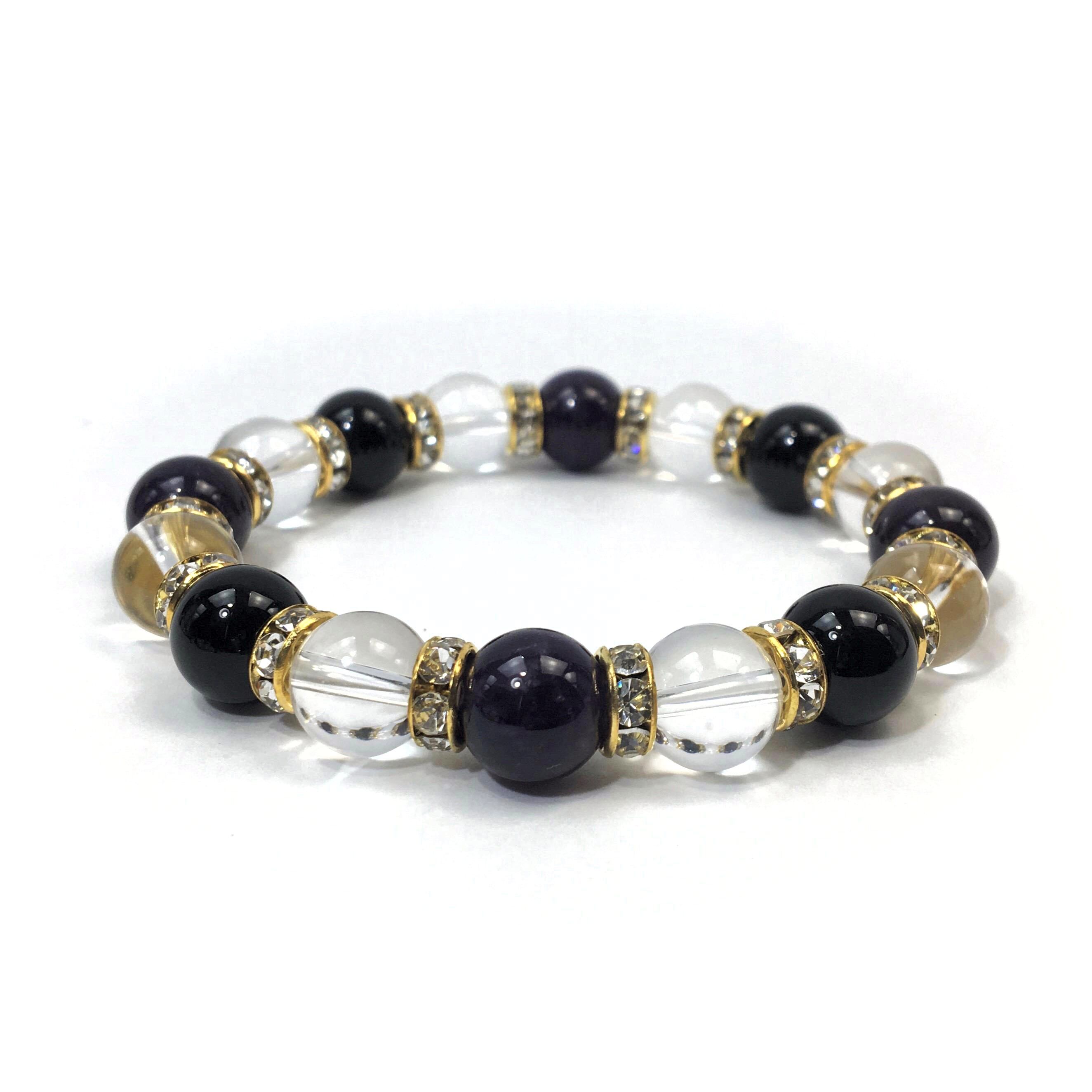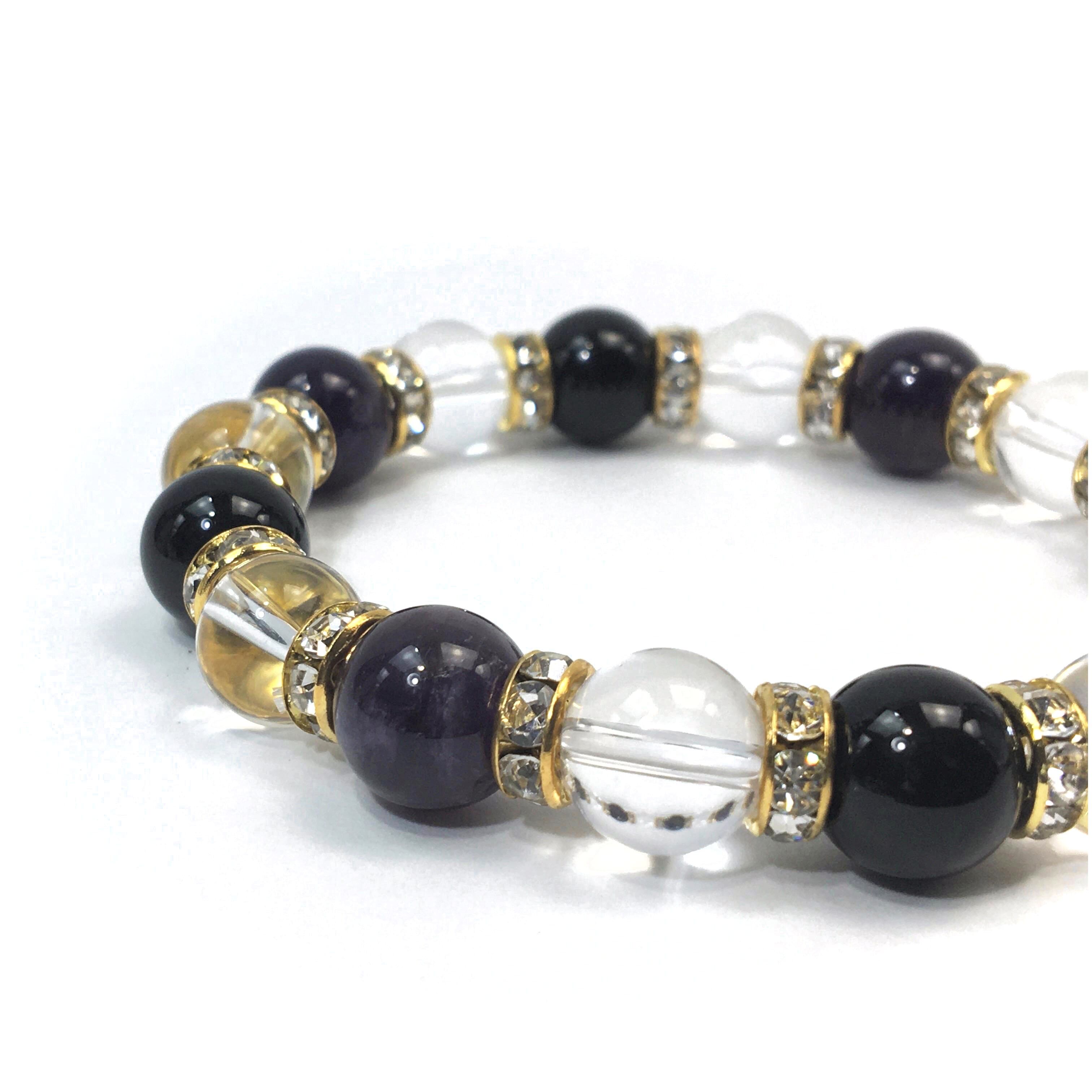 アメジスト×水晶×オニキス パワーストーン ブレスレット10mm(ゴールド)メンズ・レディース 男性・女性 数珠ブレス 開運 ☆