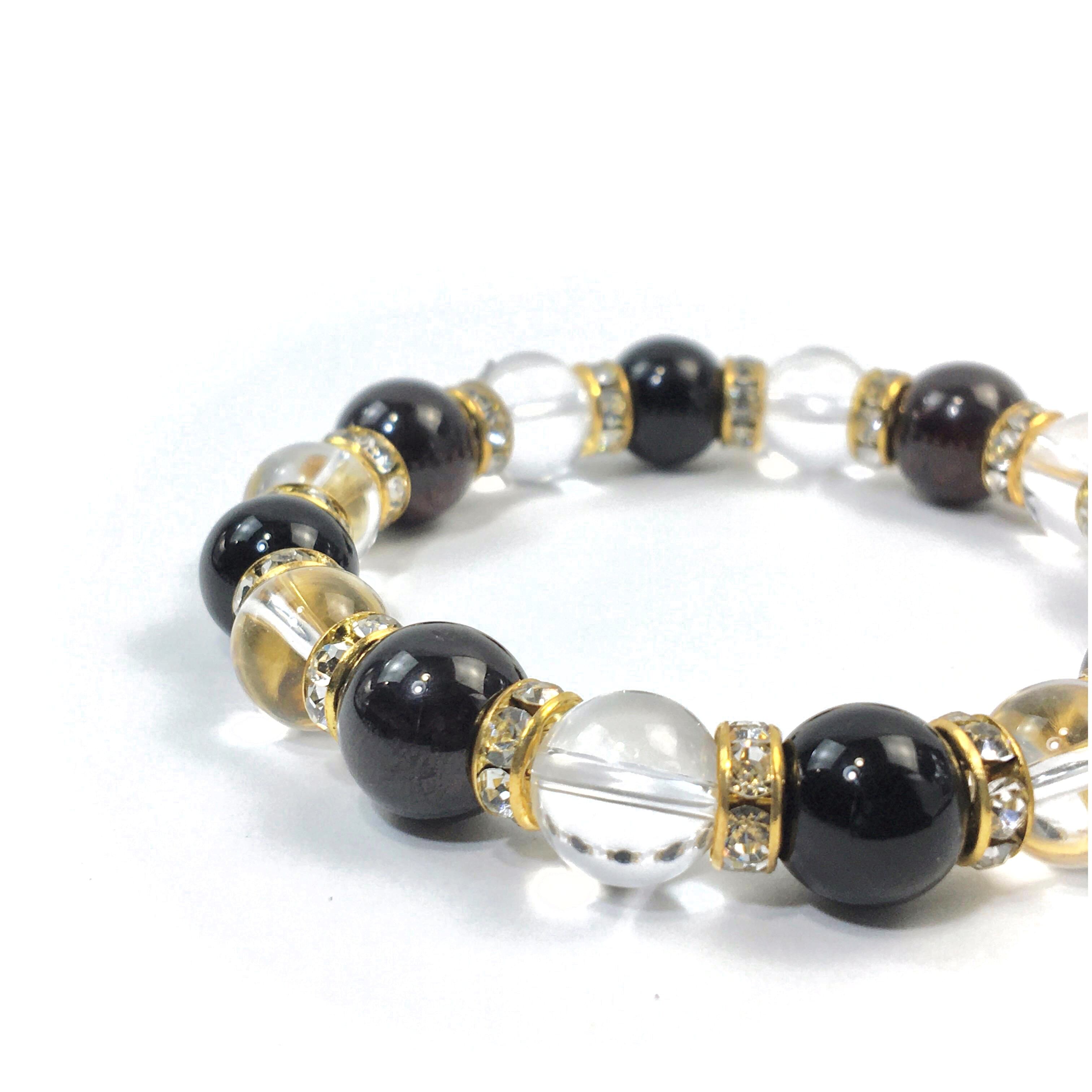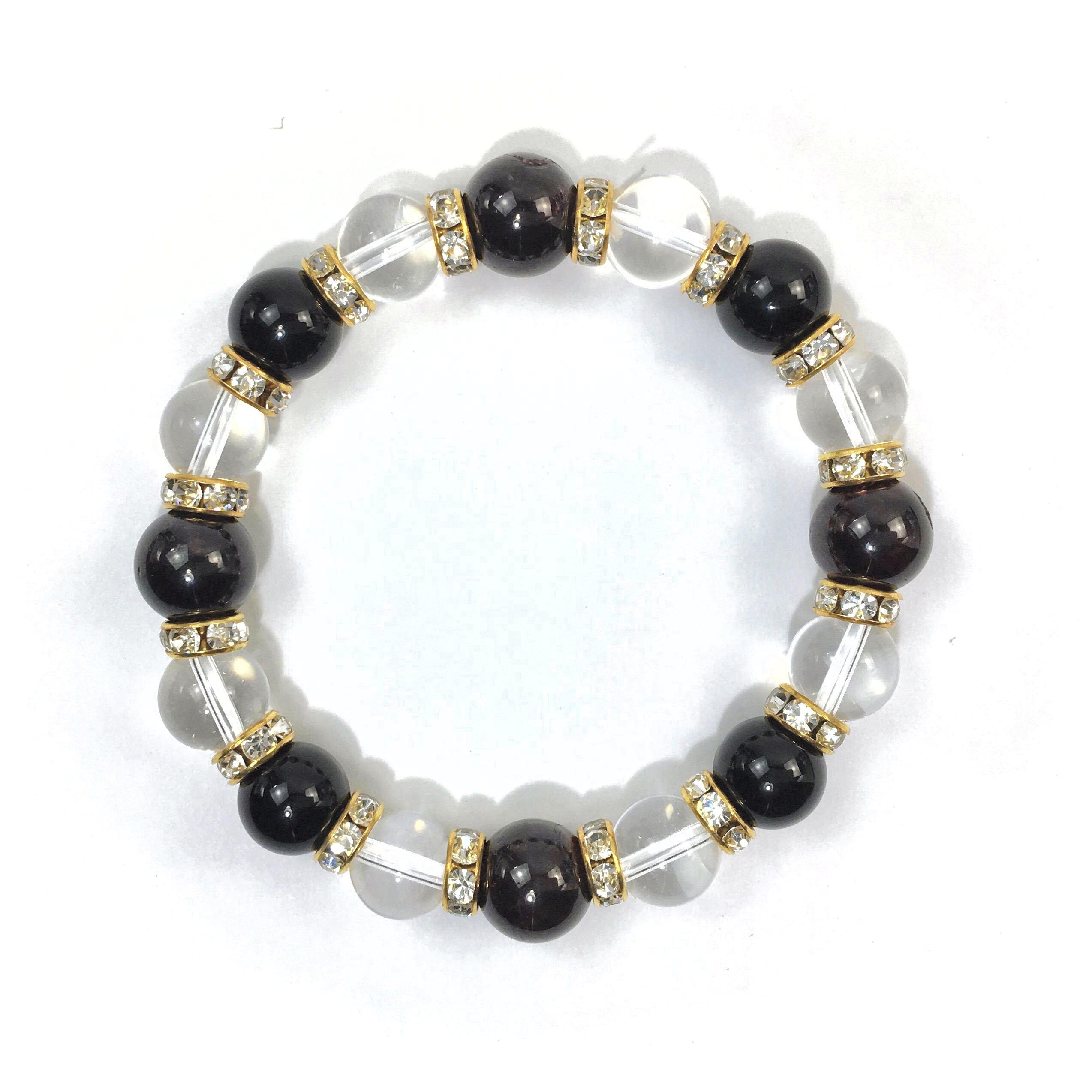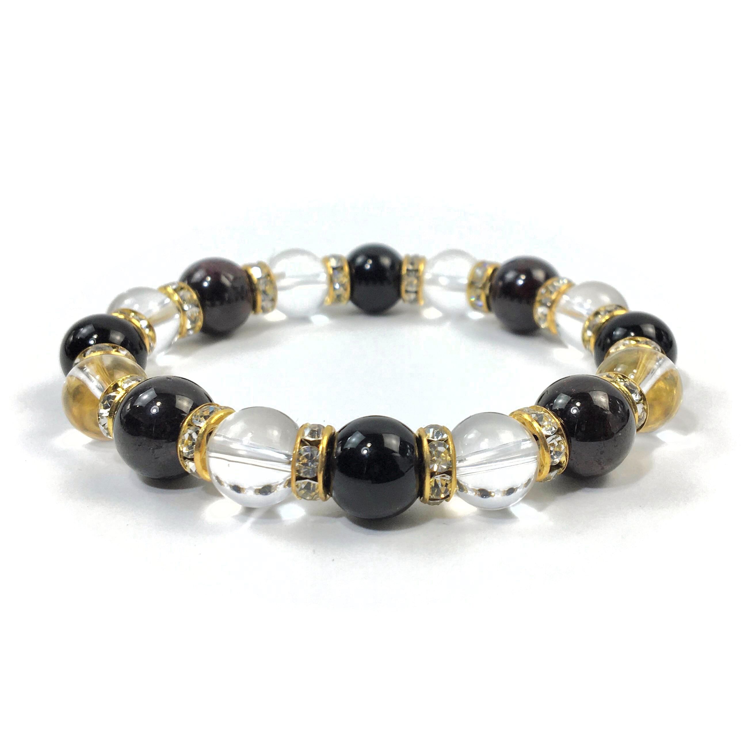 ガーネット×水晶×オニキス パワーストーン ブレスレット10mm(ゴールド)メンズ・レディース 男性・女性 数珠ブレス 開運 ☆